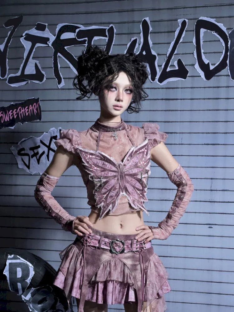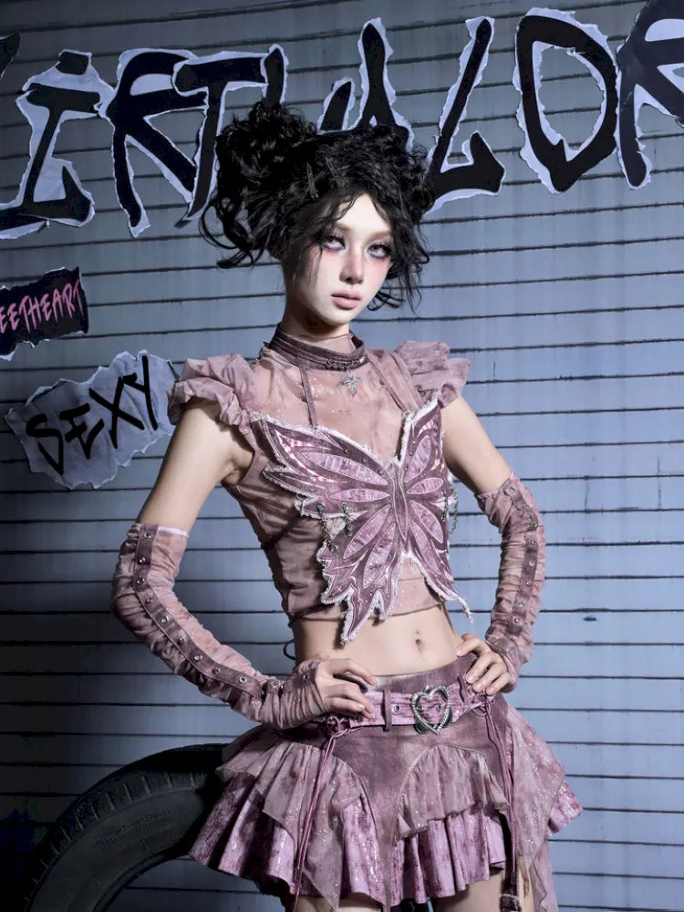 Sequined Denim A-Line Lace-Up Low-Waist Mini Skirt【s0000014026】