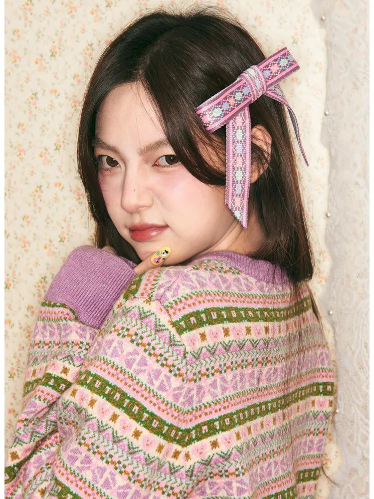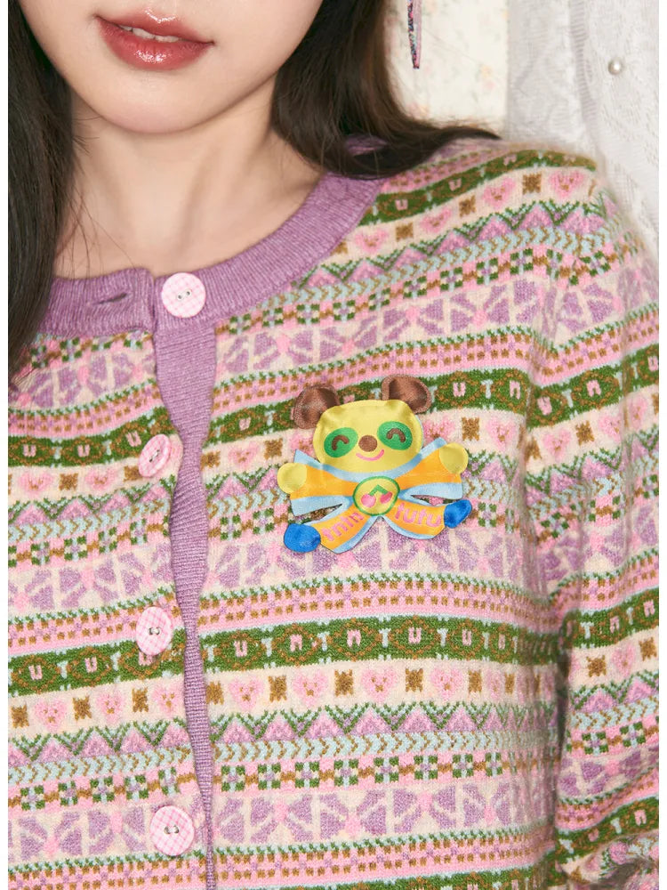 Geometric Knit Cardigan and Skirt Set【s0000014142】