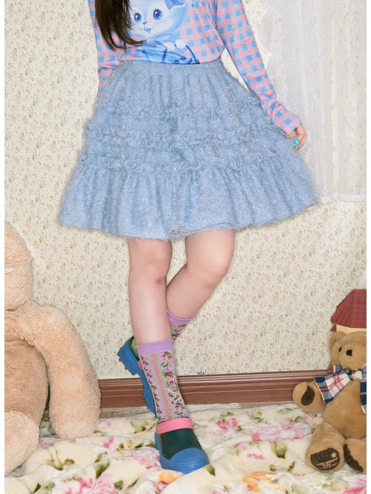 Velvet-Feel Lace-Trimmed Cake Skirt【s0000014144】