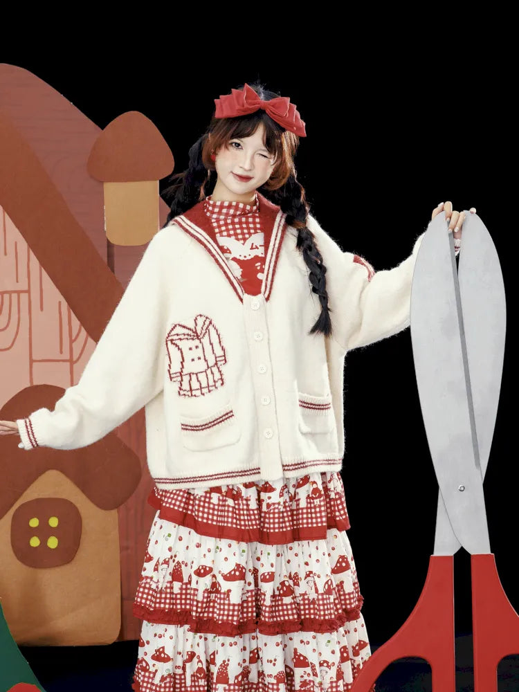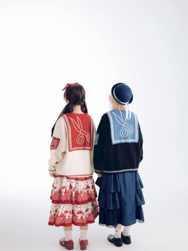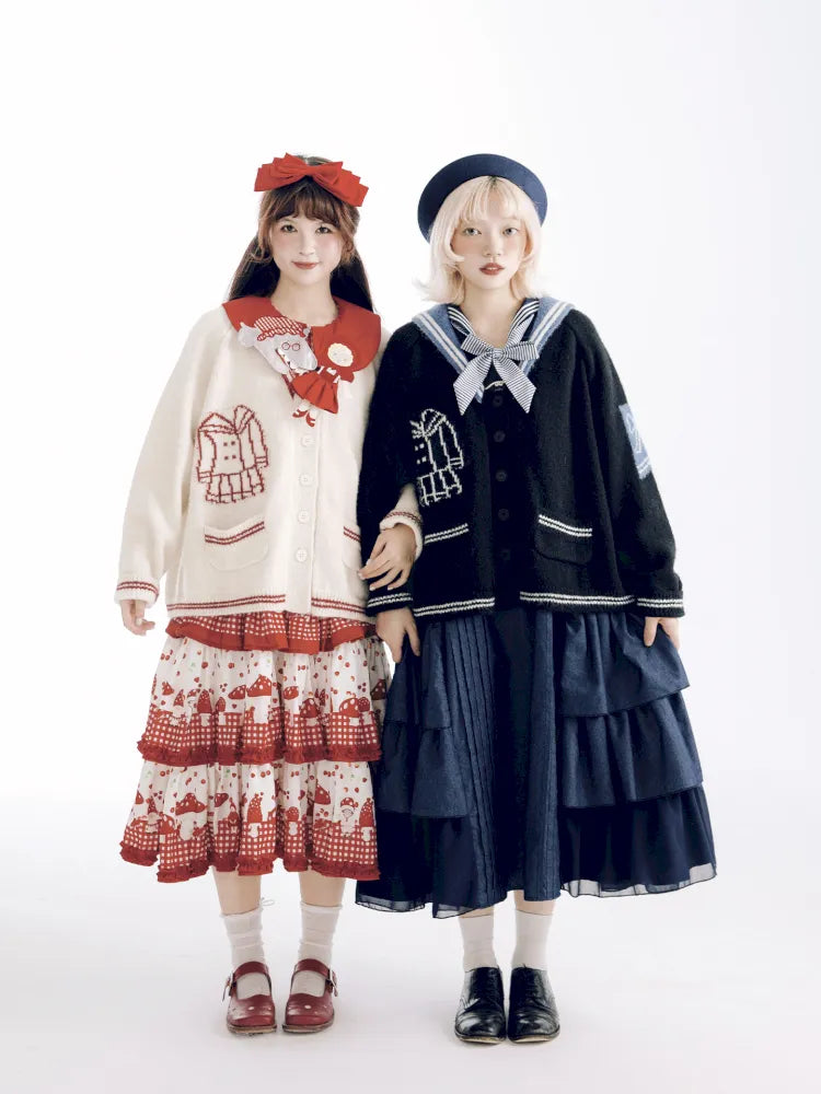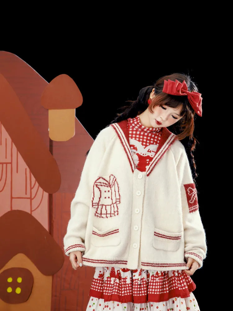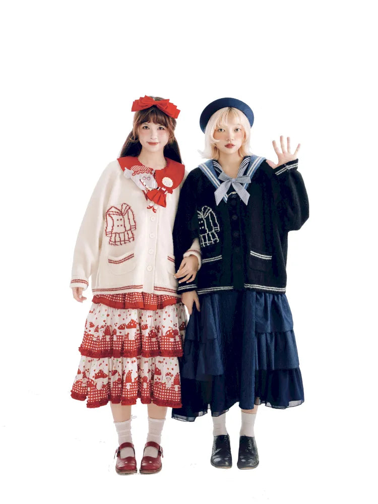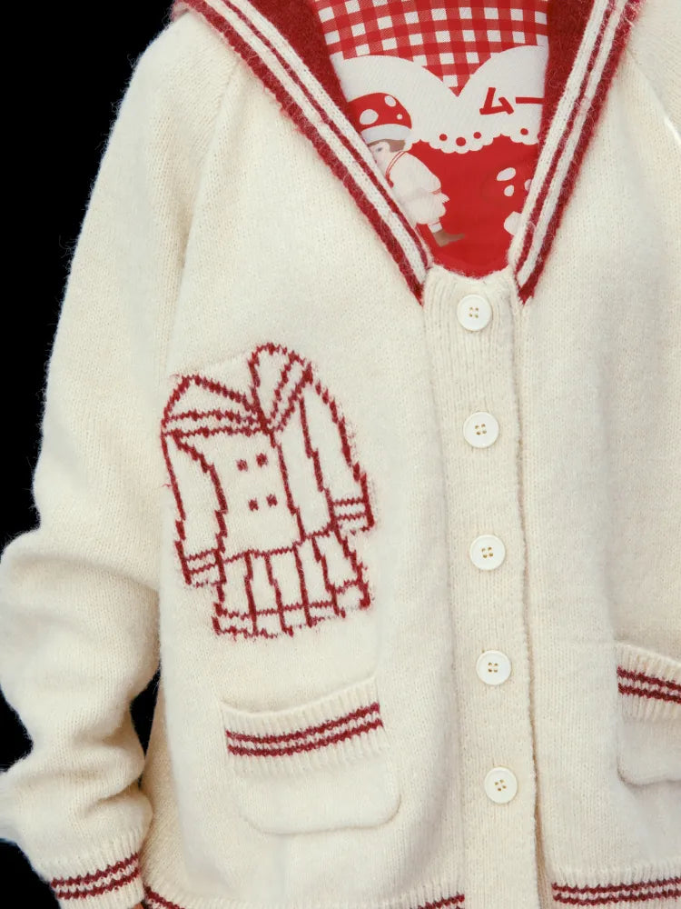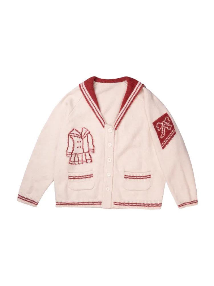 Contrasting Navy Collar Knit Cardigan【s0000014155】