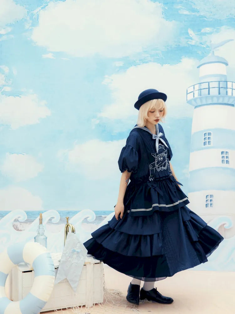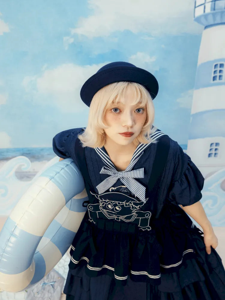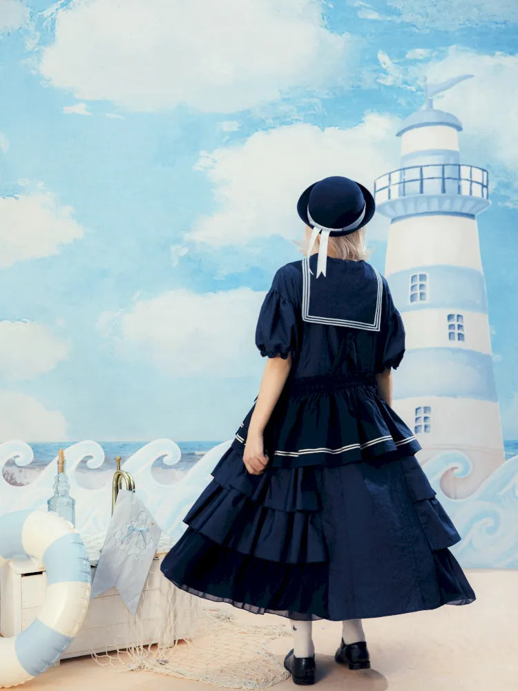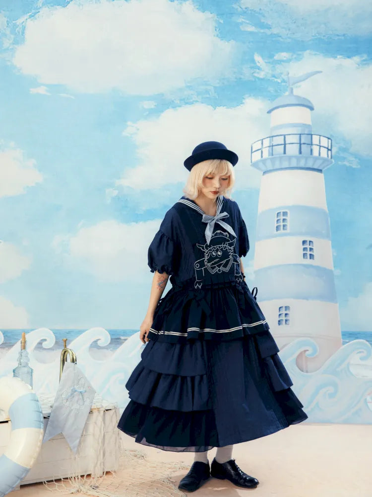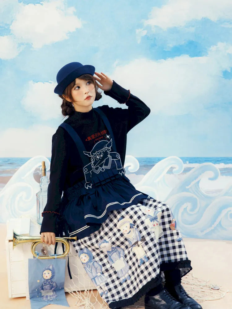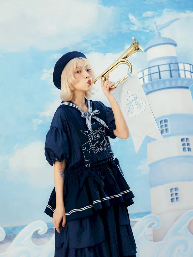 Navy Blue Layered Vest Apron【s0000014156】