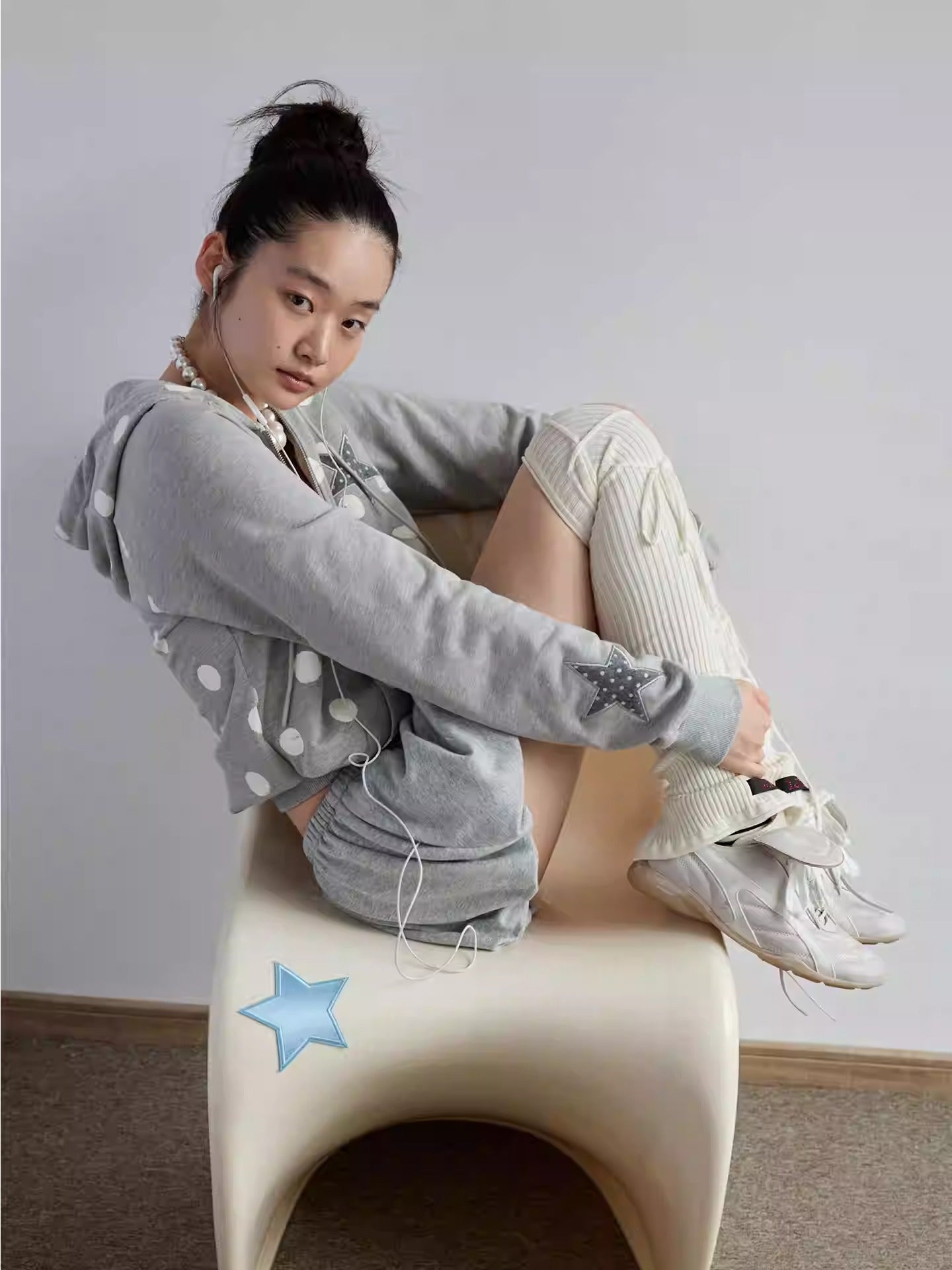 Polka Dot Patchwork Raglan Sleeve Hooded Sweatshirt【s0000014236】