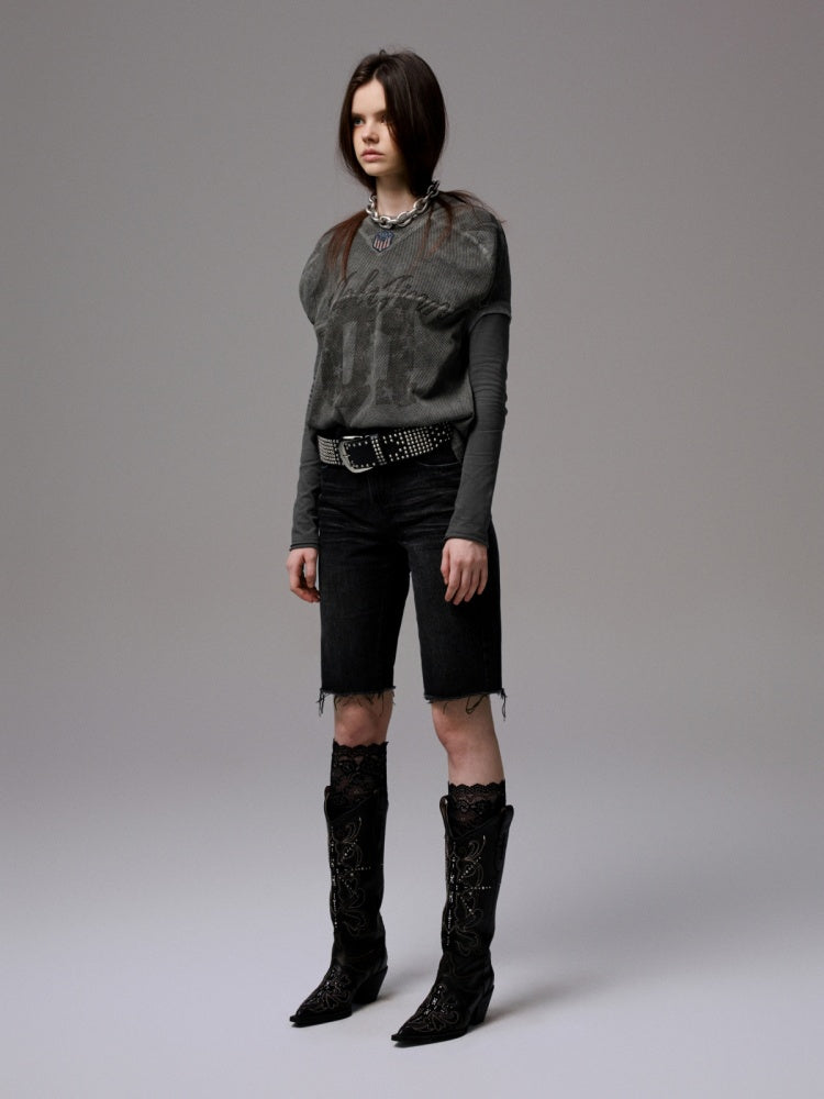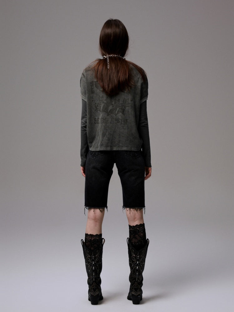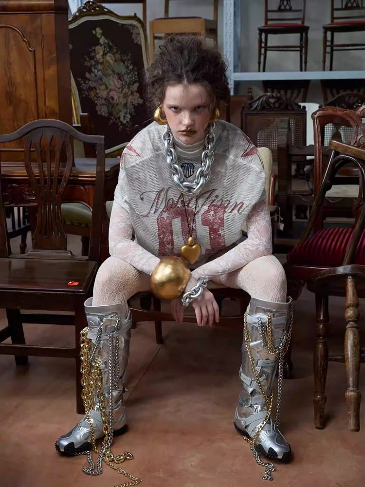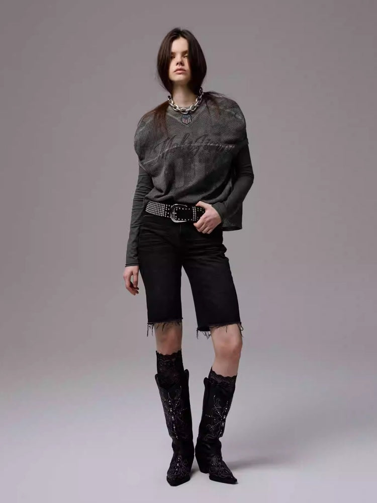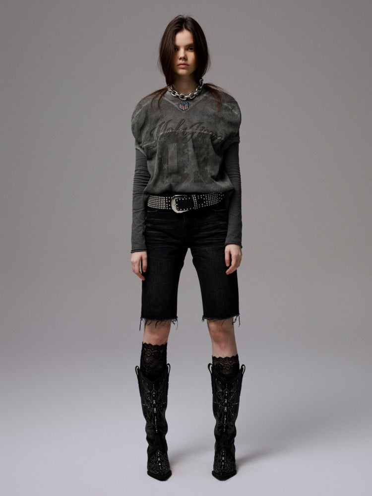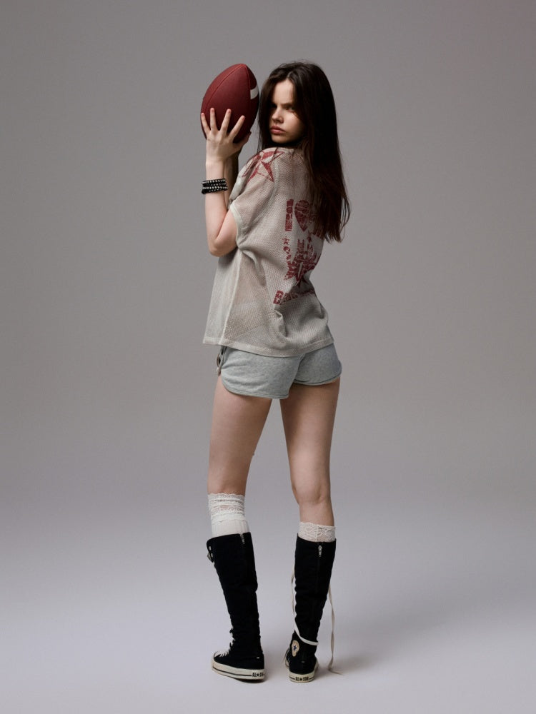 Vintage Printed Mesh Rugby Uniform Sports V-Neck Contrast Badge Tops【s0000014237】