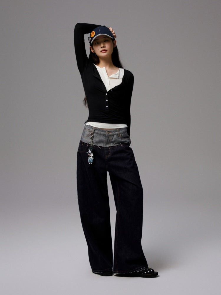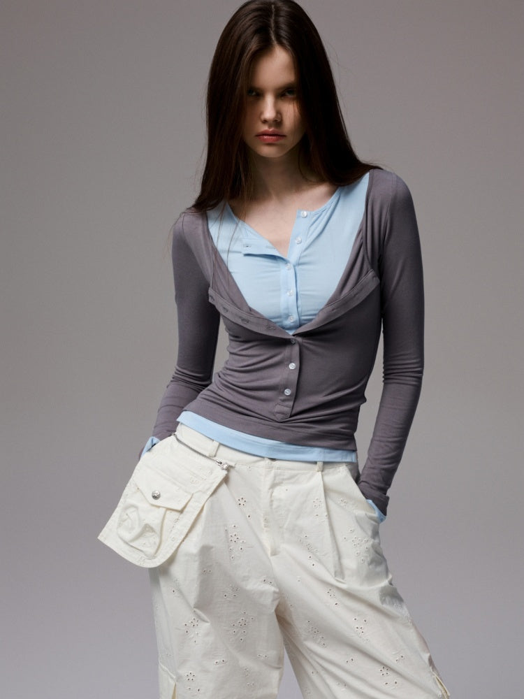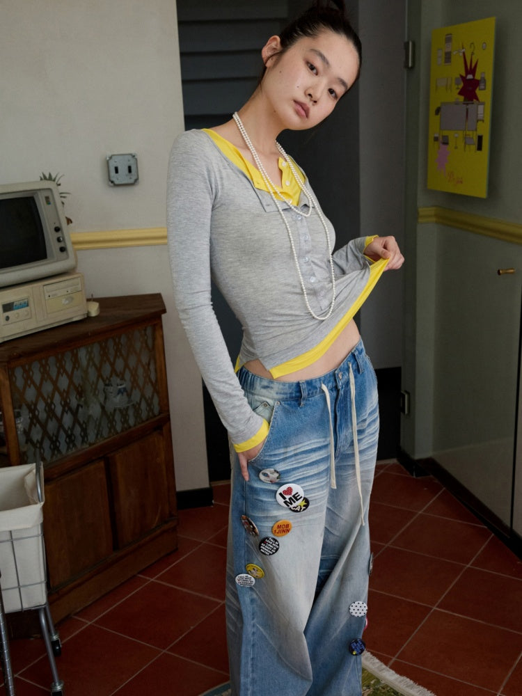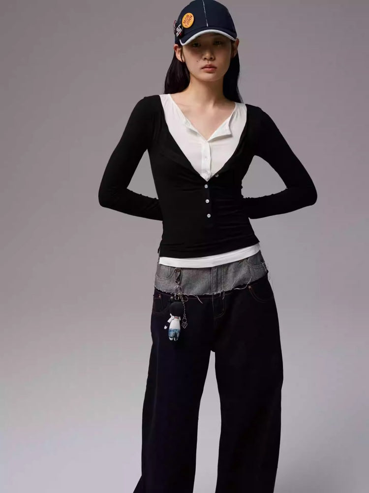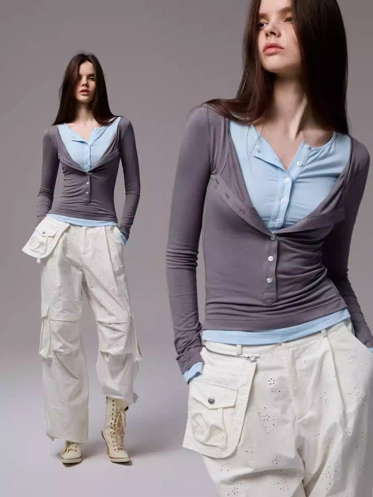 Henry Wears Two Contrasting Slightly Stretched Slimming Base Layers Long-Sleeved T-Shirts【s0000014248】