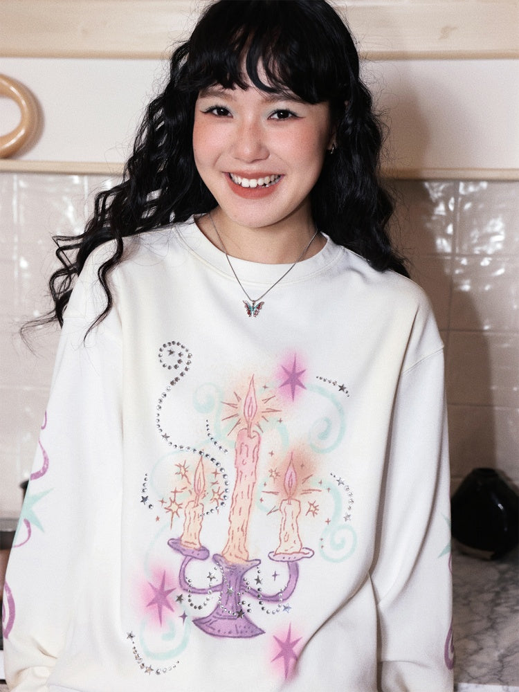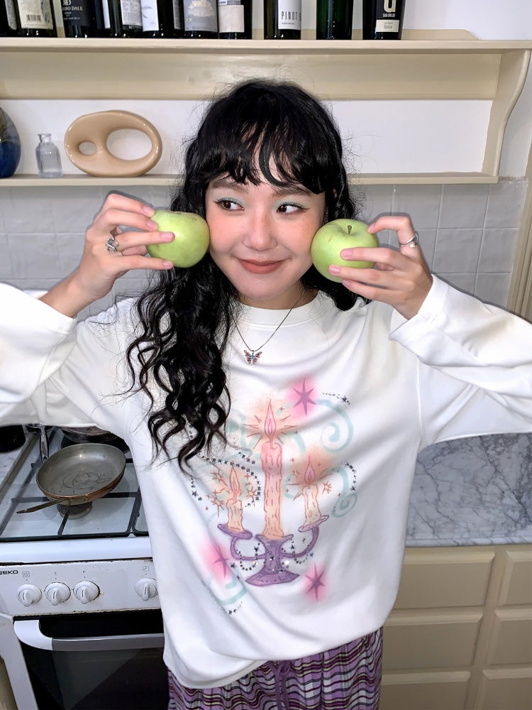 Candlestick Print Long-Sleeved Loose Slim T-Shirt Inner Top【s0000014717】