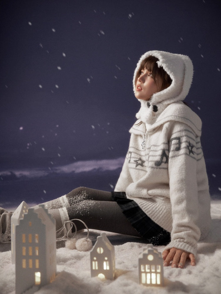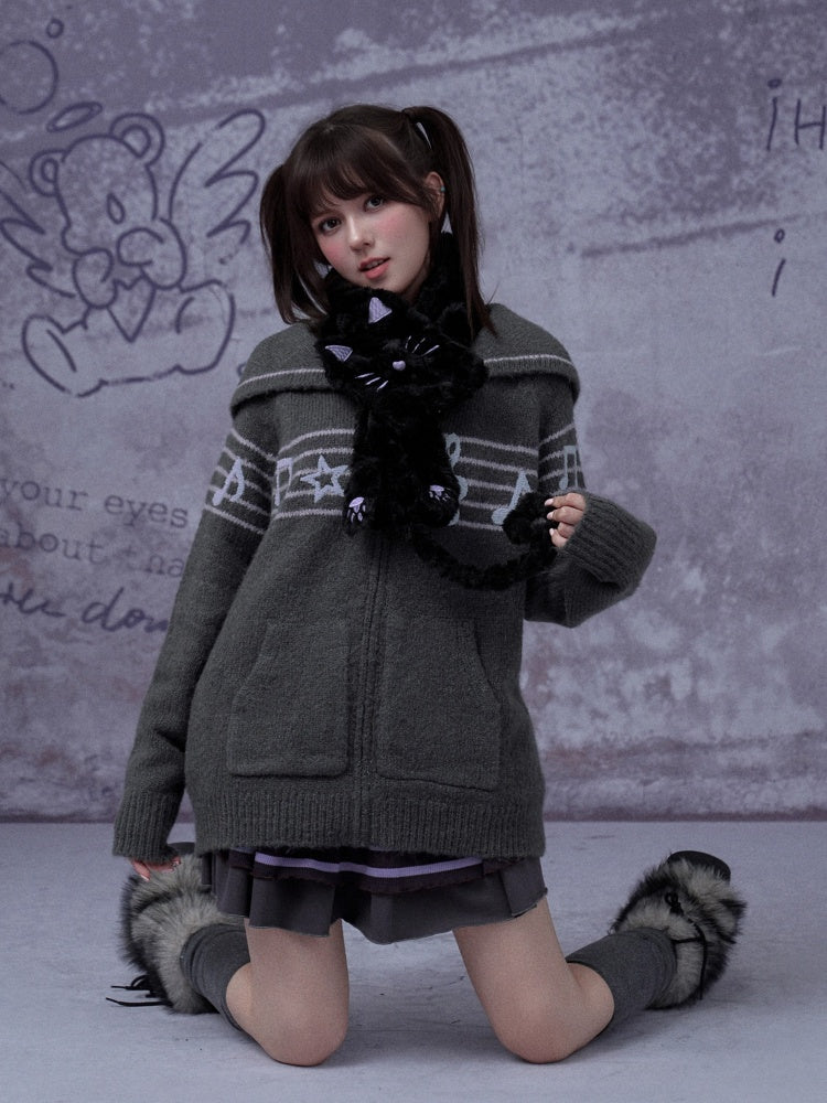 Sweet Cool Lapel Sheet Music Print Sweater Jacket Warm Knitwear【s0000014805】