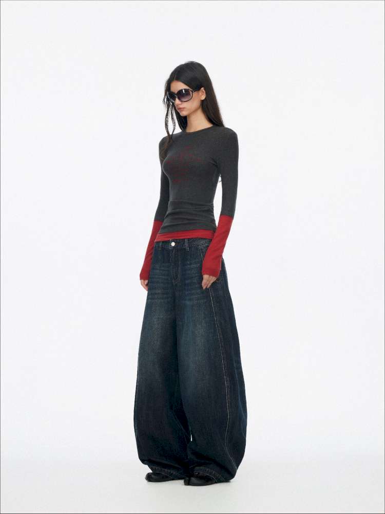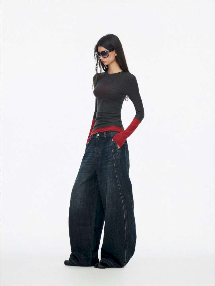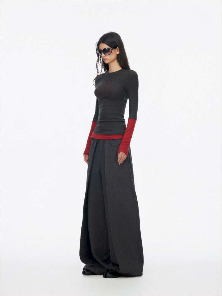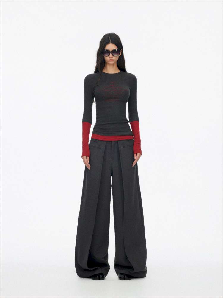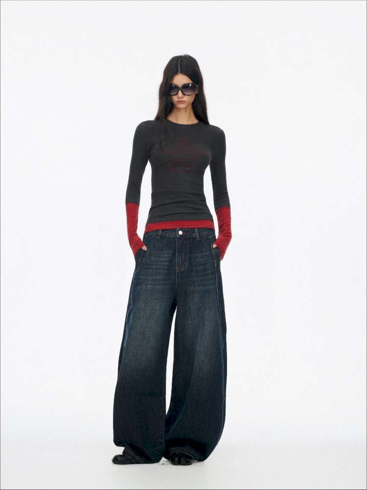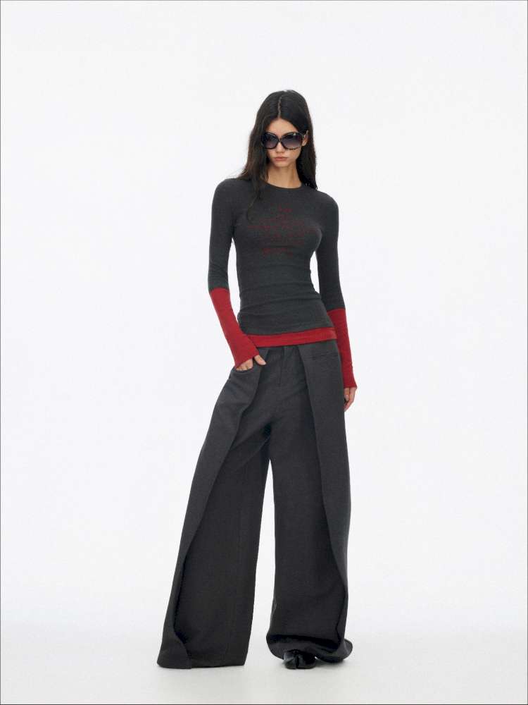 Fake Two-Piece Letter Print Slim Long-Sleeve T-Shirt【s0000014874】
