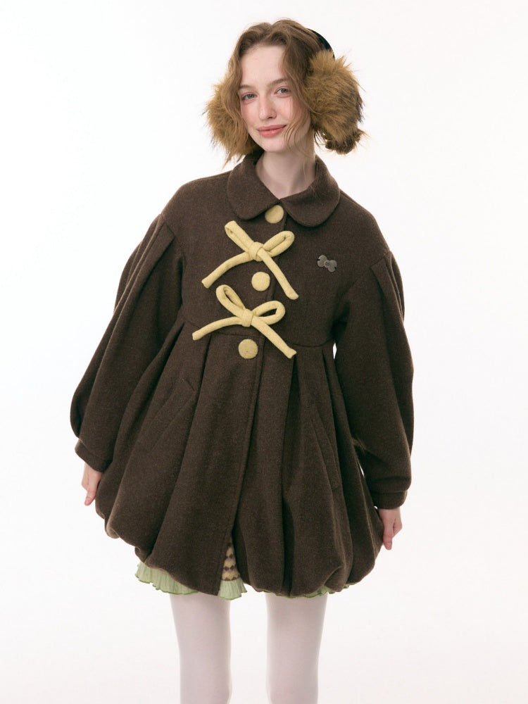Fluffy Doll Collar Bow Bud Hem Woolen Coat Jacket【s0000015293】