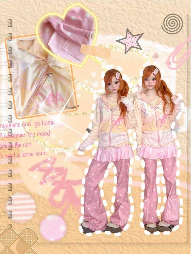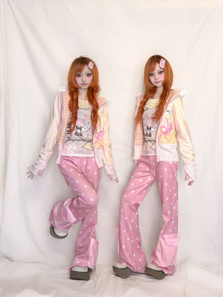Pink Polka Dot Flared Sweatpants【s0000015401】