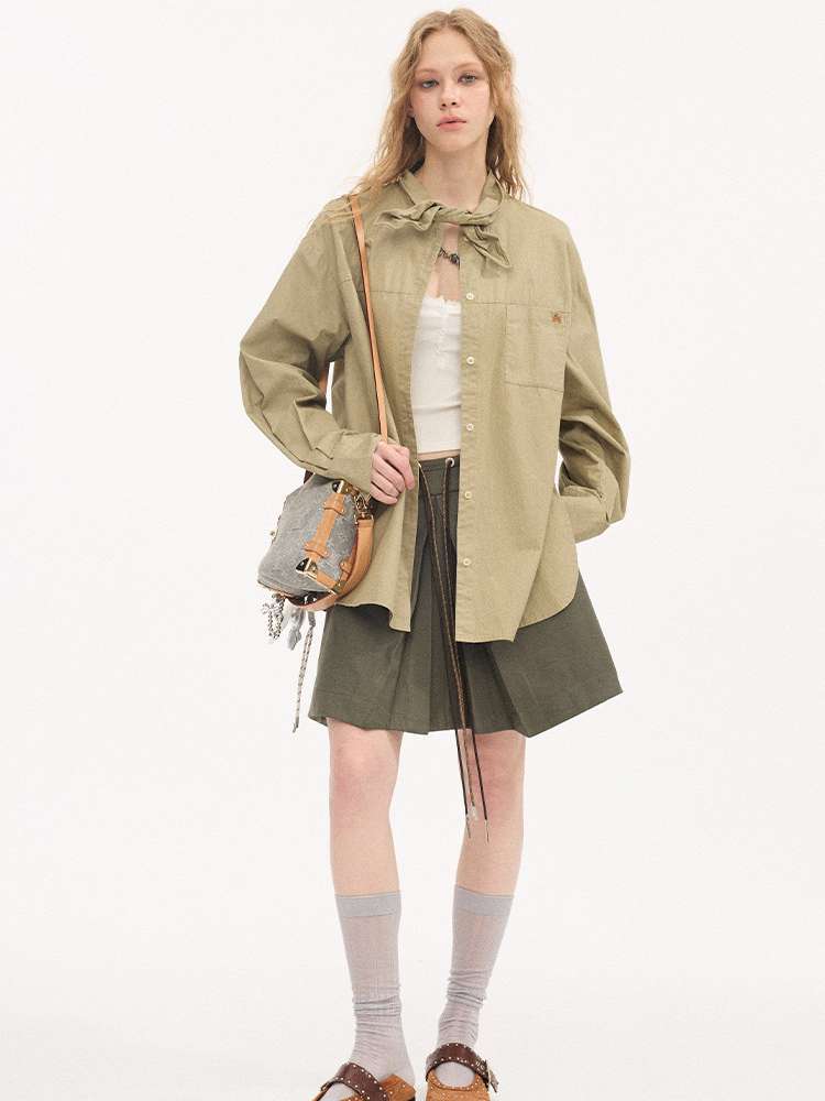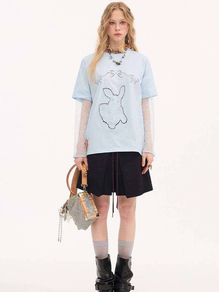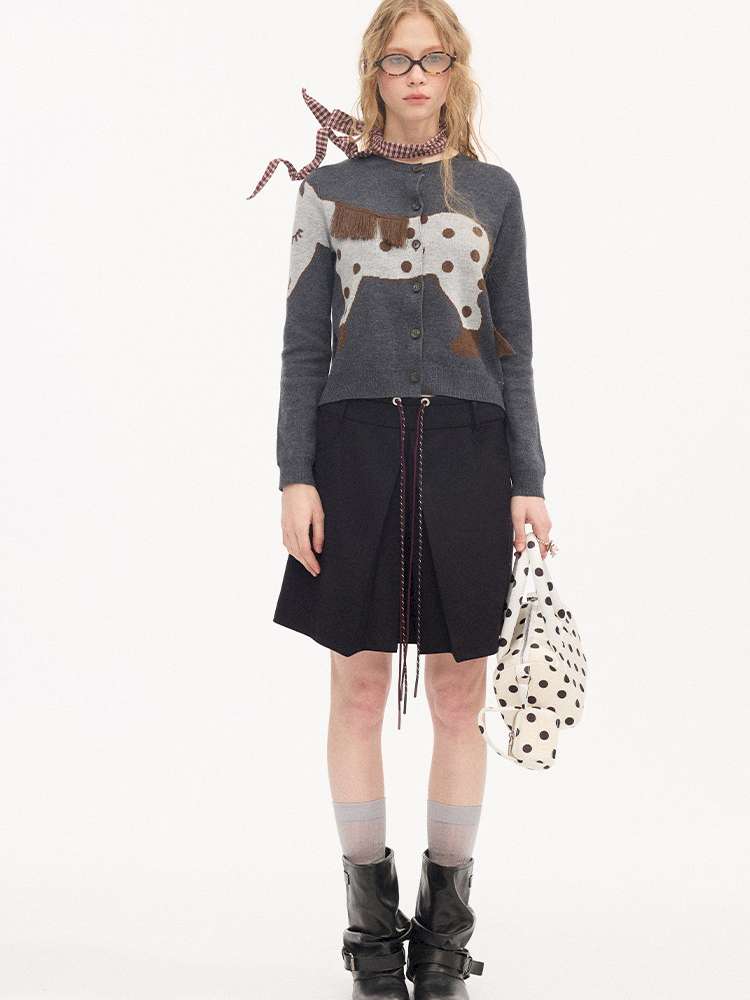 Contrast Strap Pleated A-line Skirt【s0000015414】