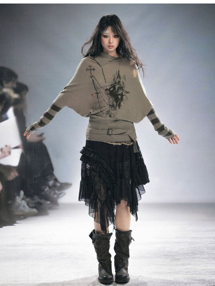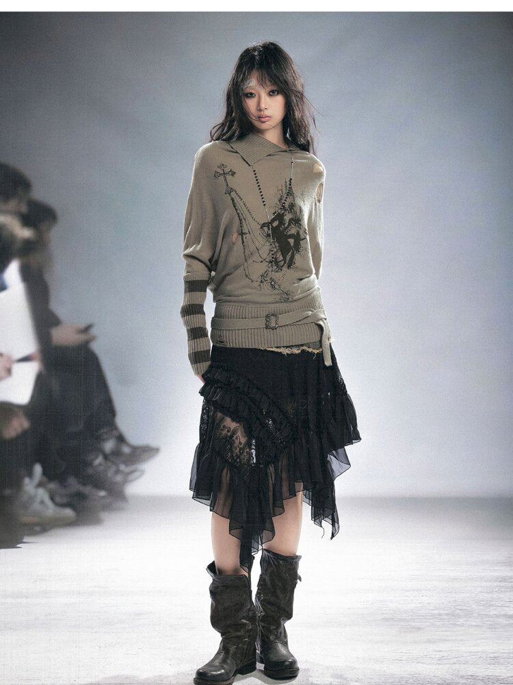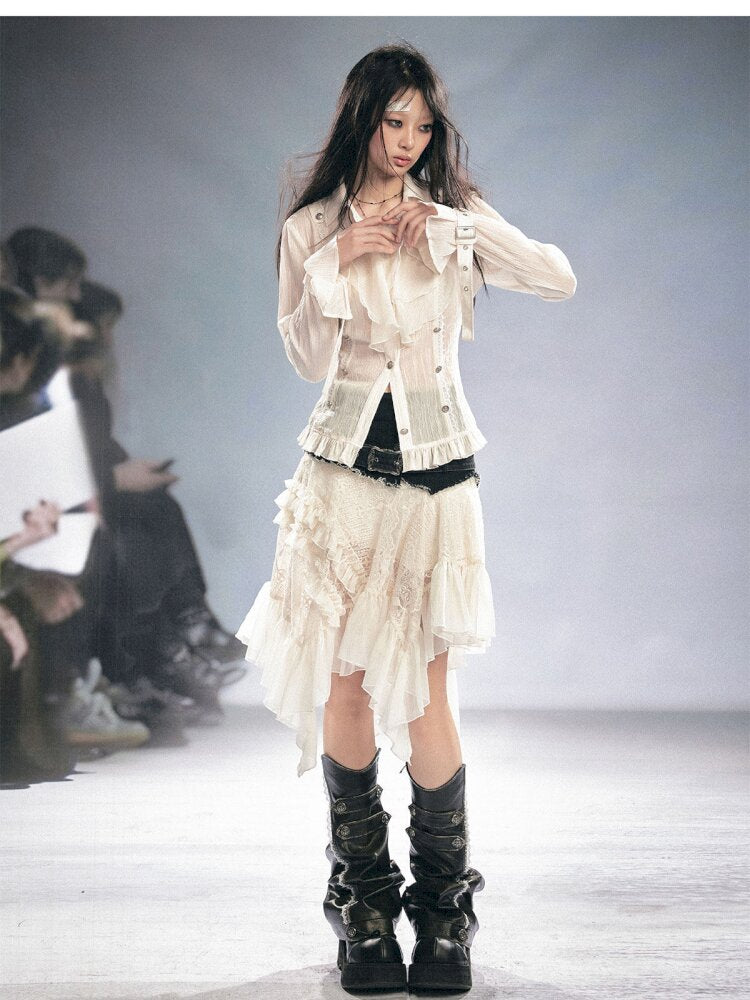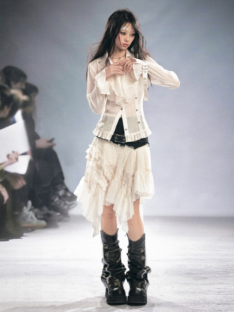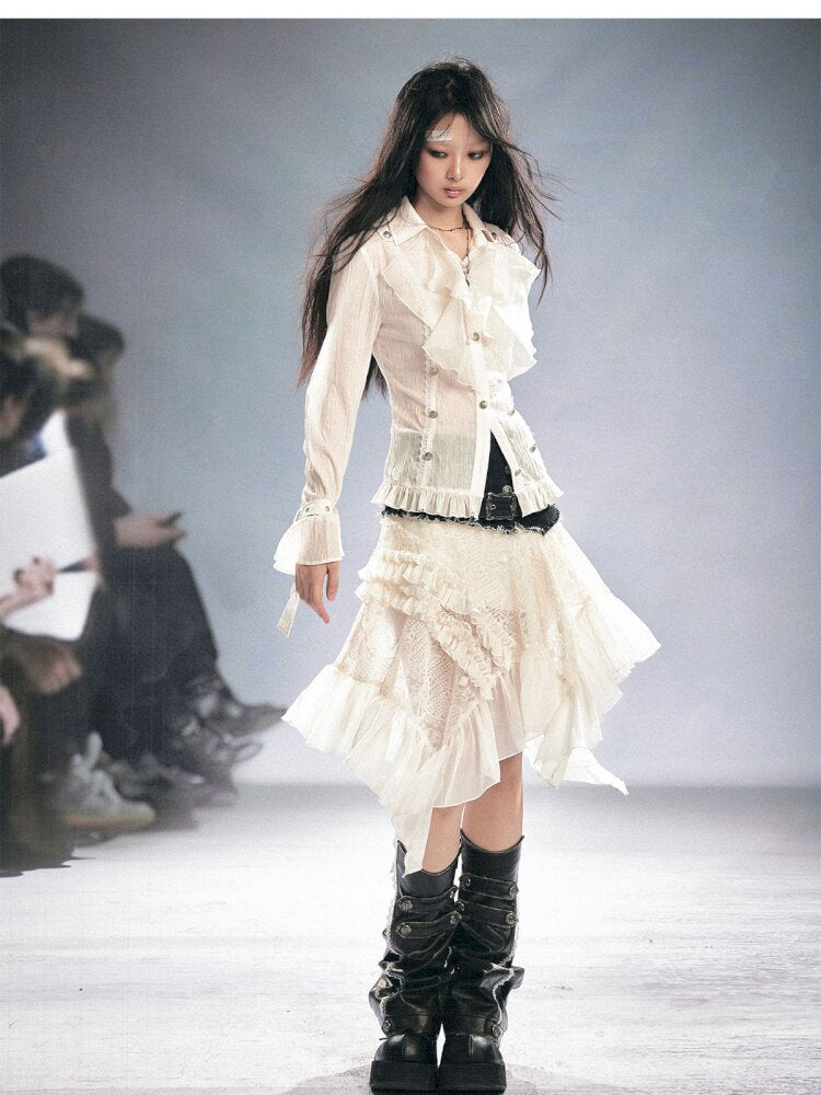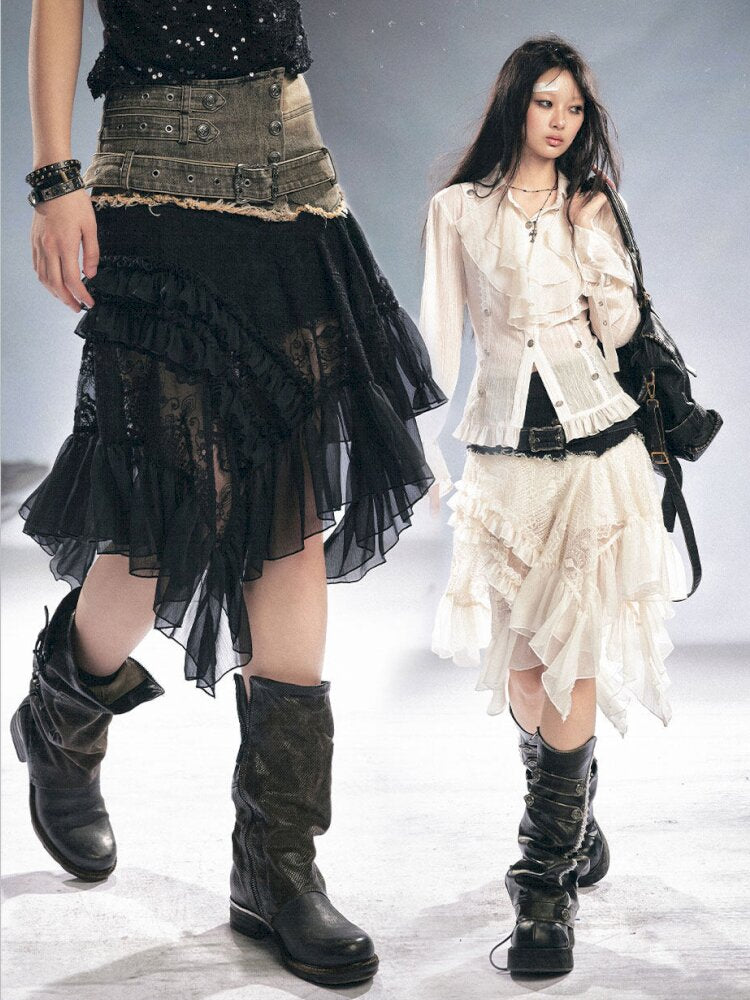 Lace Patchwork Irregular Mesh Skirt【s0000015449】