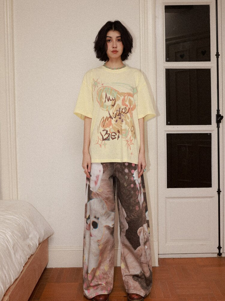 Doll Club Full Print Wide Leg Jeans【s0000015460】