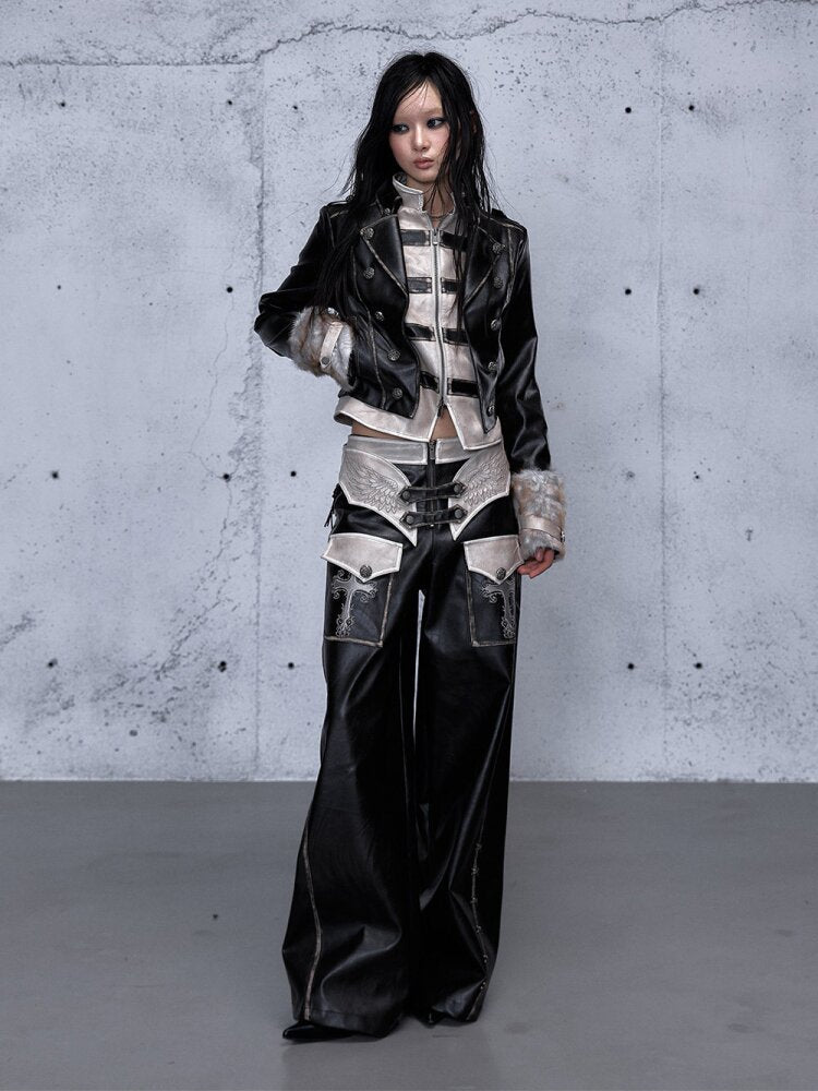 Fake Two Pieces Leather Trousers【s0000015542】