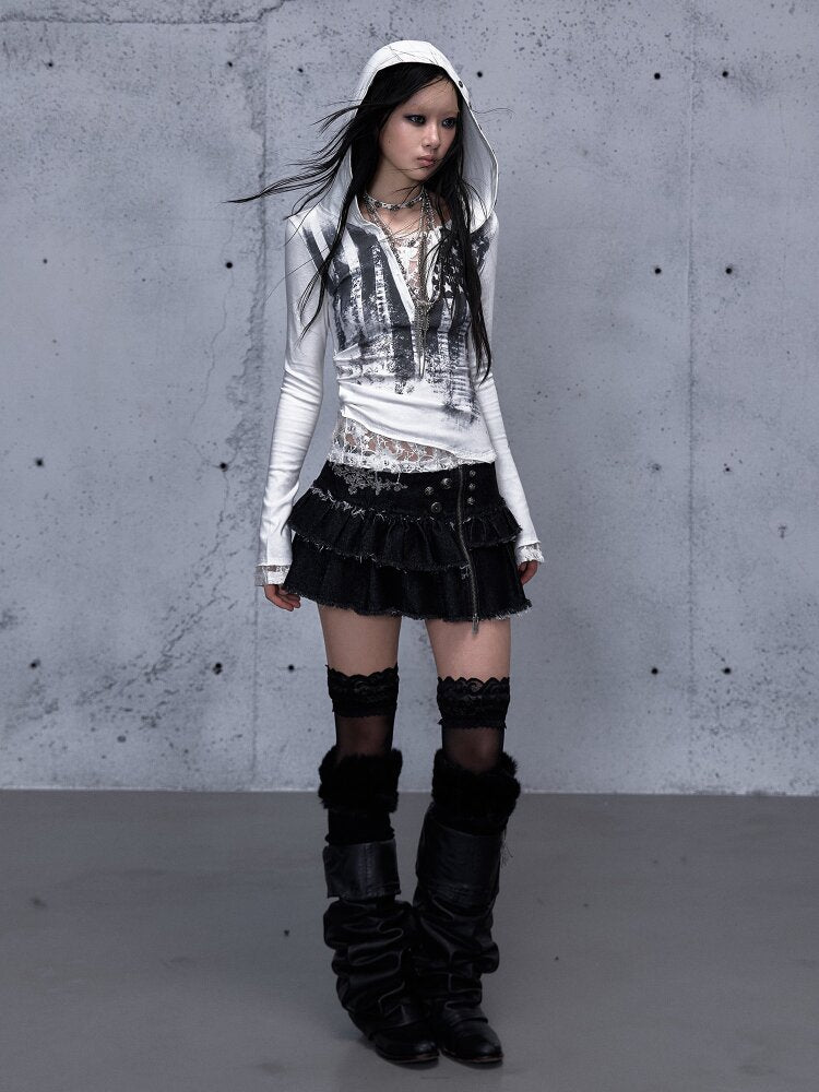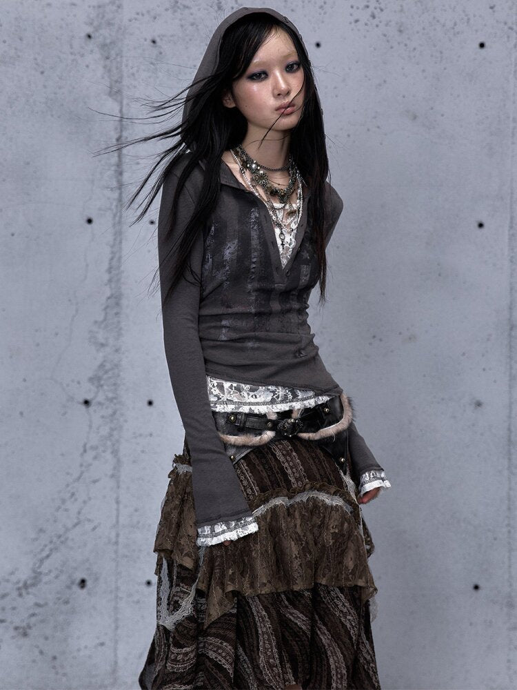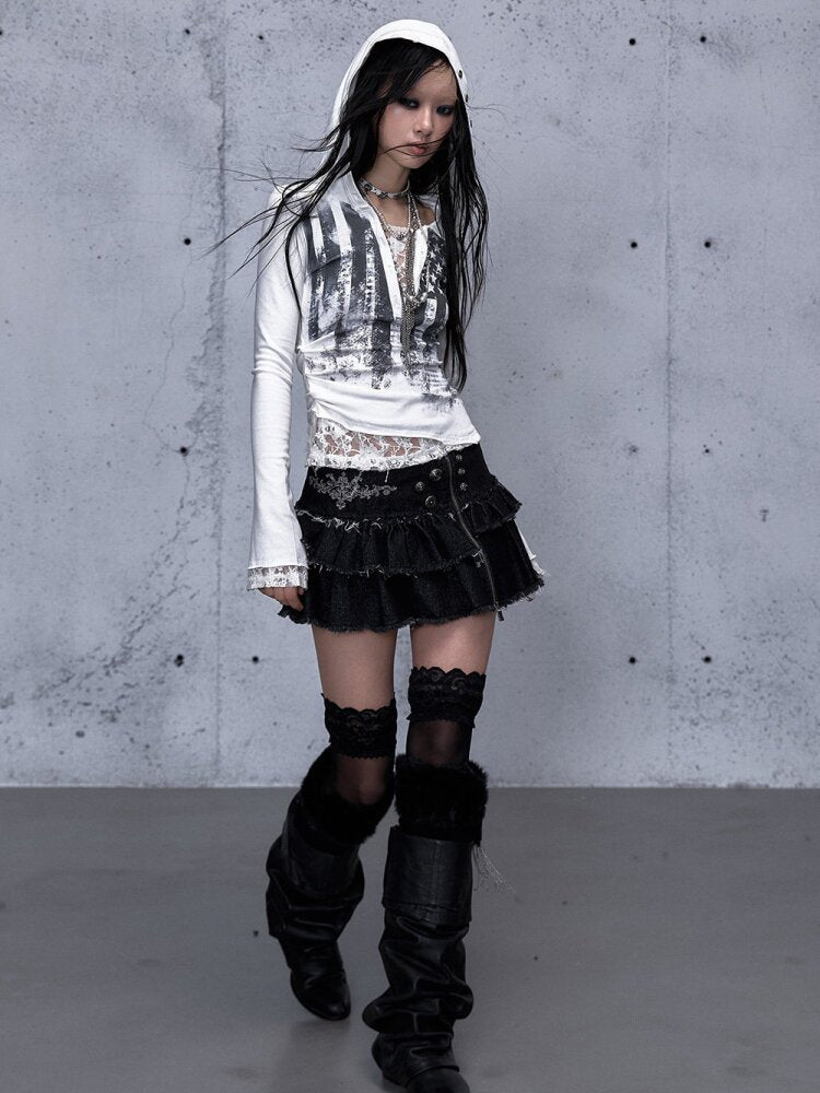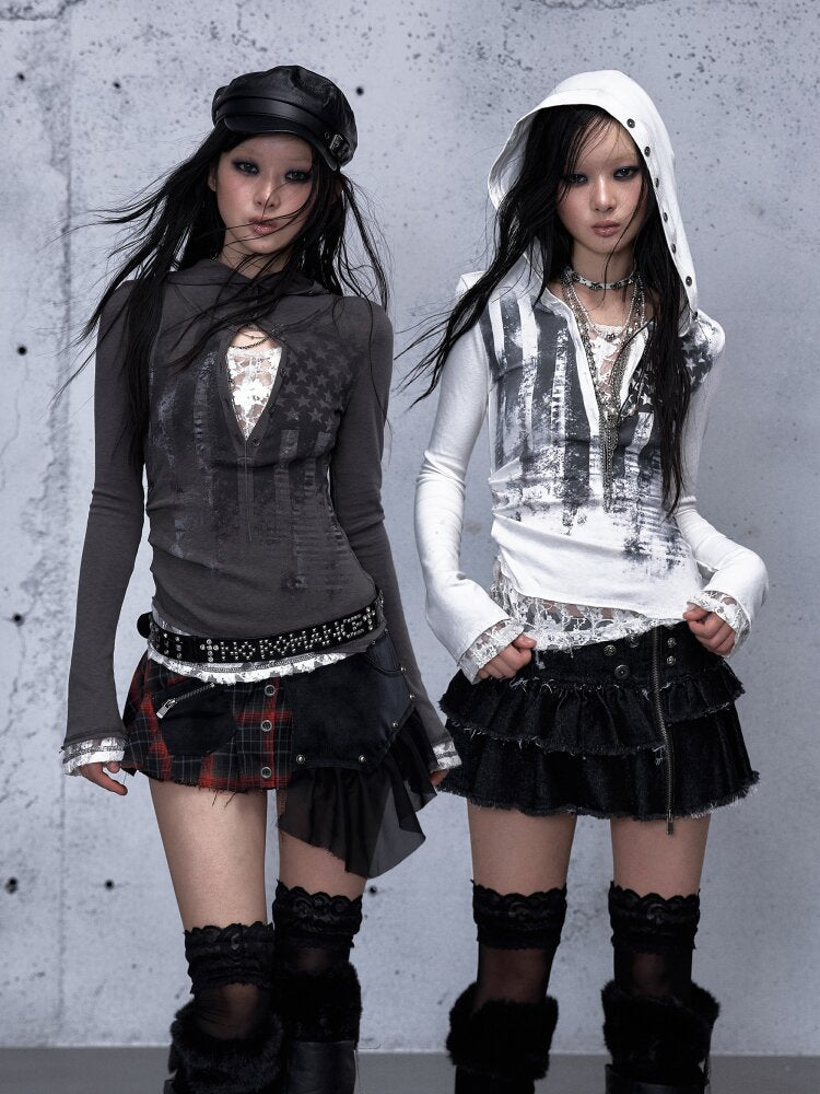 Lace Patchwork Hooded T-shirt【s0000015544】
