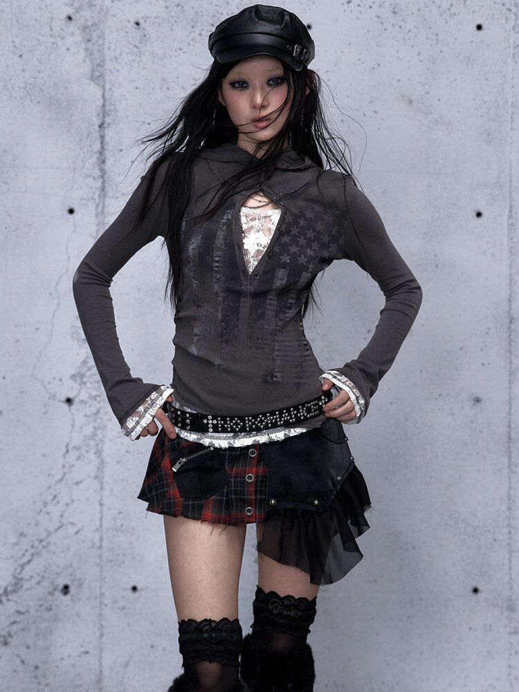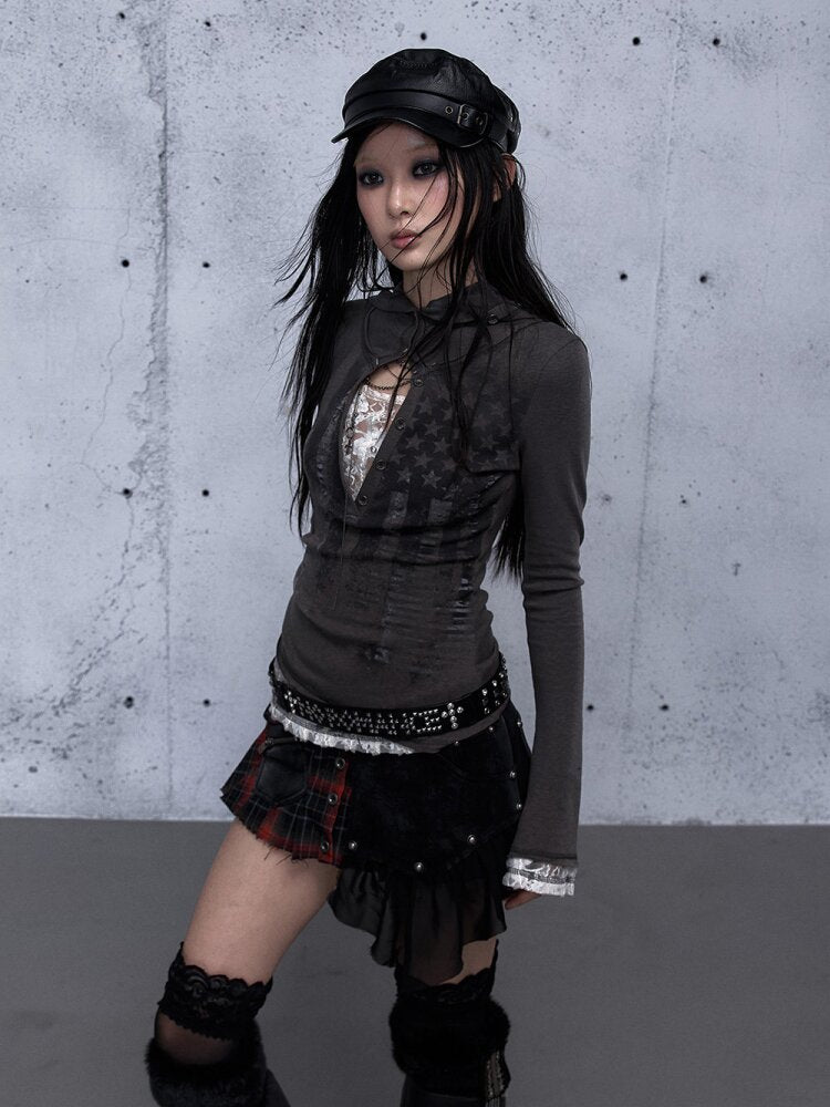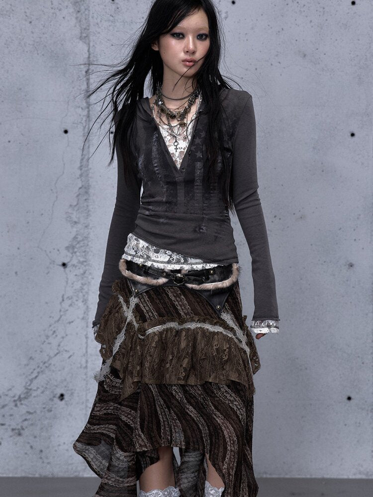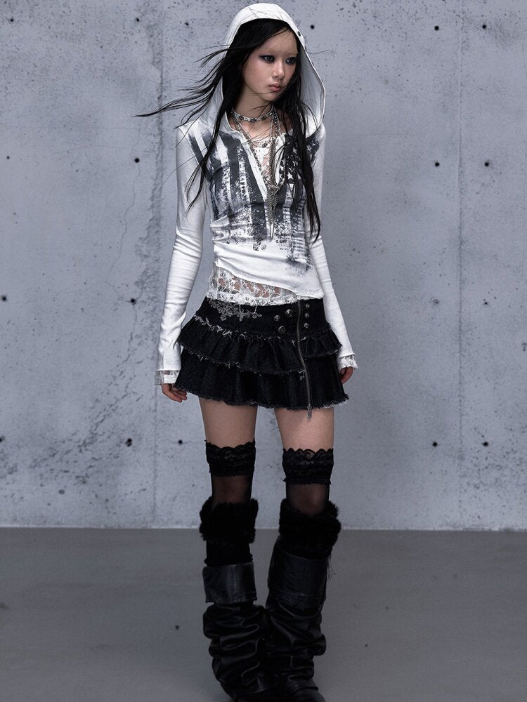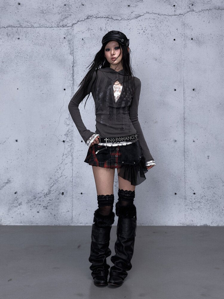 Lace Patchwork Hooded T-shirt【s0000015544】