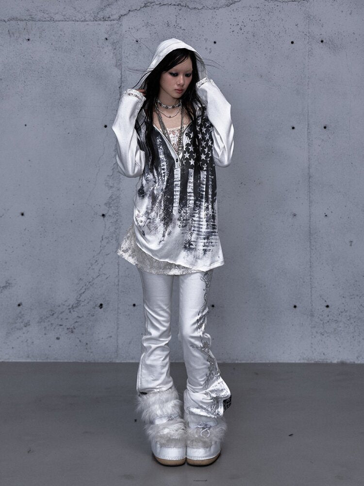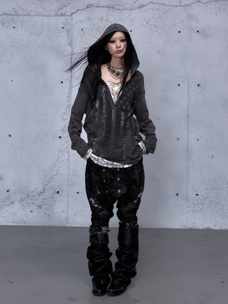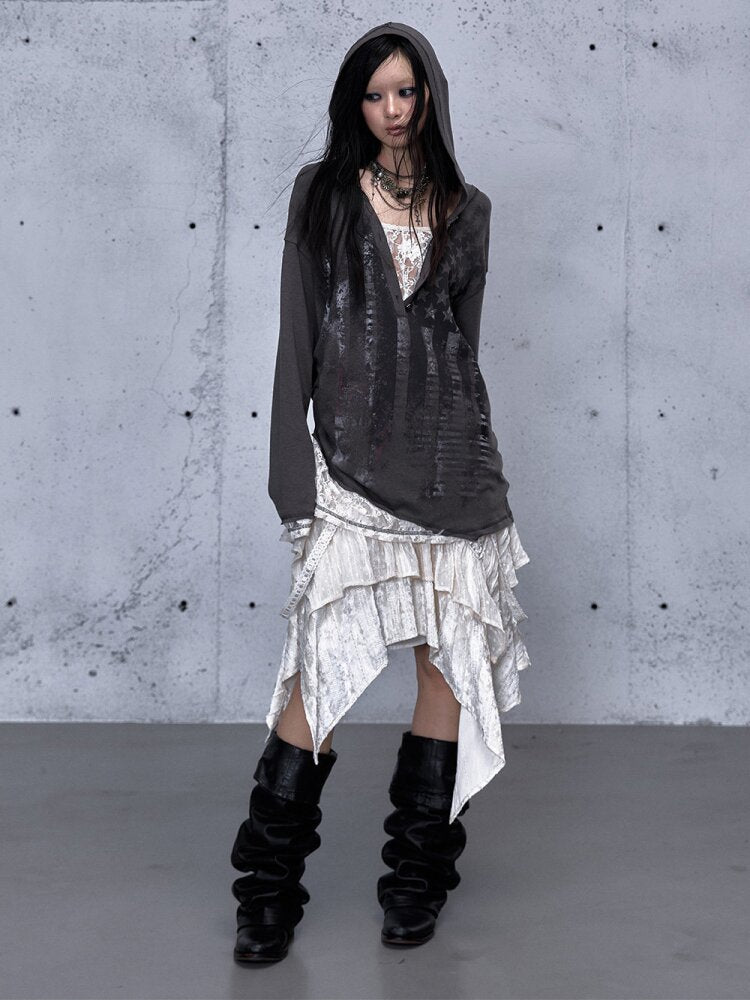 Lace Stitched Hooded T-Shirt【s0000015545】