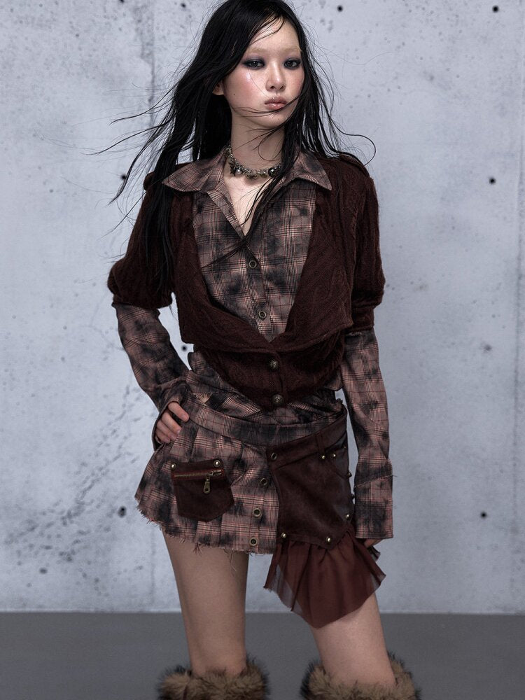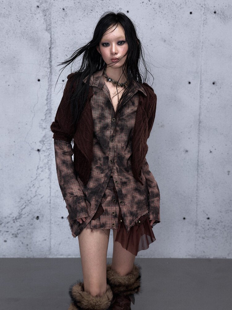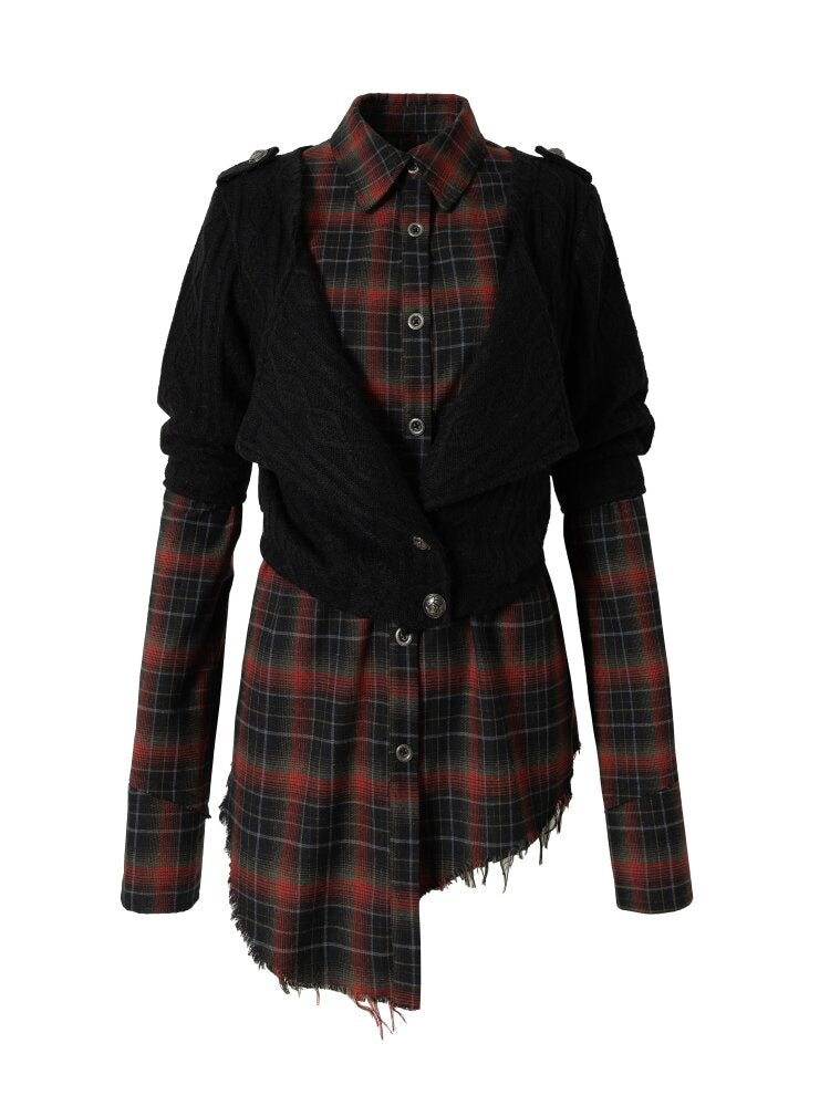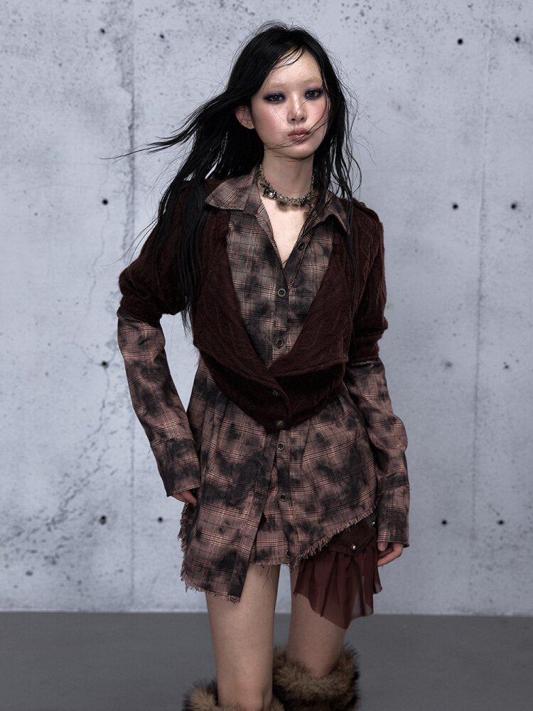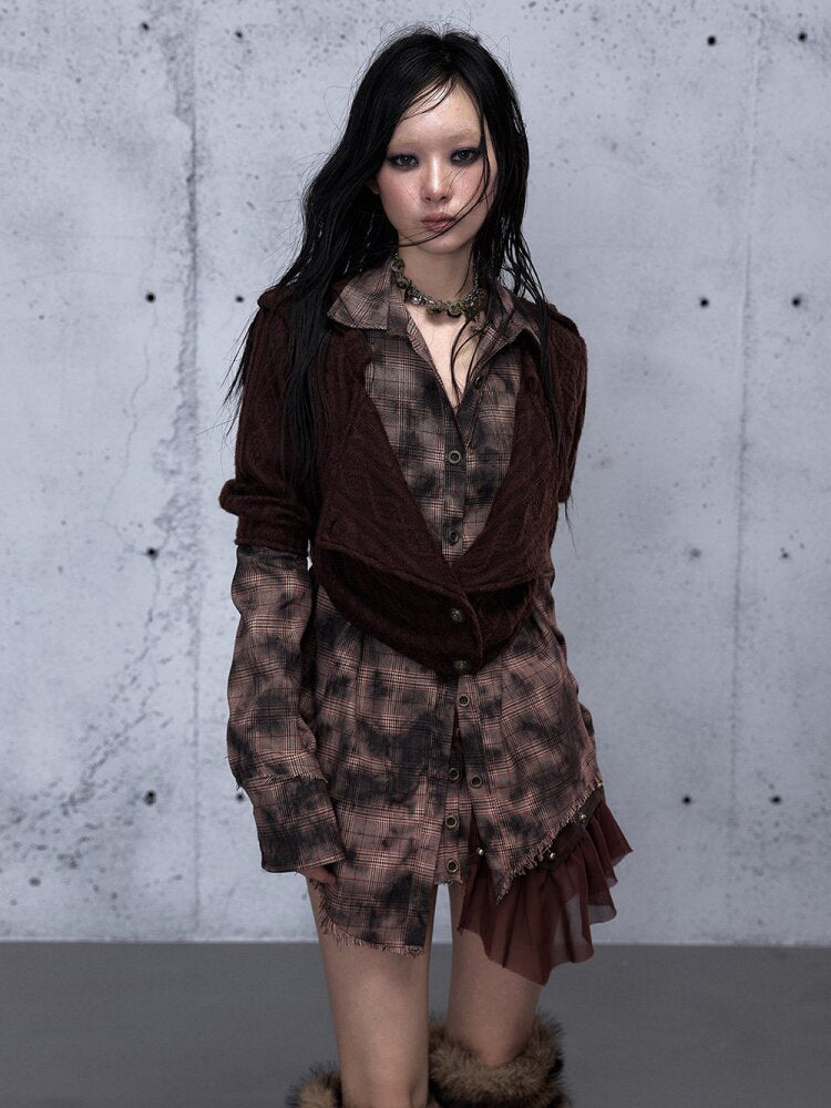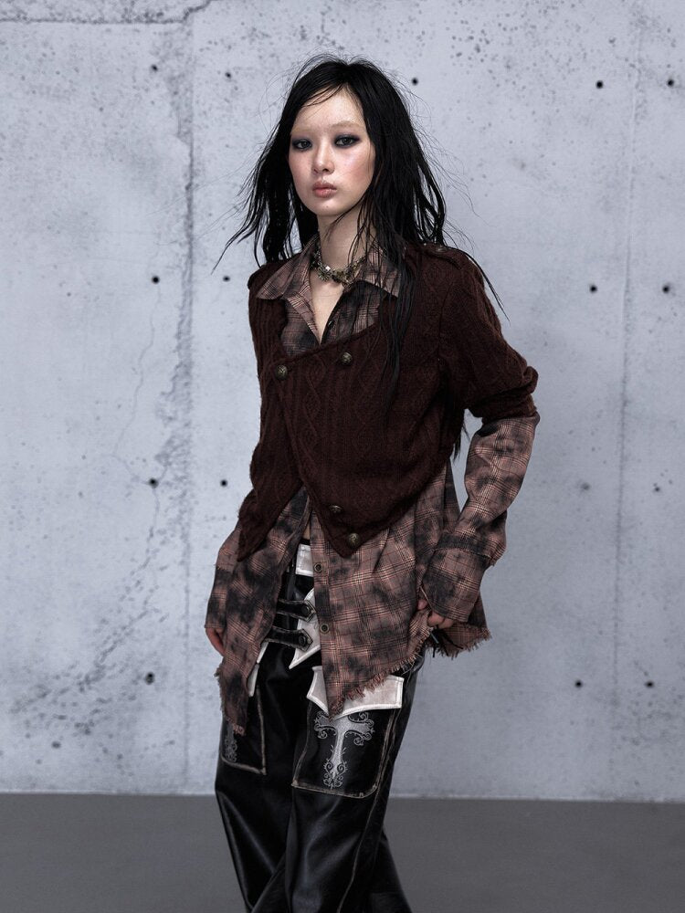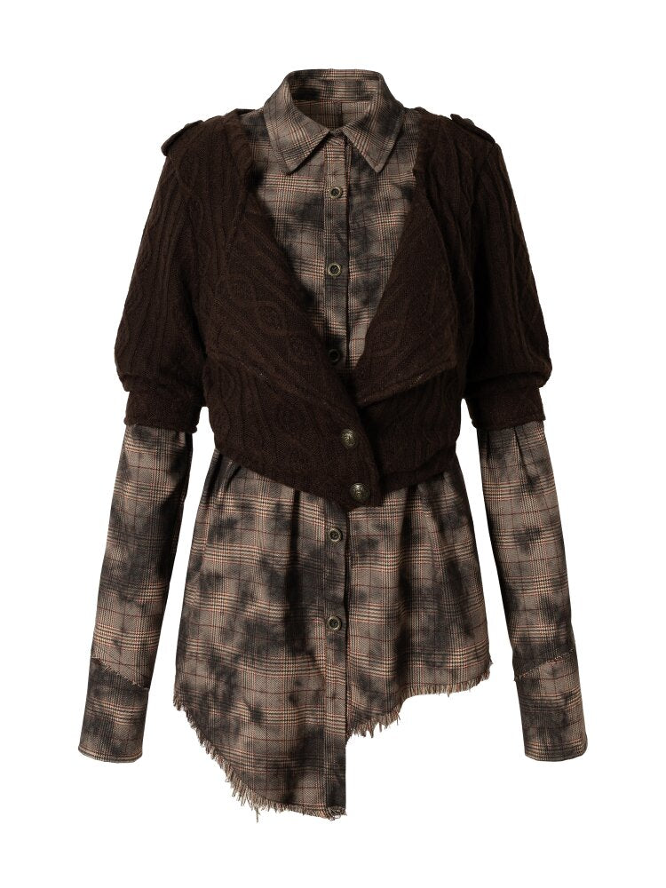 Check Knit Fake Two Piece Shirt【s0000015547】