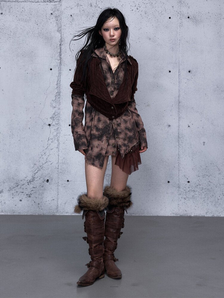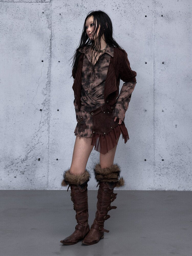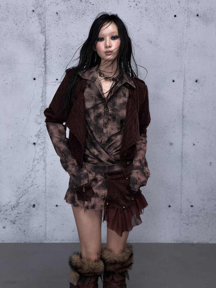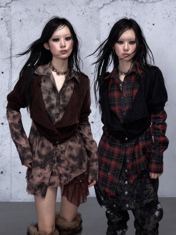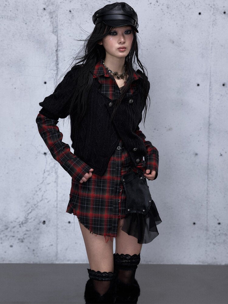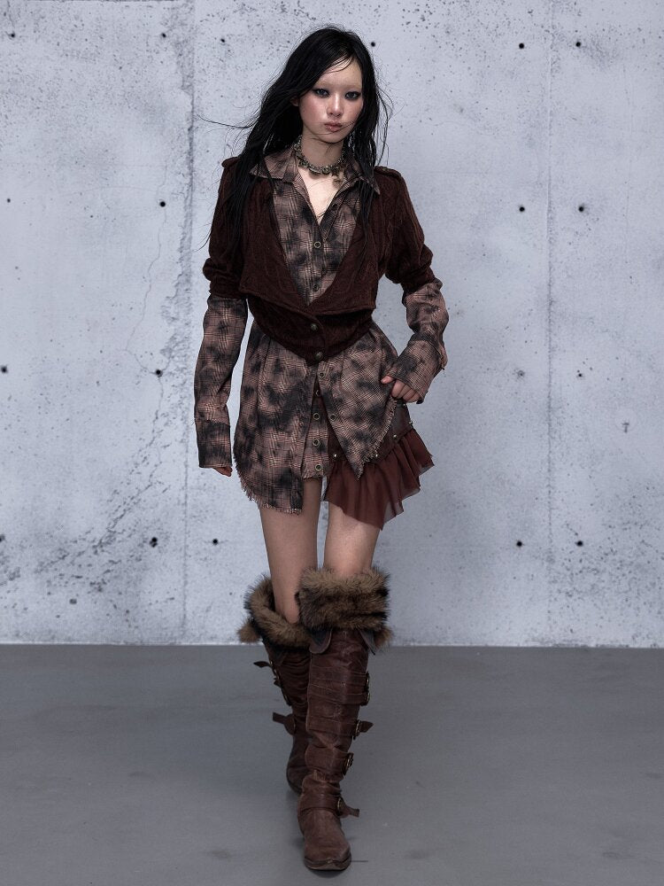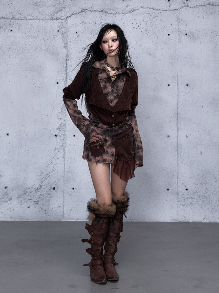 Check Knit Fake Two Piece Shirt【s0000015547】