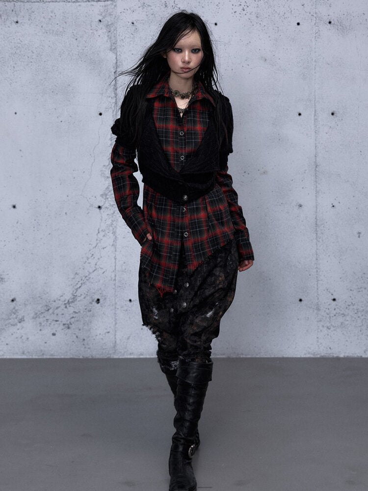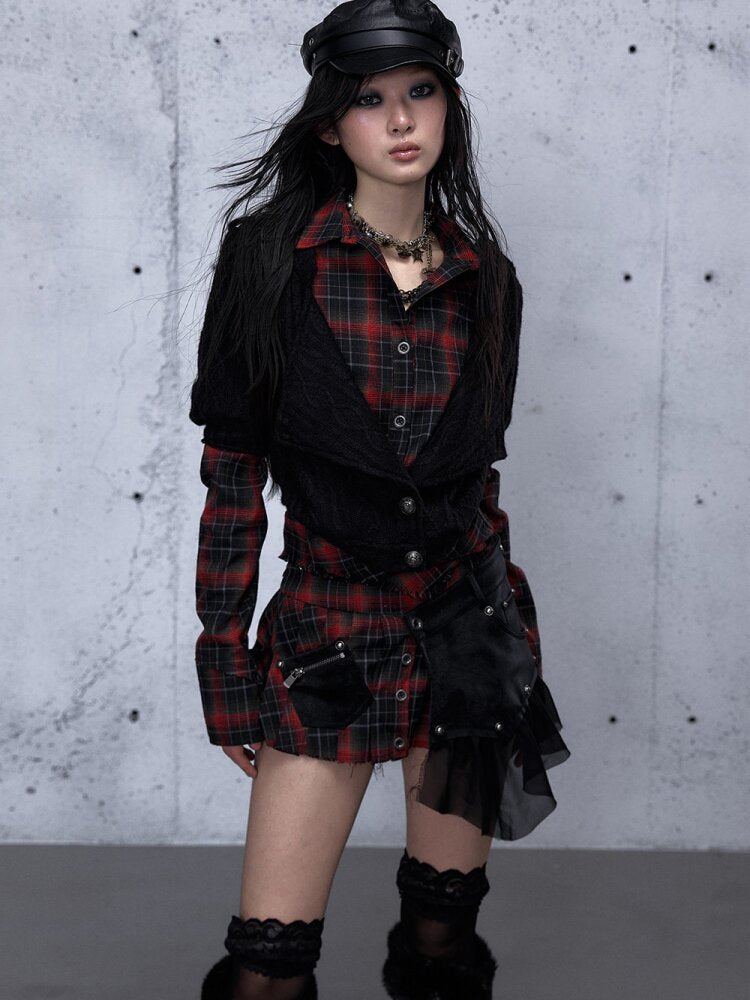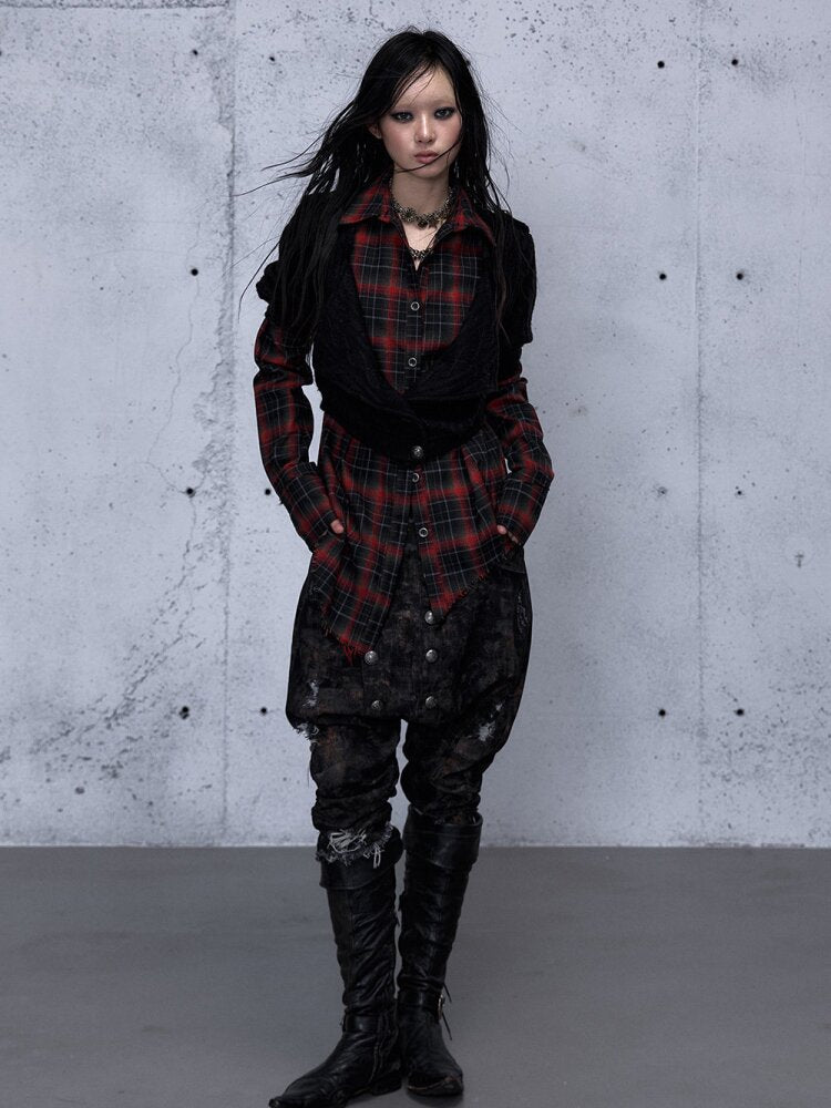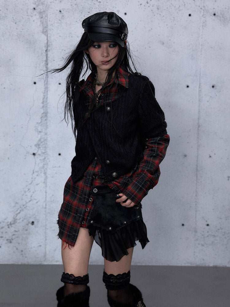 - Material:Black-Red (Knit: Polyester 100% / Plaid: Cotton 100%), Dark-Red (Knit: Polyester 100% / Plaid: Polyester 98%, Spandex 2%)