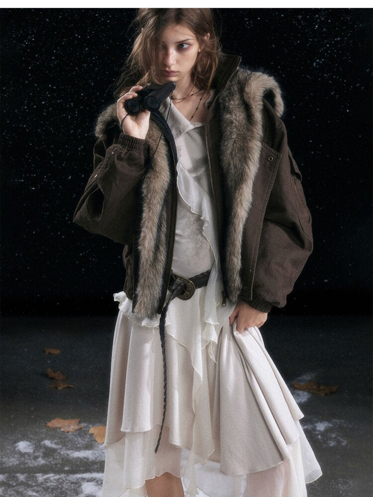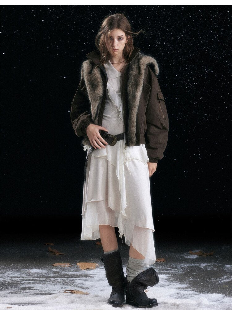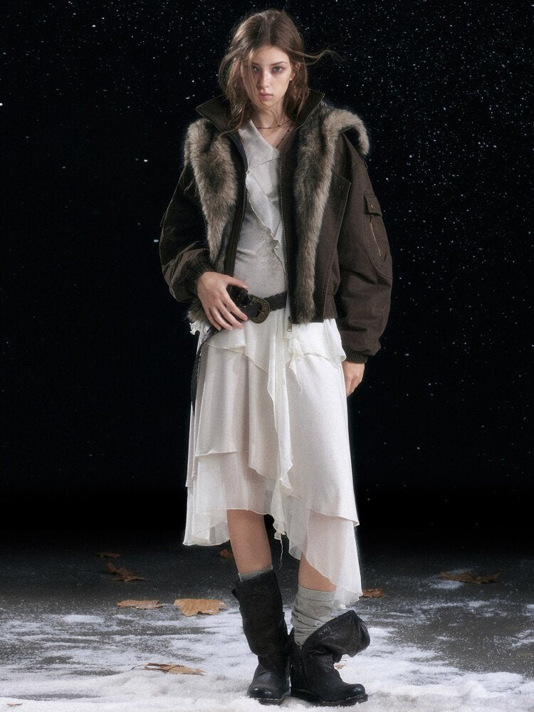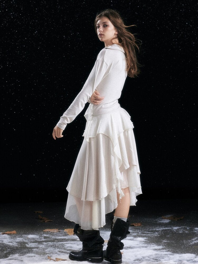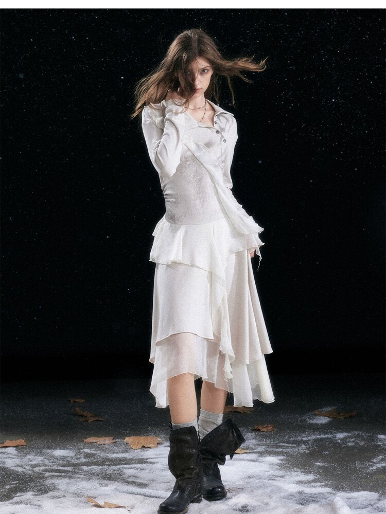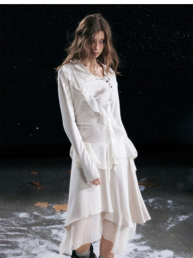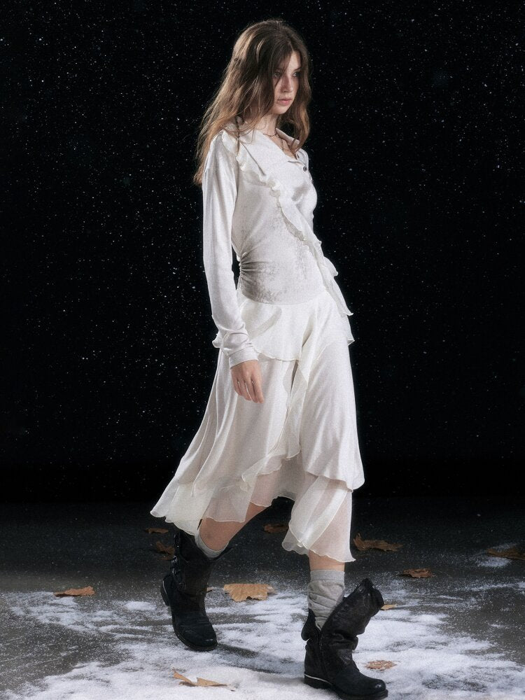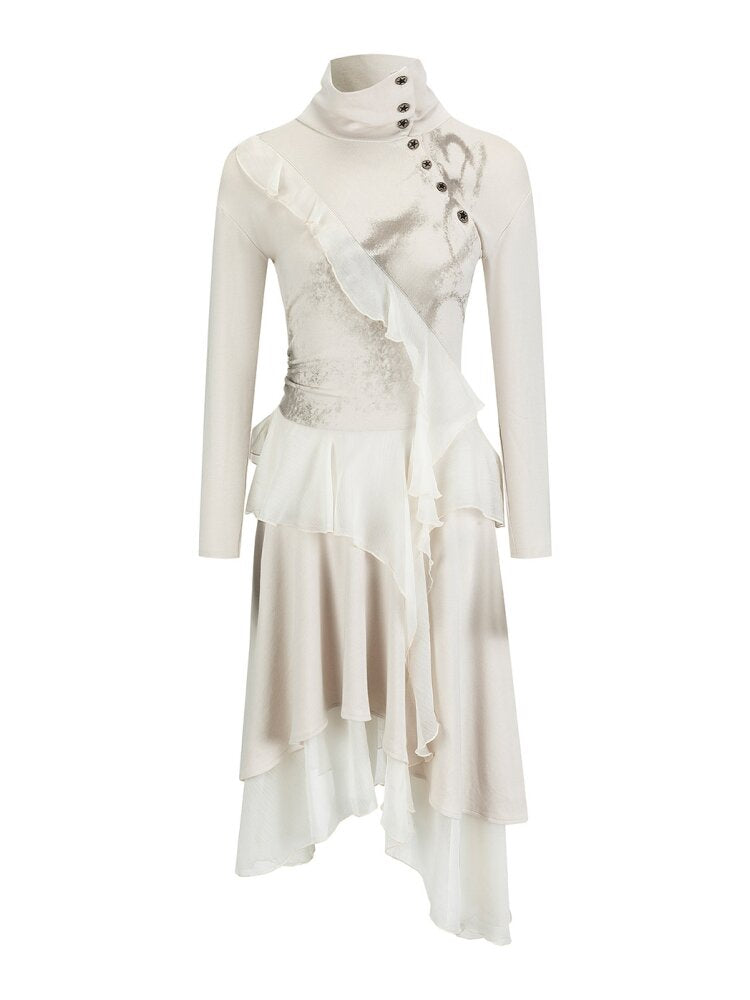 Smudged Print Ruffled Panel Dress【s0000015551】
