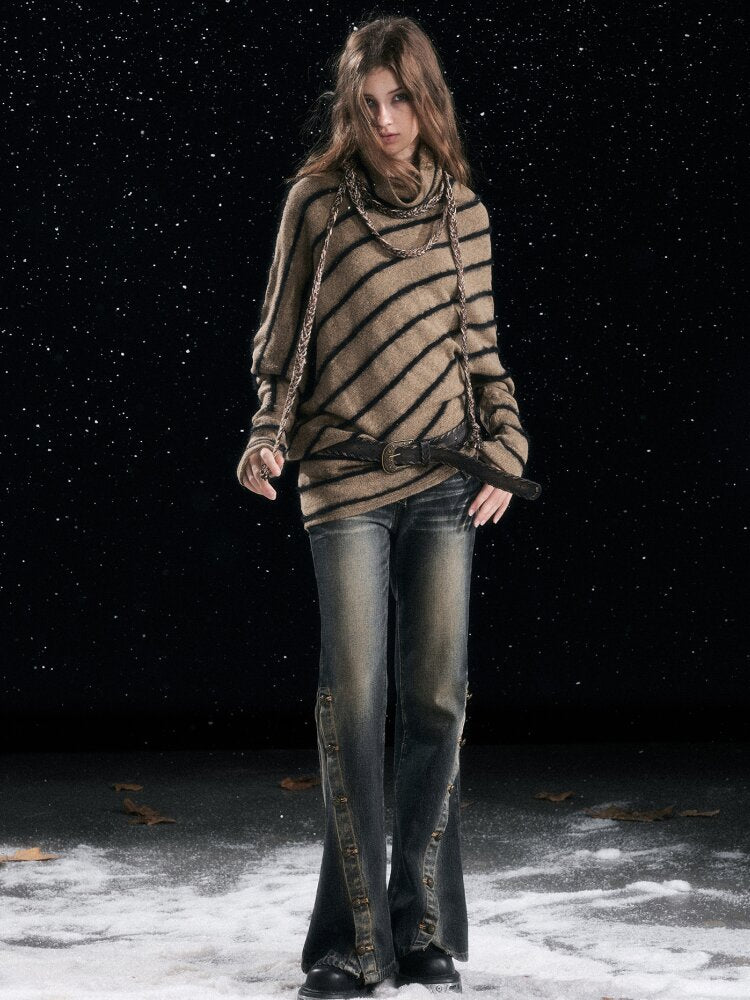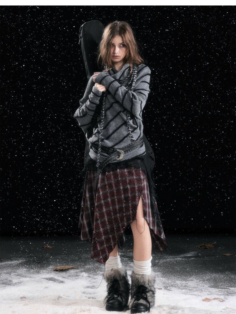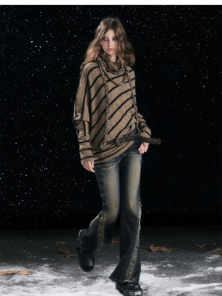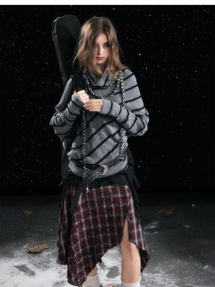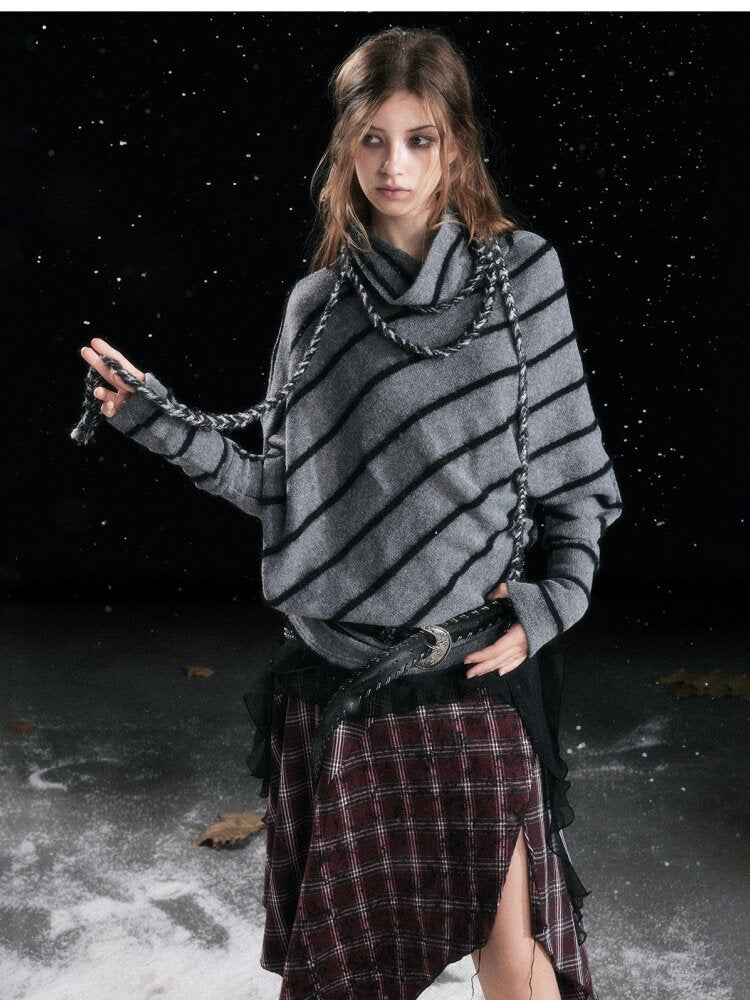 Twill Stripe Braided Wool Sweater【s0000015553】