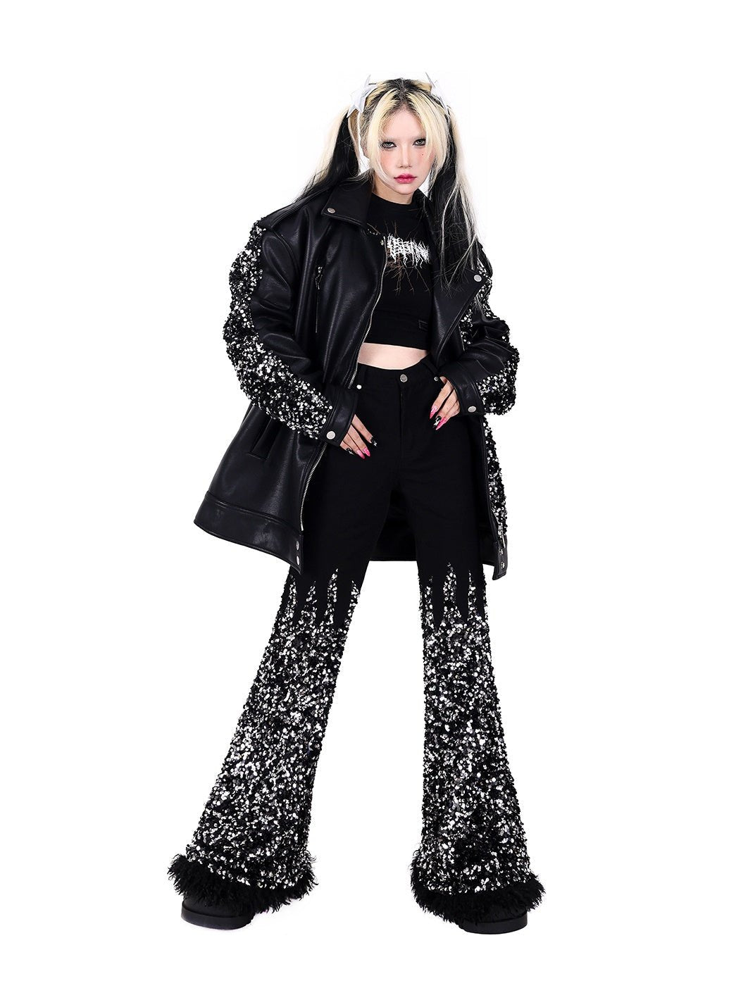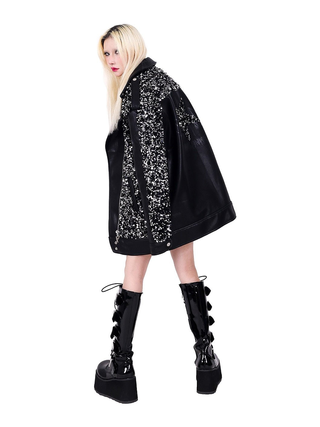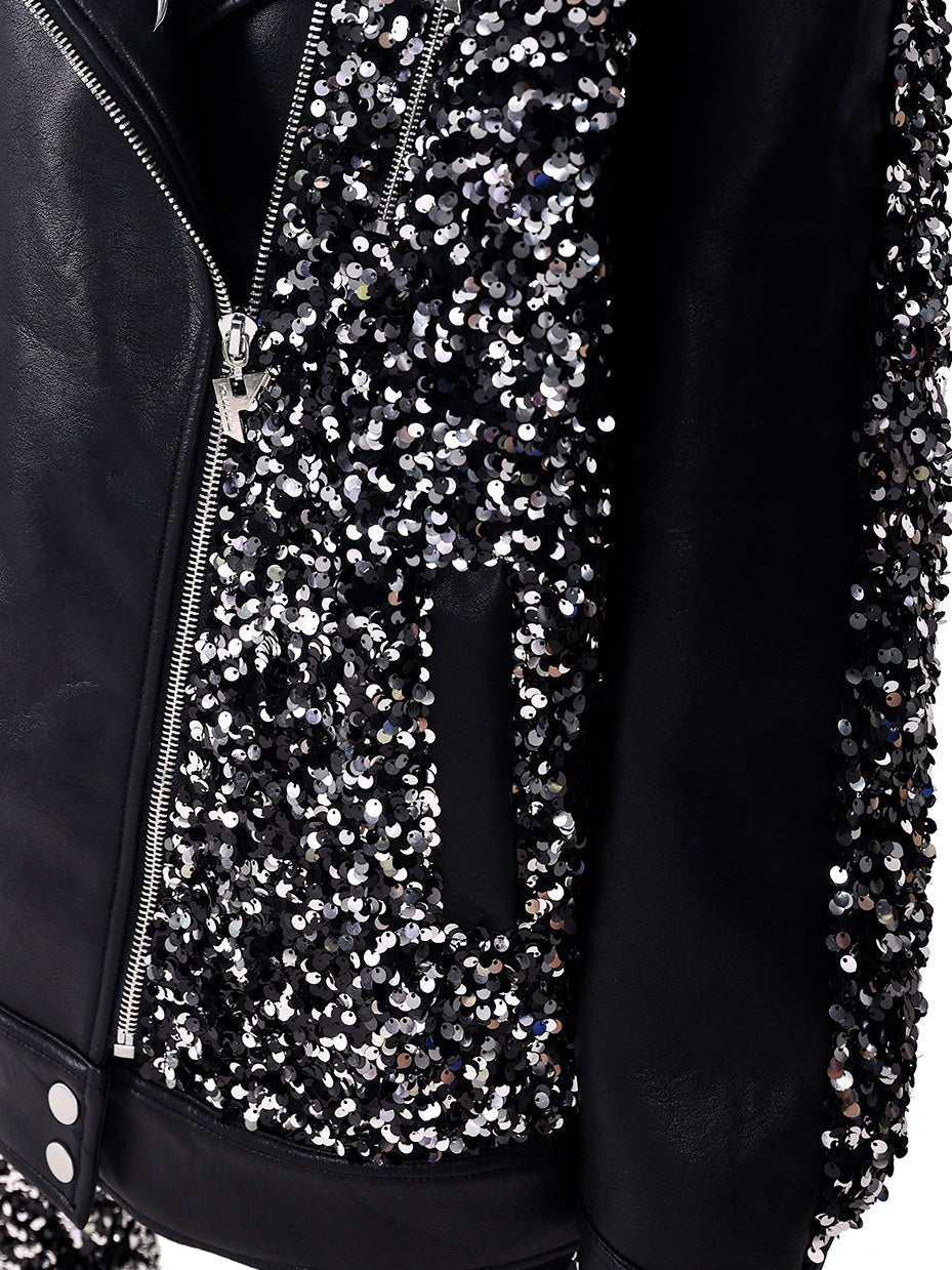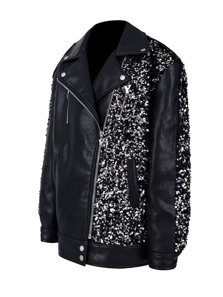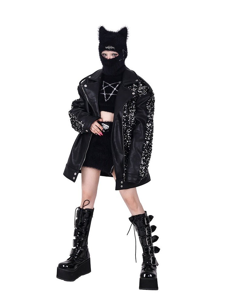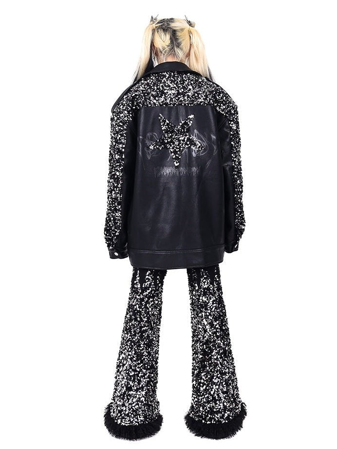 Sequined Stars Loose Leather Jacket【s0000000317】