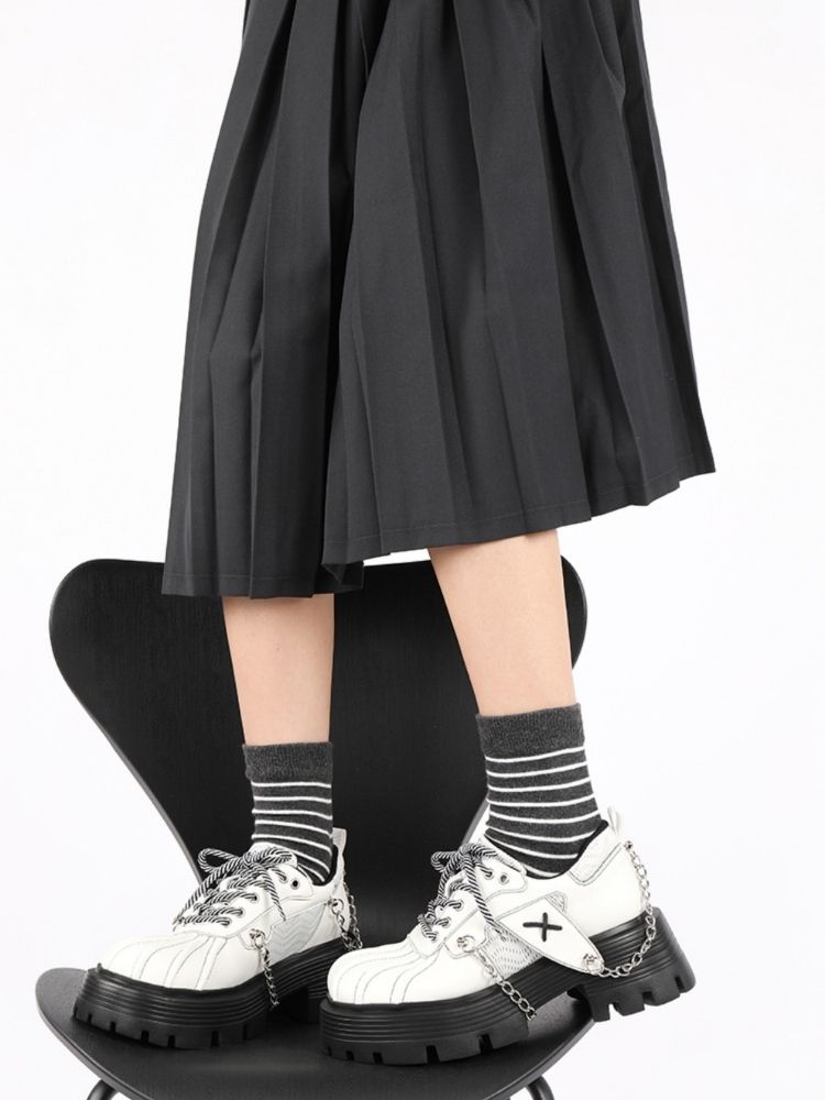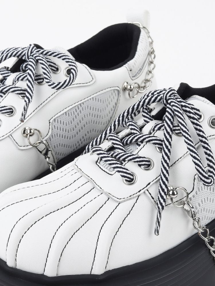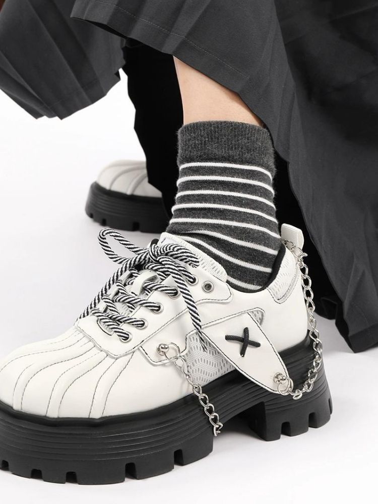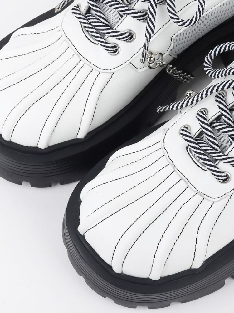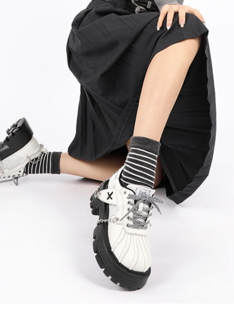 デザインが気に入って購入しました。届いてみると思っていたより軽くて、歩く日でも履けそうな厚底スニーカーです。これからどんな服に合わせて履こうか楽しみ❢