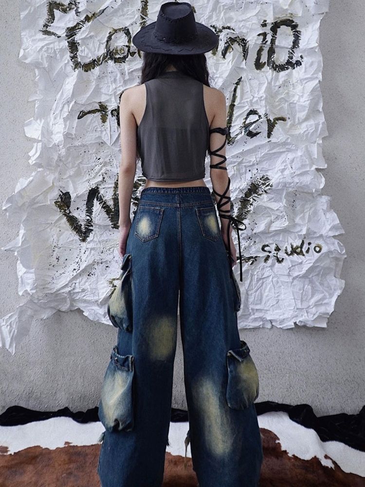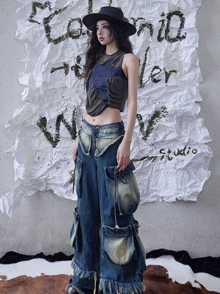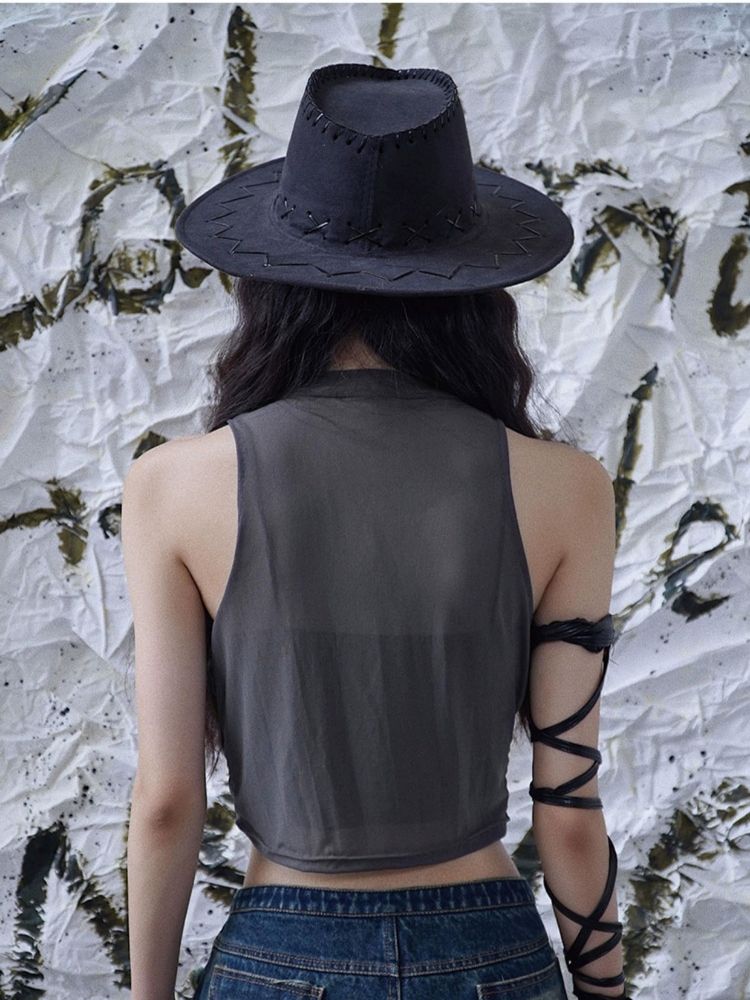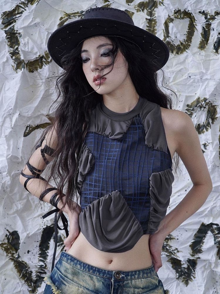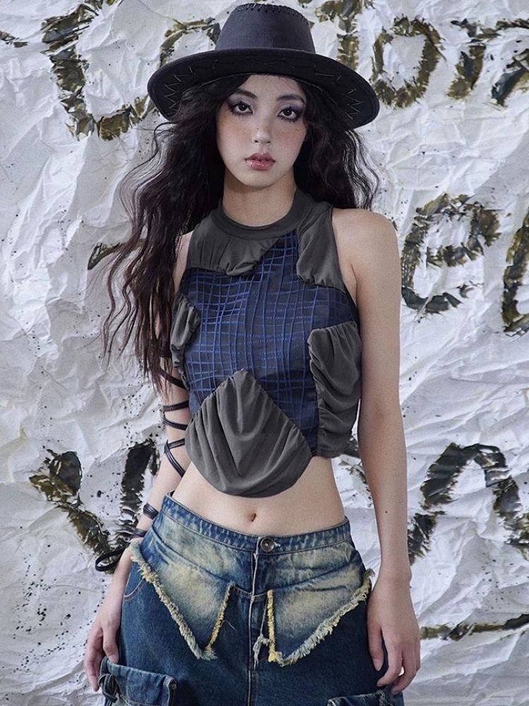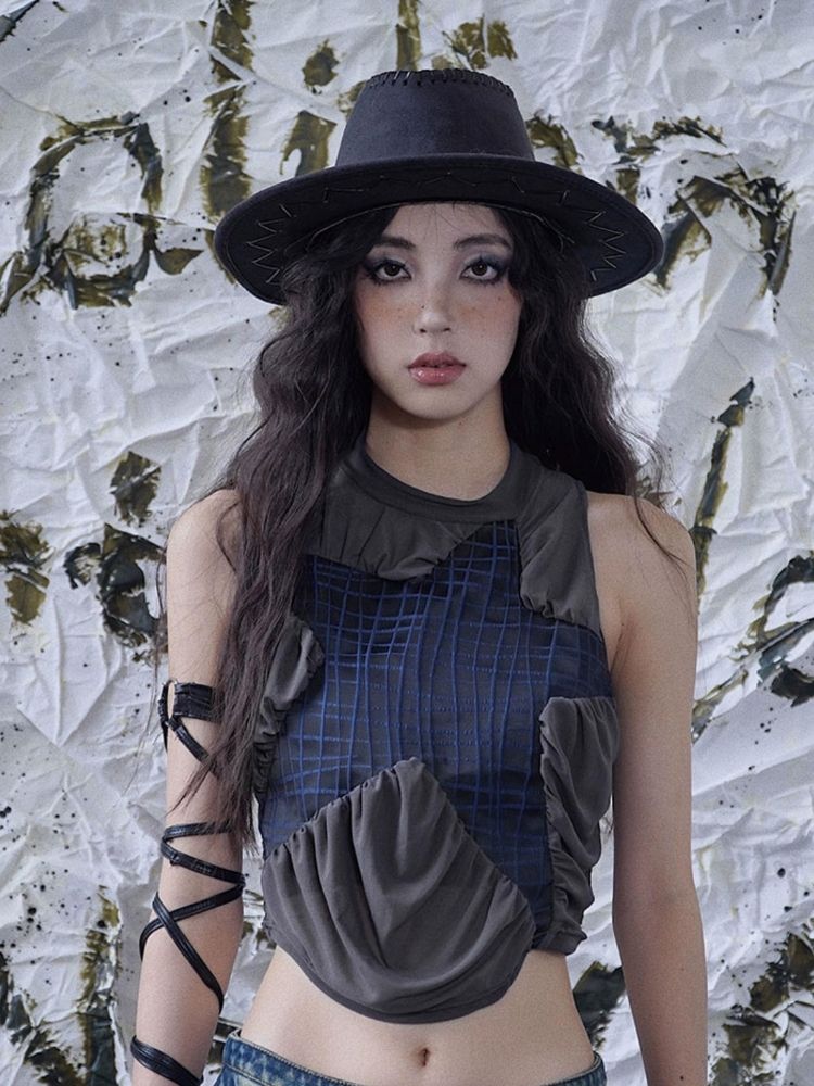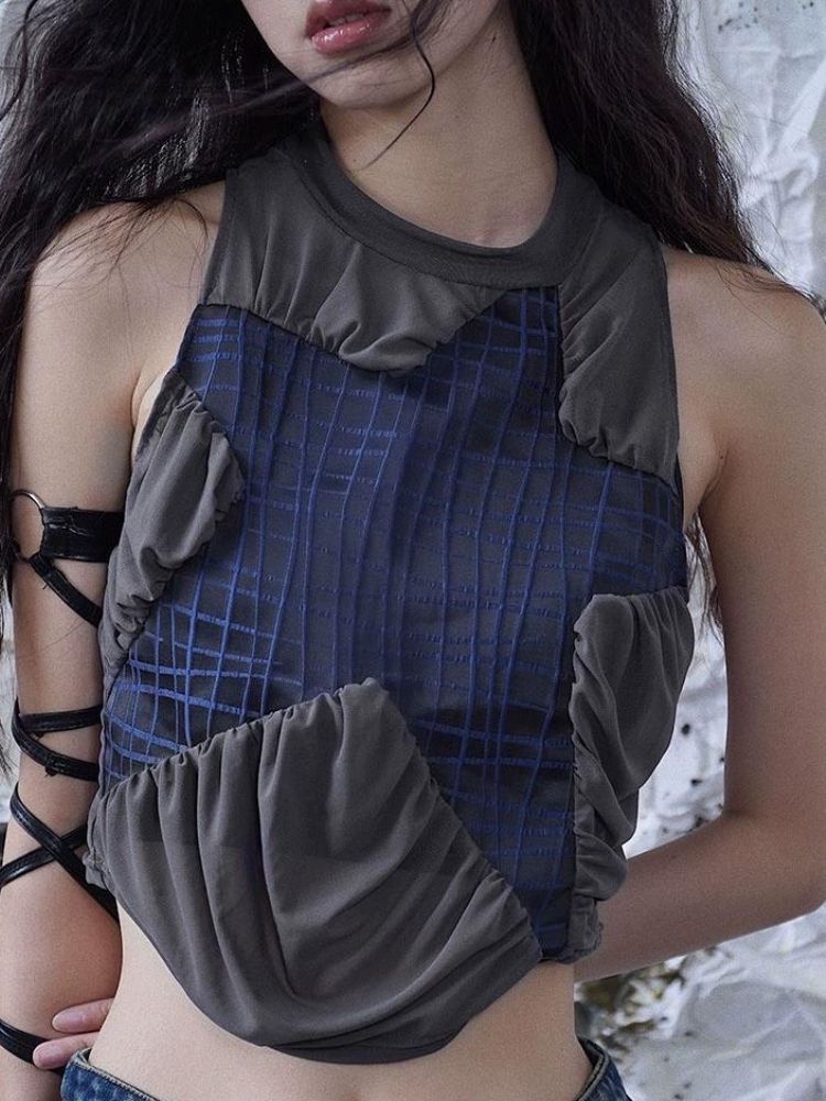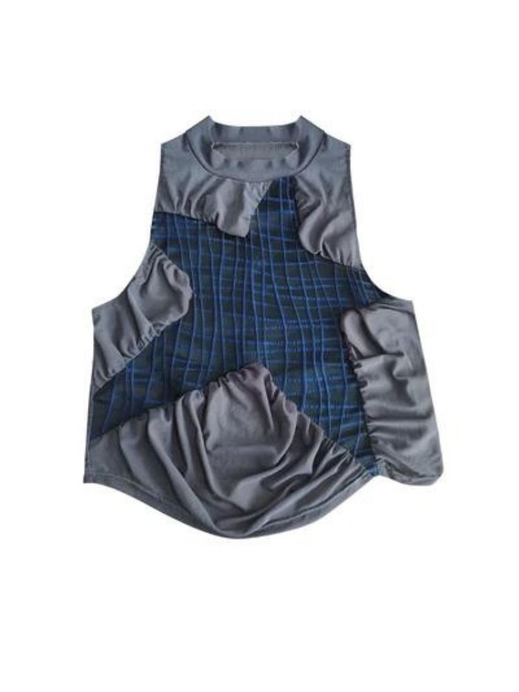Original mesh pleated stitching vest【s0000003014】