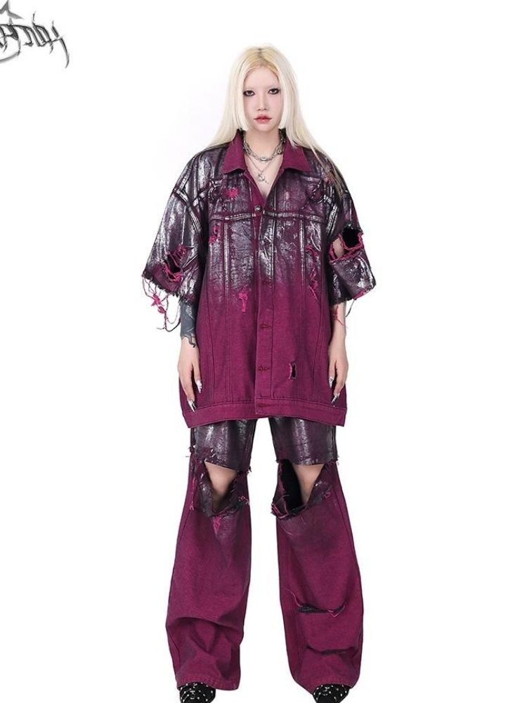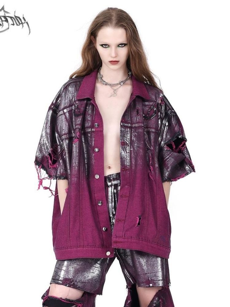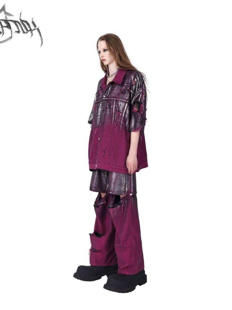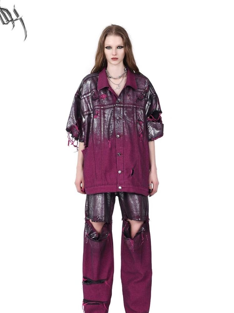 Purple ripped jeans jacket【s0000003148】