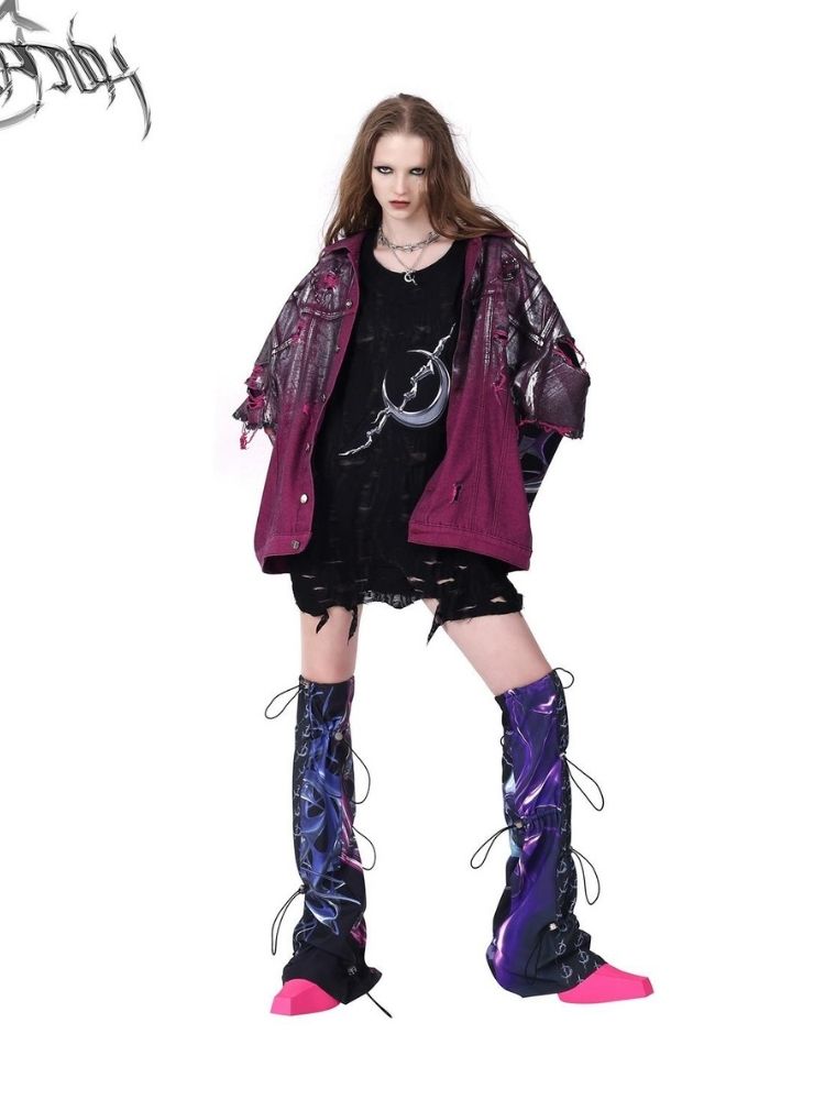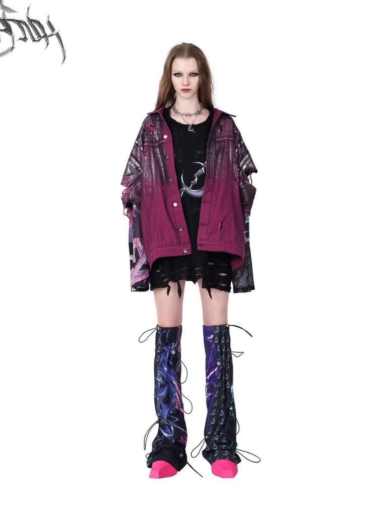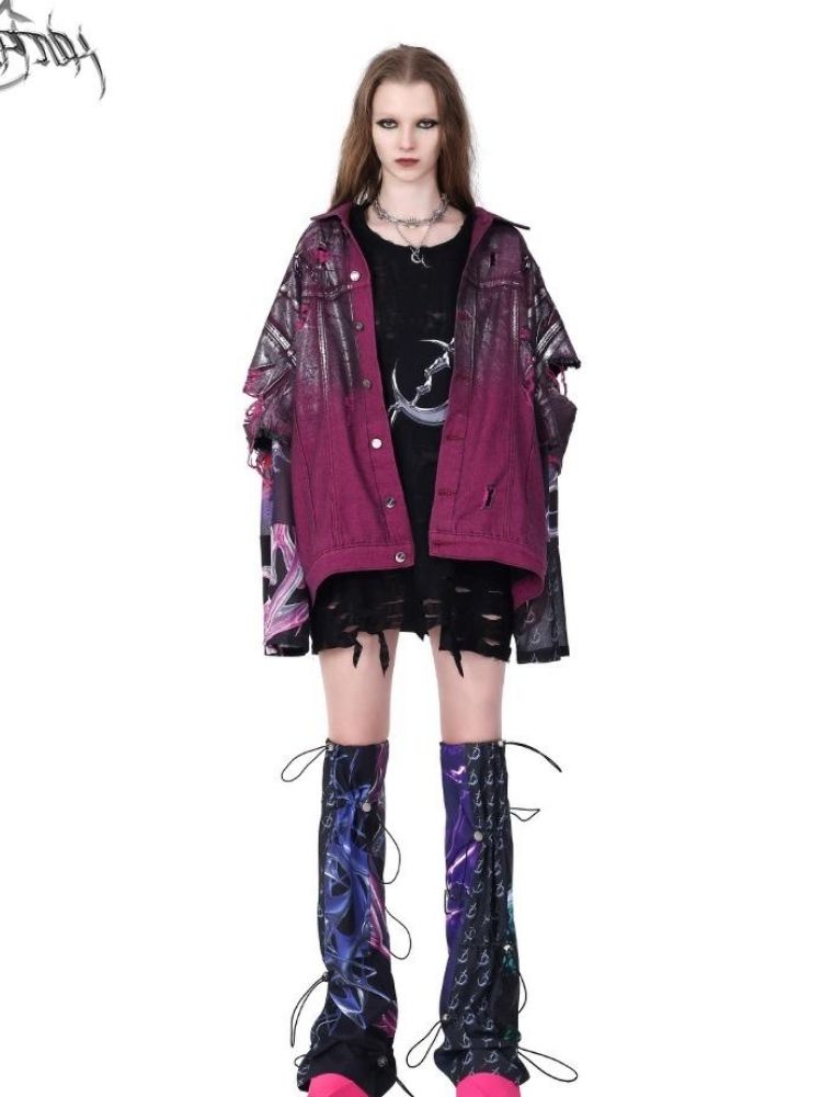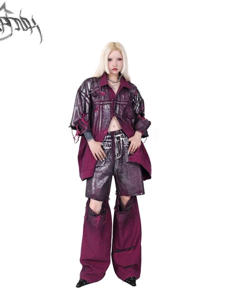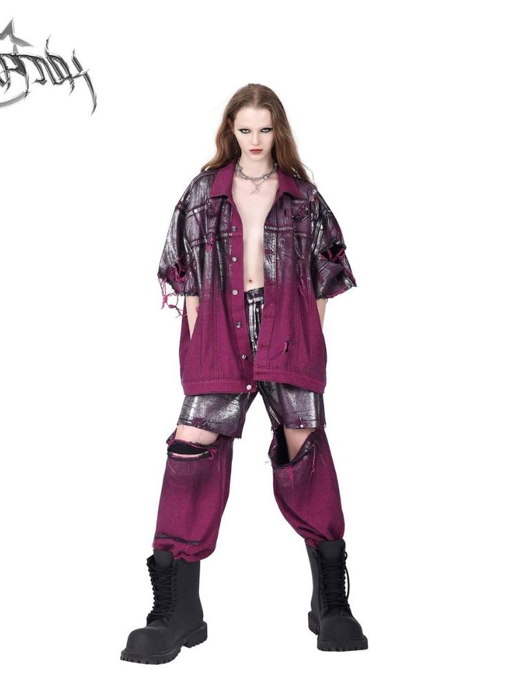 Purple ripped jeans jacket【s0000003148】