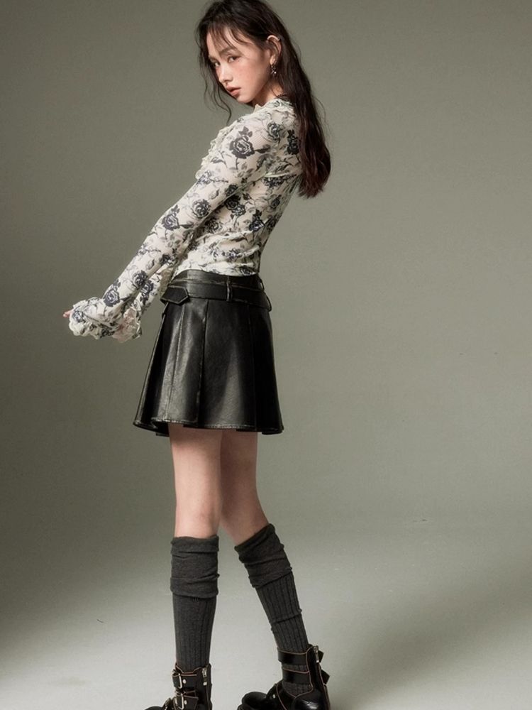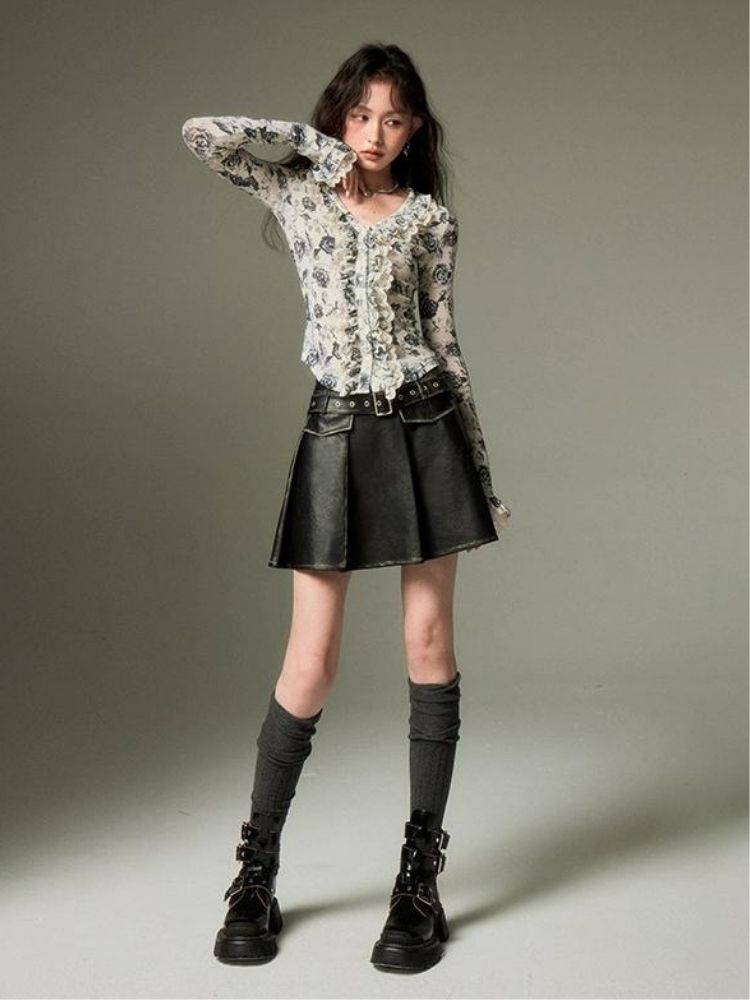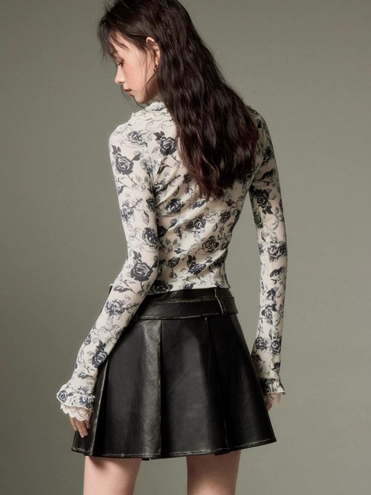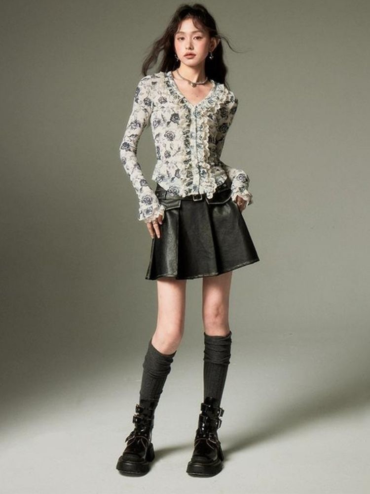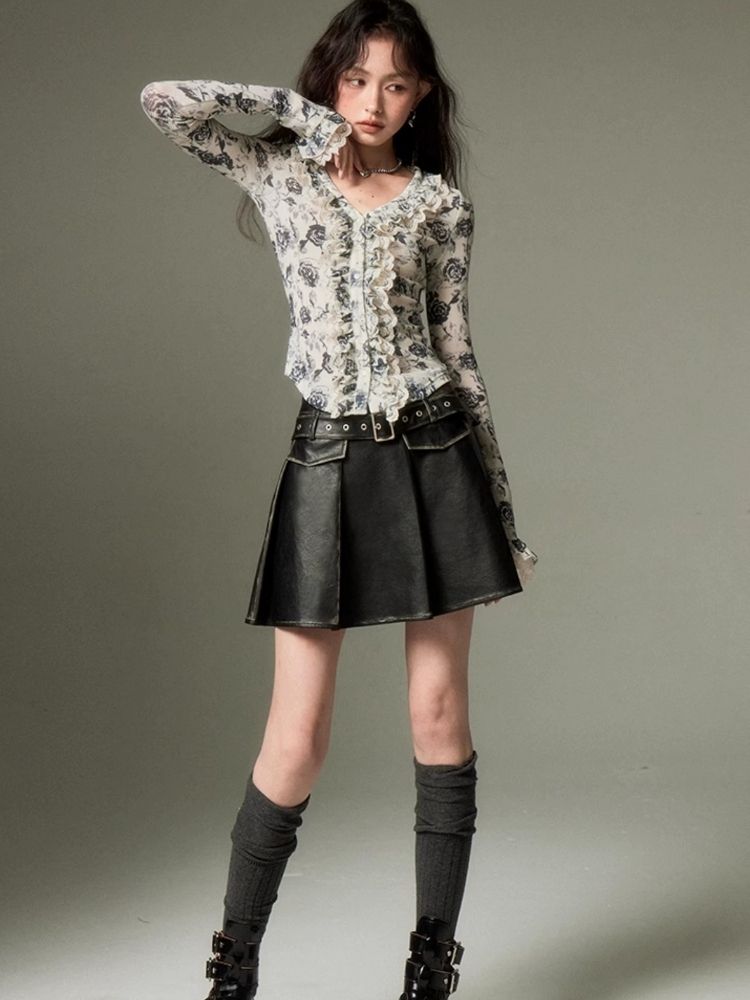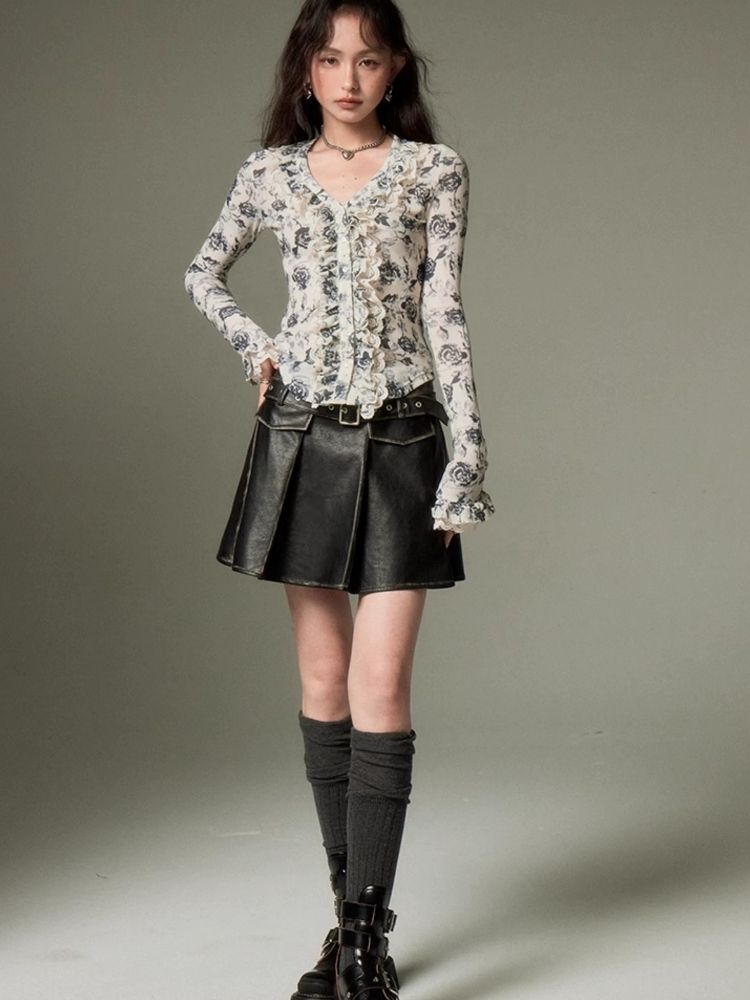 Floral lace long-sleeved v-neck shirt【s0000003270】