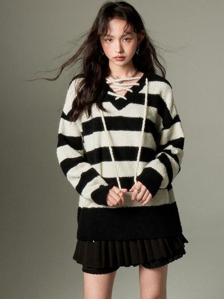 Pullover V-neck long-sleeved knitted【s0000003285】