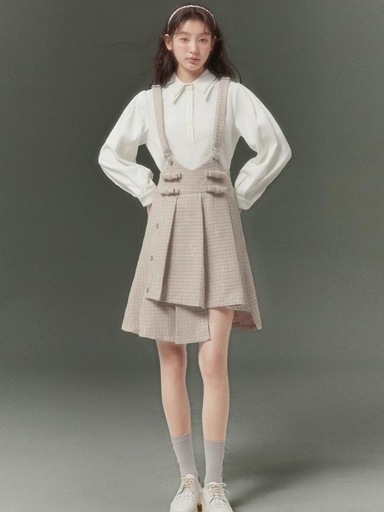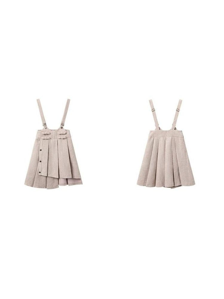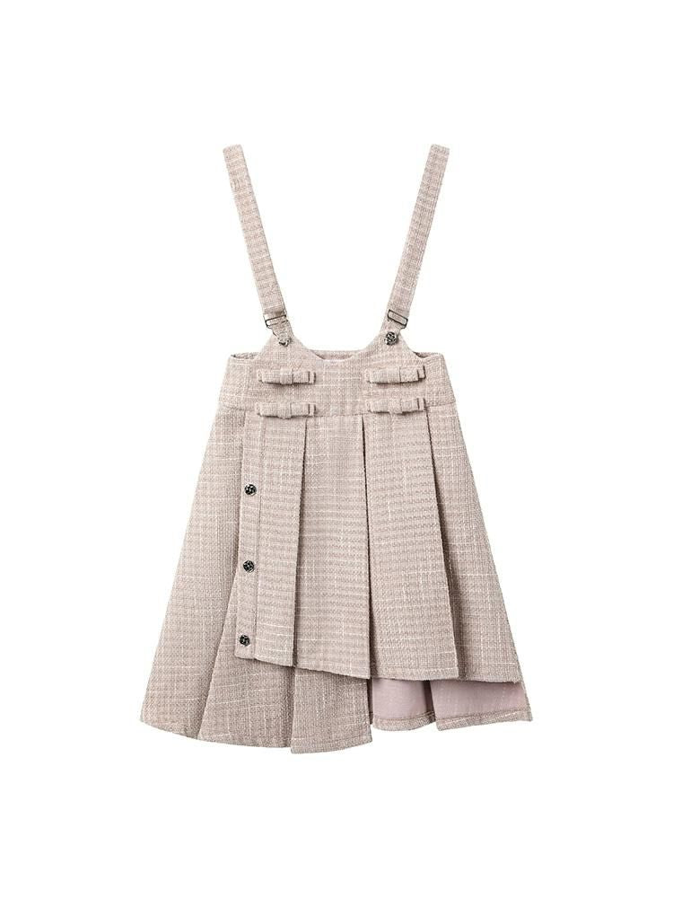 Little Ribbon Irregular Suspender Pleats Skirt【s0000003405】