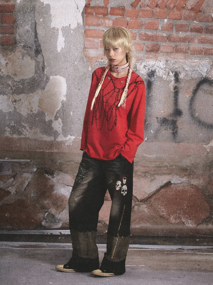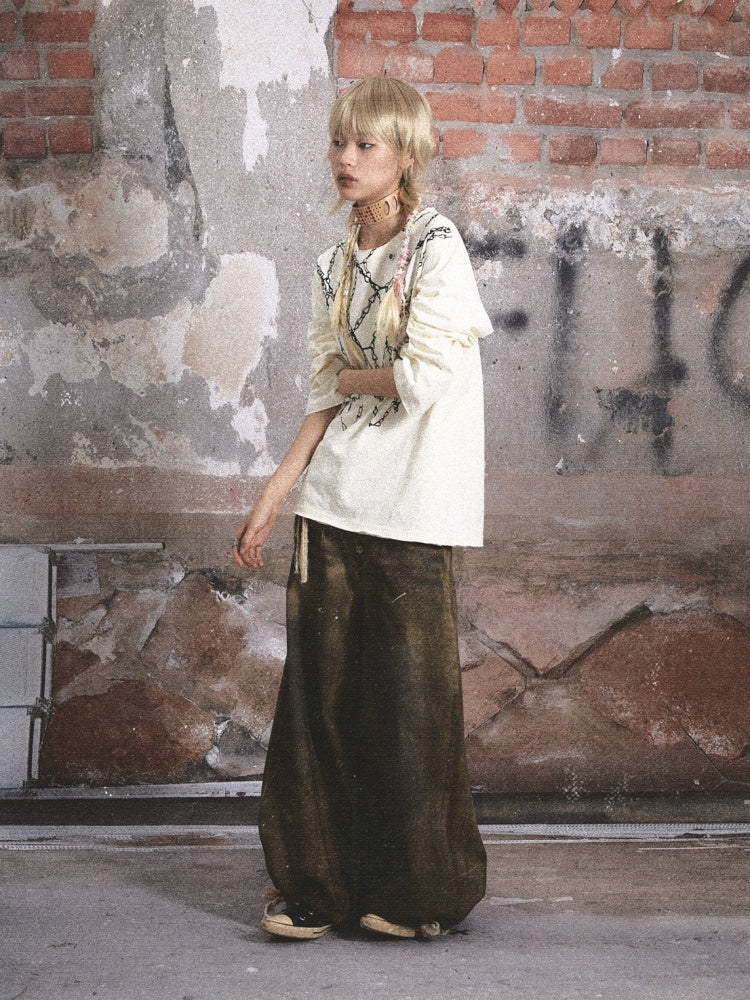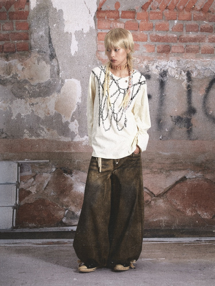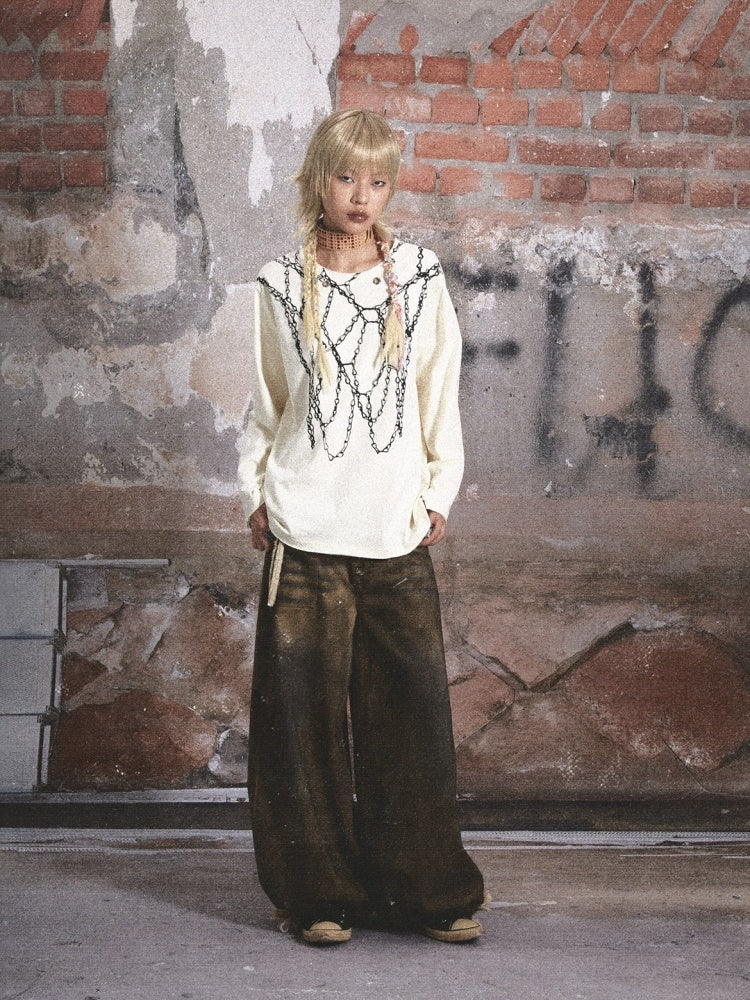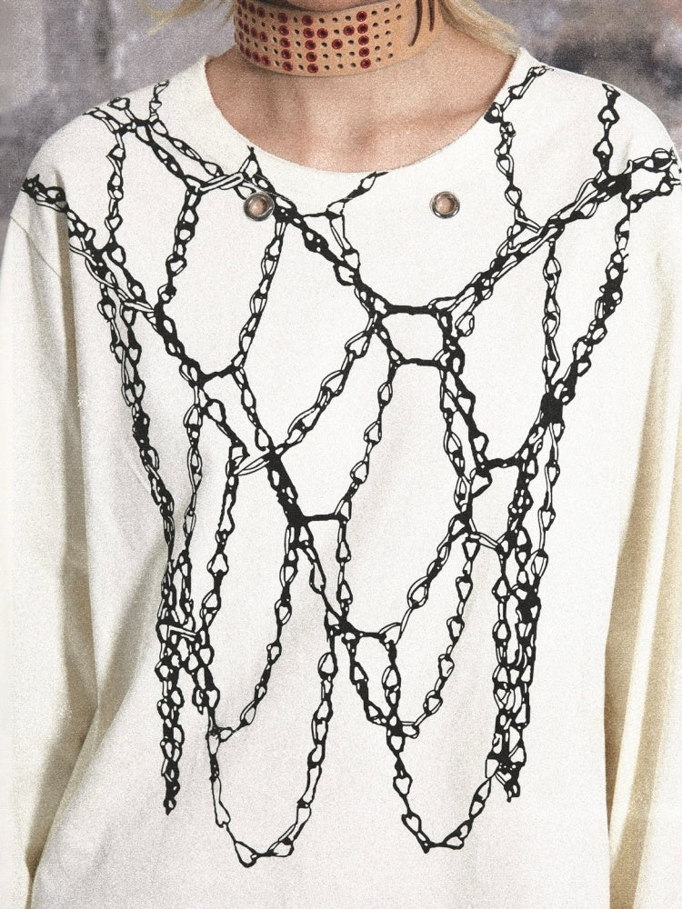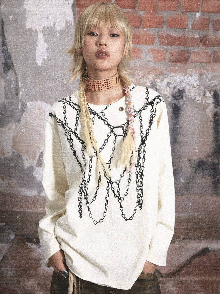 Chain print Loose Long Sleeve T-Shirt【s0000003437】