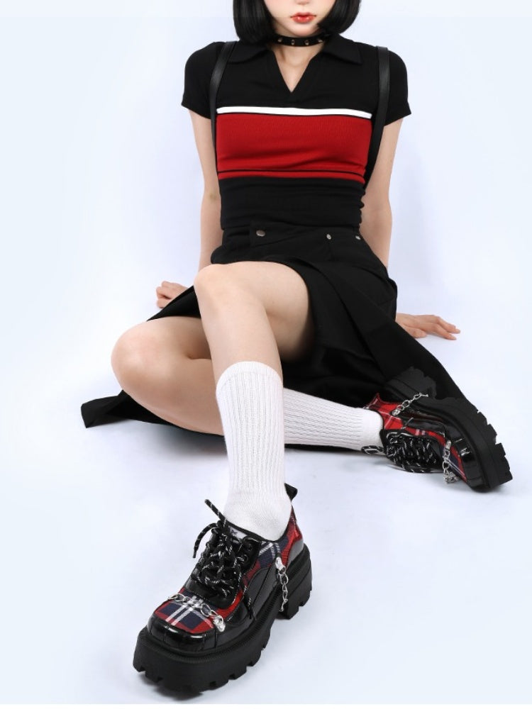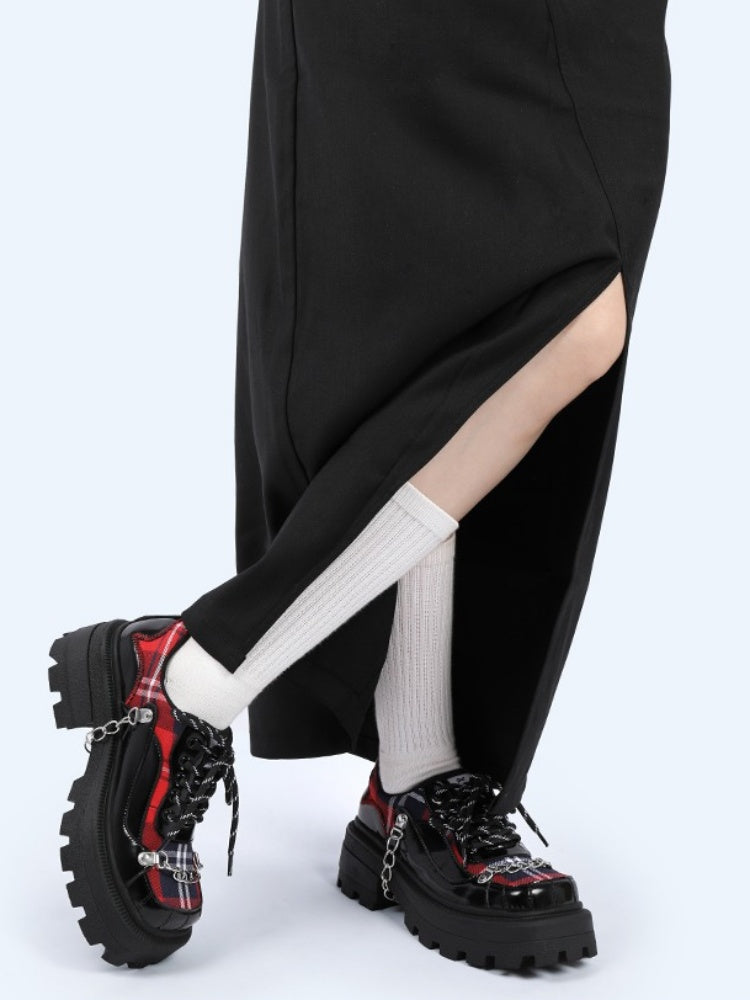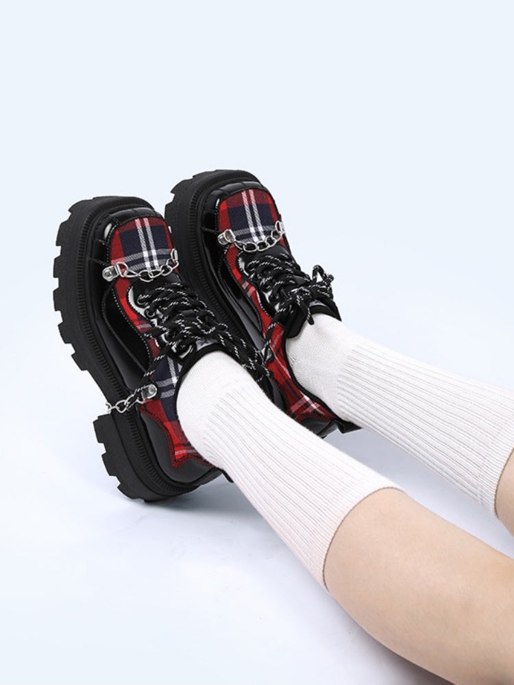 Rock Chain Plaid Platform Shoes【s0000003443】