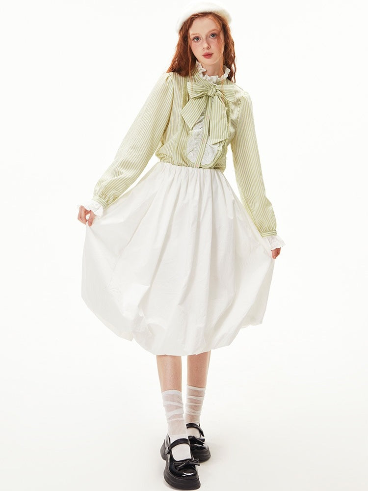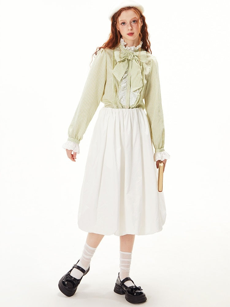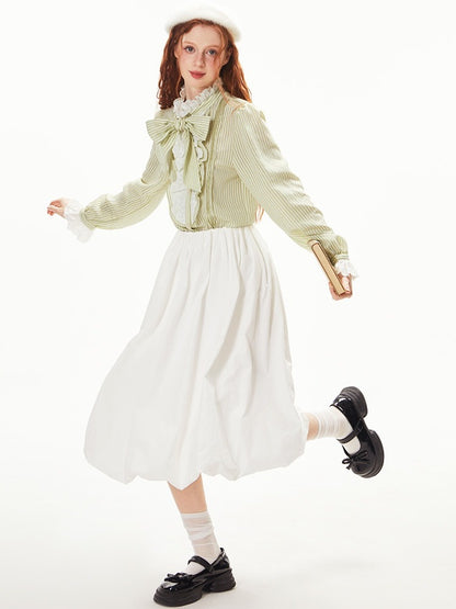 French Retro Striped Ruffle Ribbon Long Sleeve Shirt【s0000003543】