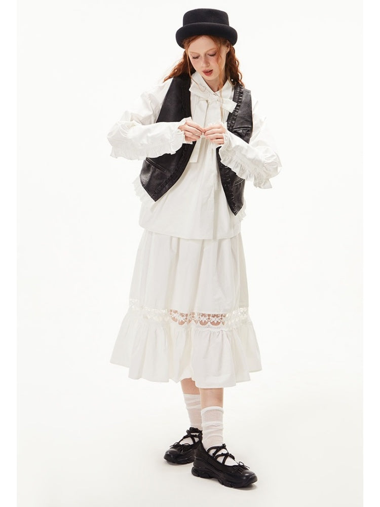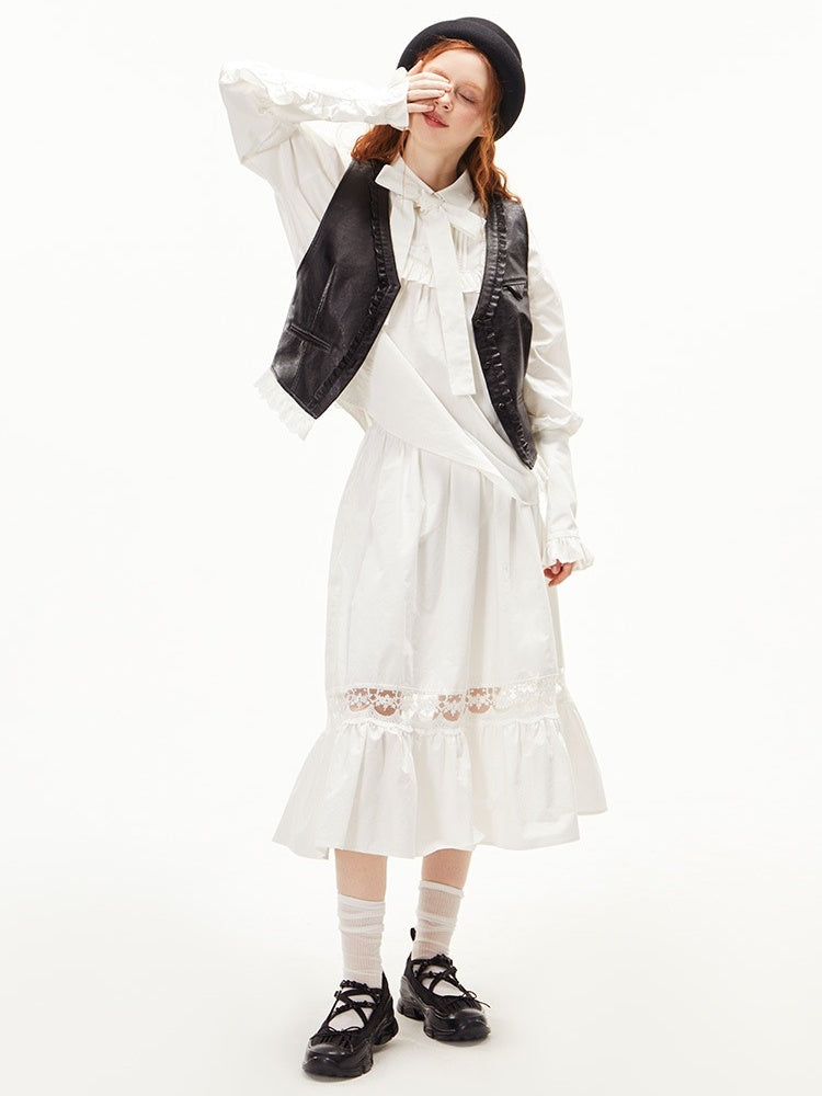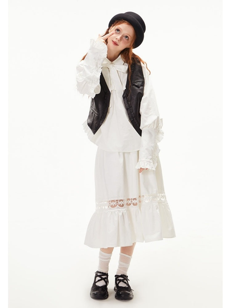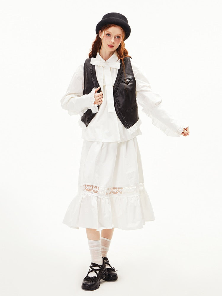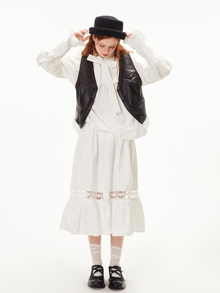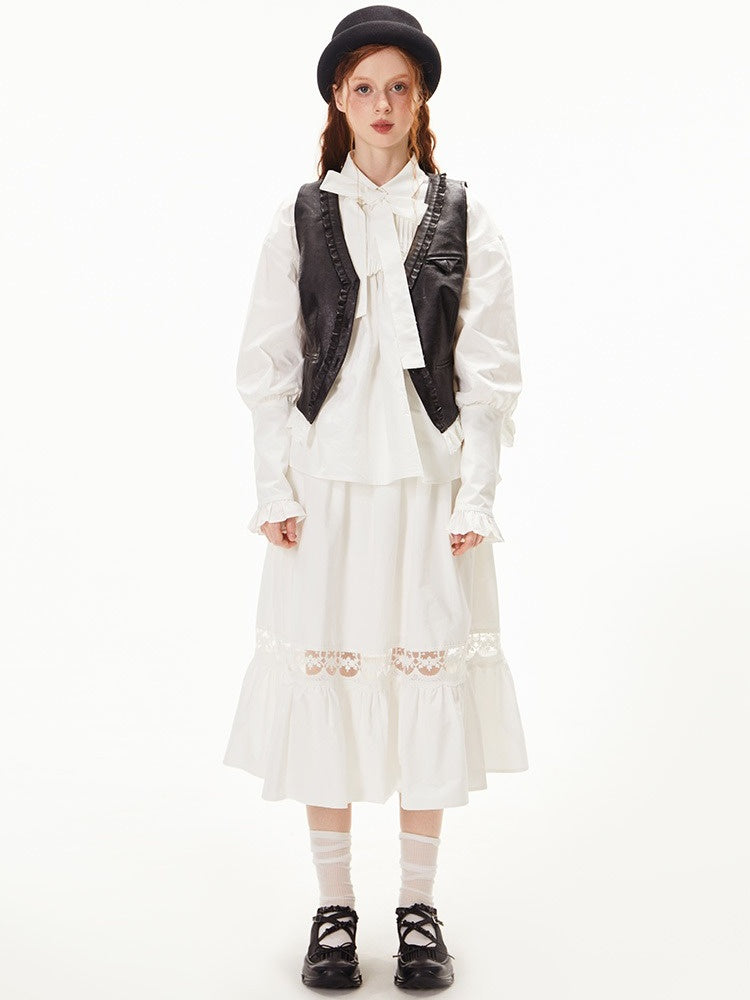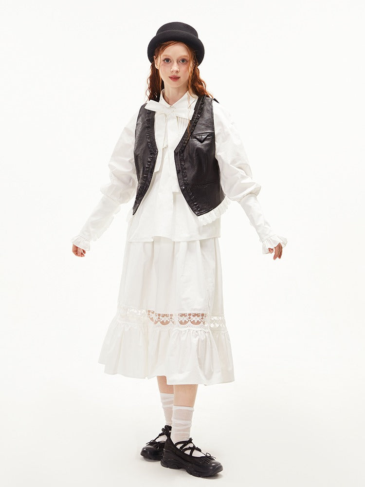 Ruffle Lace V-Neck PU Leather Vest【s0000003546】