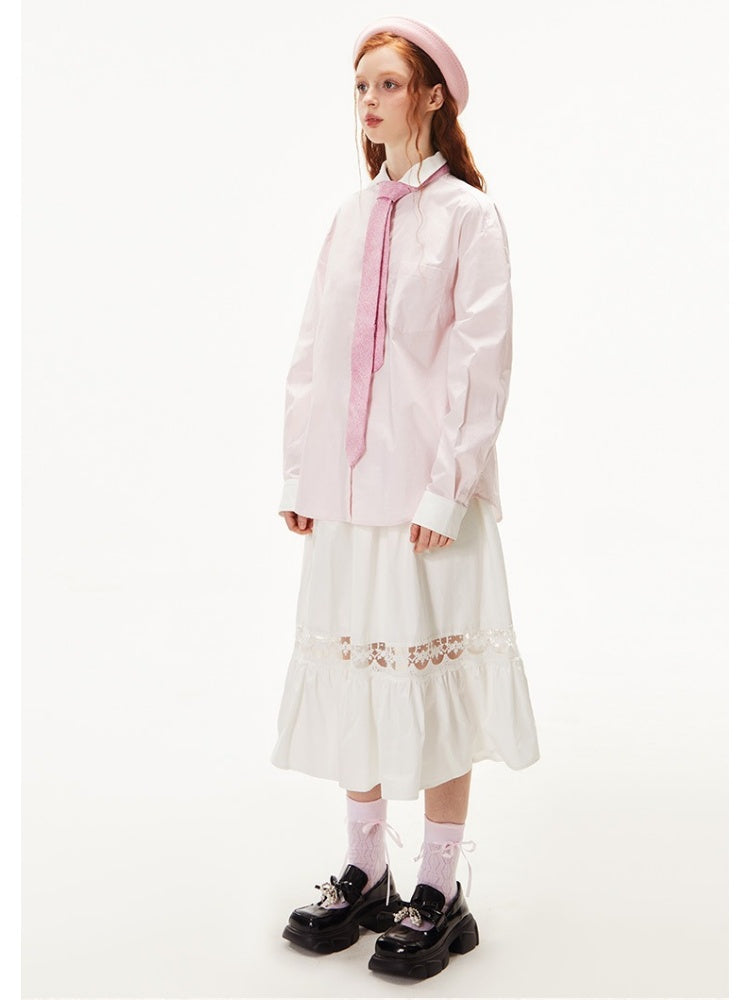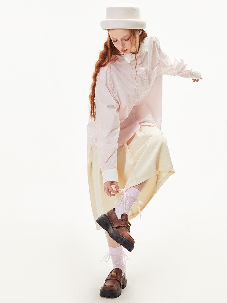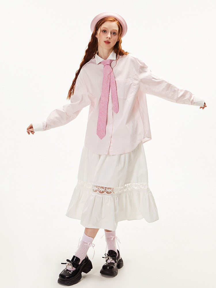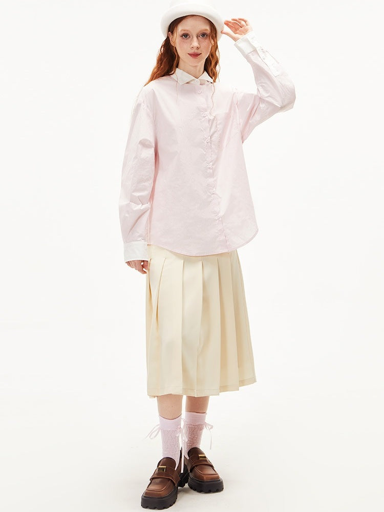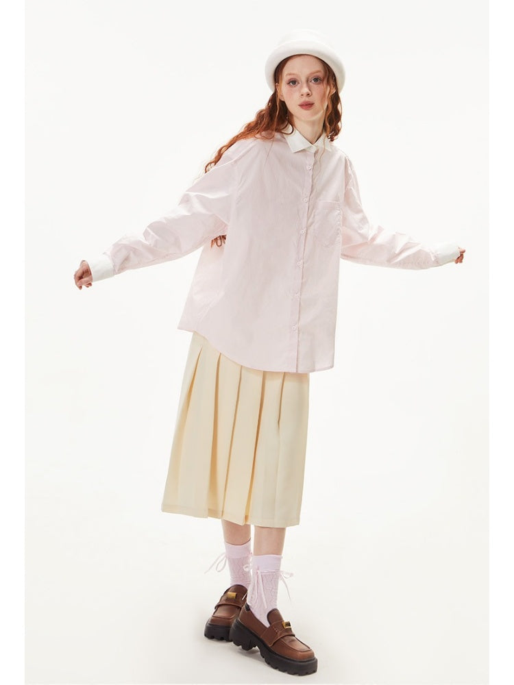 College Style Loose Long Sleeve Shirt【s0000003549】