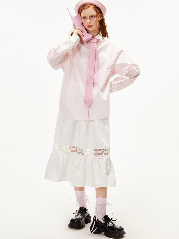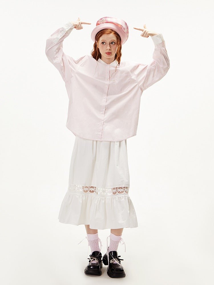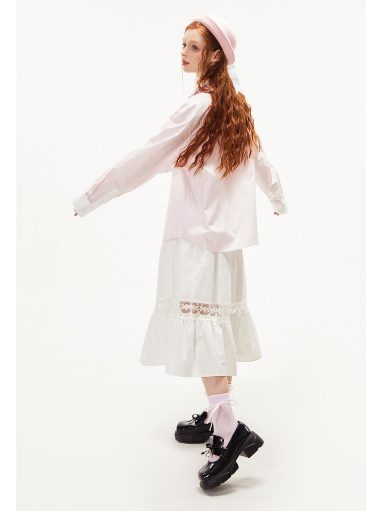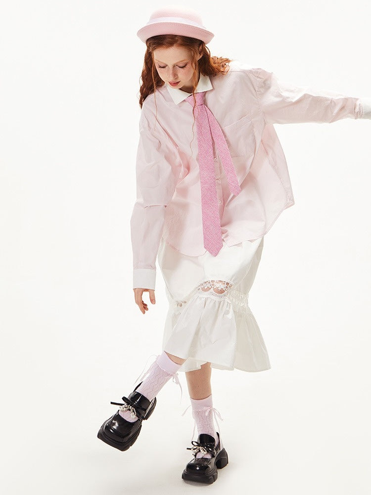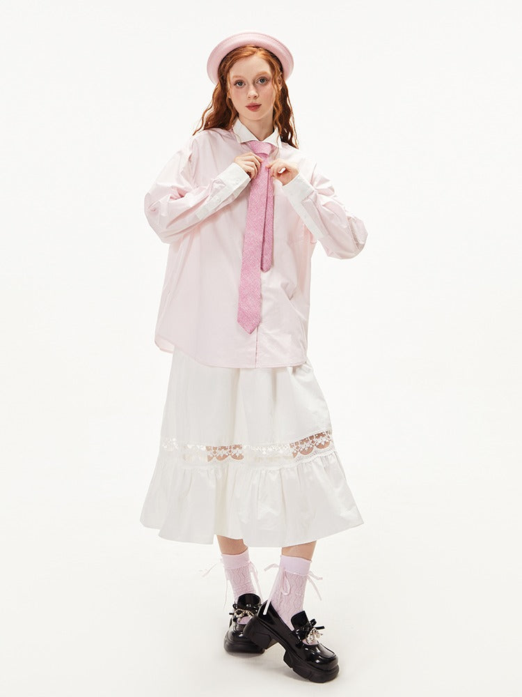 College Style Loose Long Sleeve Shirt【s0000003549】