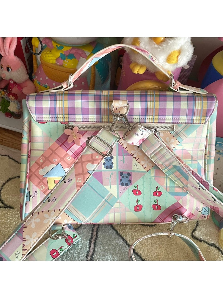 Stitch Print Plaid Leather Large Capacity Backpack【s0000003553】