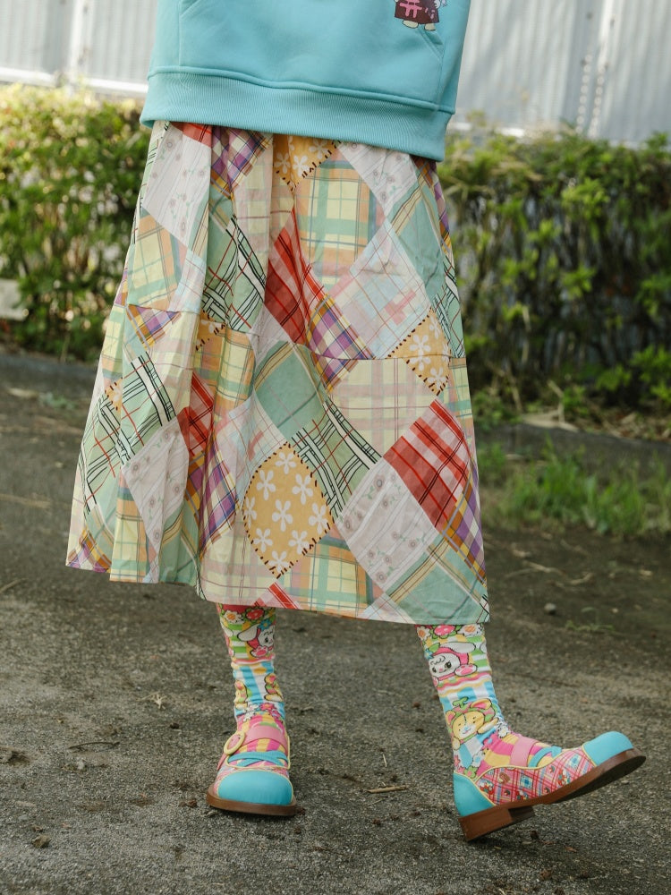 Color Block Patchwork Plaid Mix Loose Long Skirt【s0000003558】