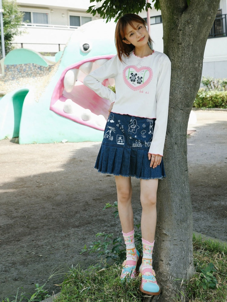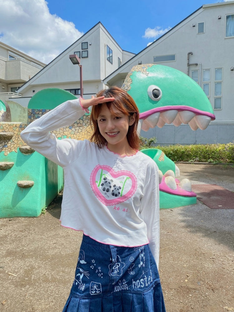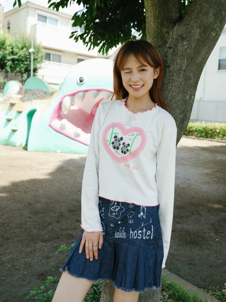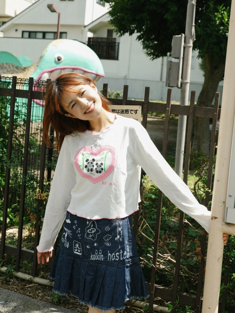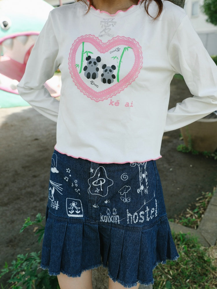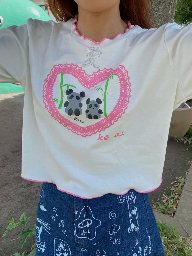 Love Panda Illustration Mellow Hem T-Shirt【s0000003561】
