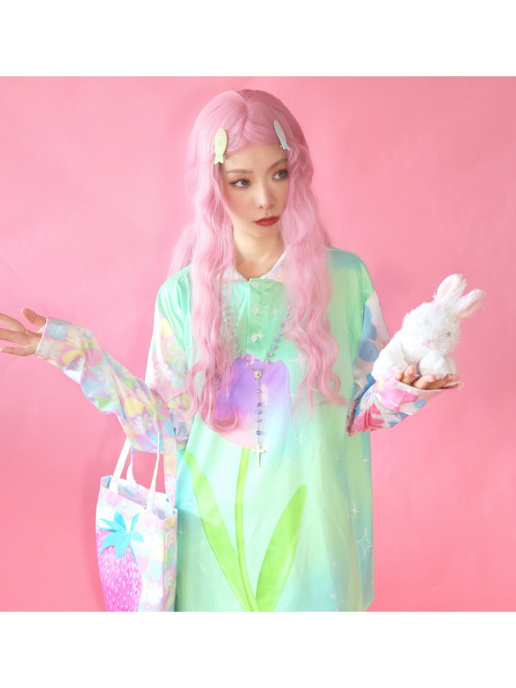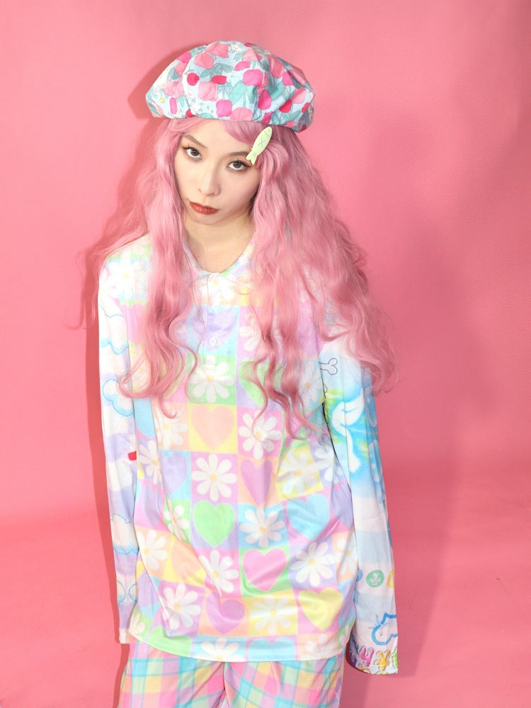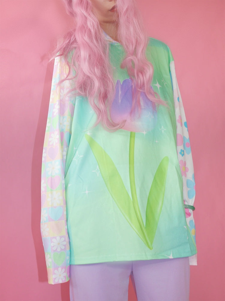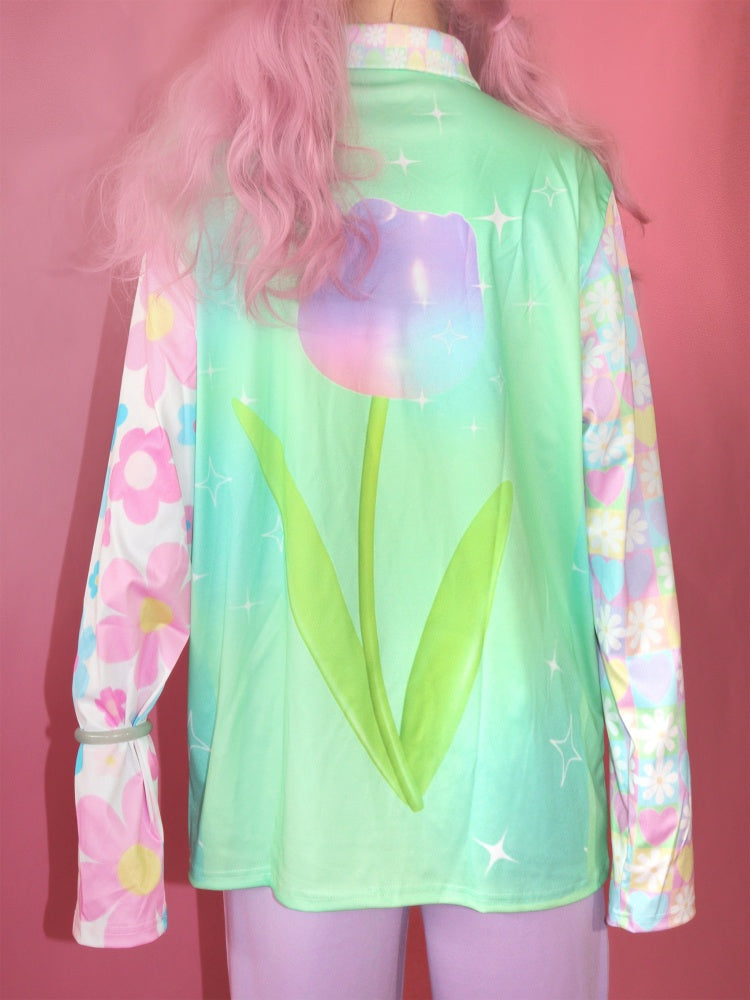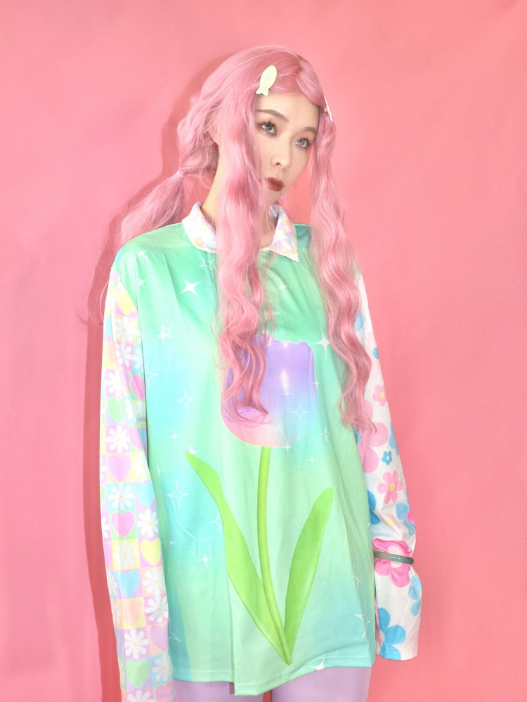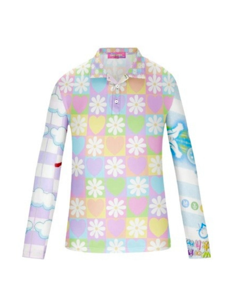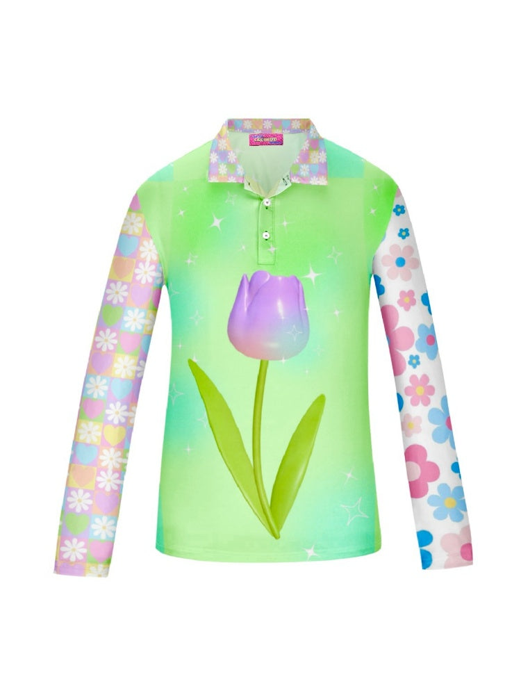 Tulip/Flower Chess Board Print Polo Shirt【s0000003568】