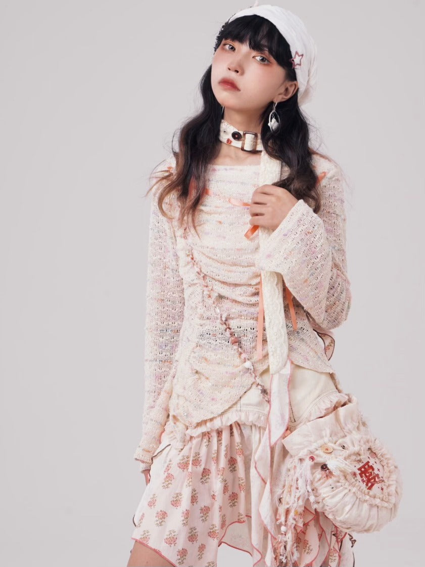 Ribbon Shirring Bottoming Asymmetrical Sweater【s0000003585】
