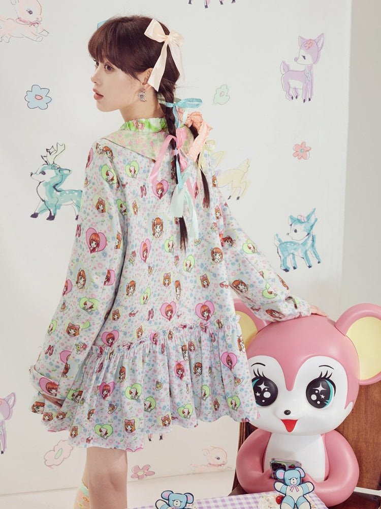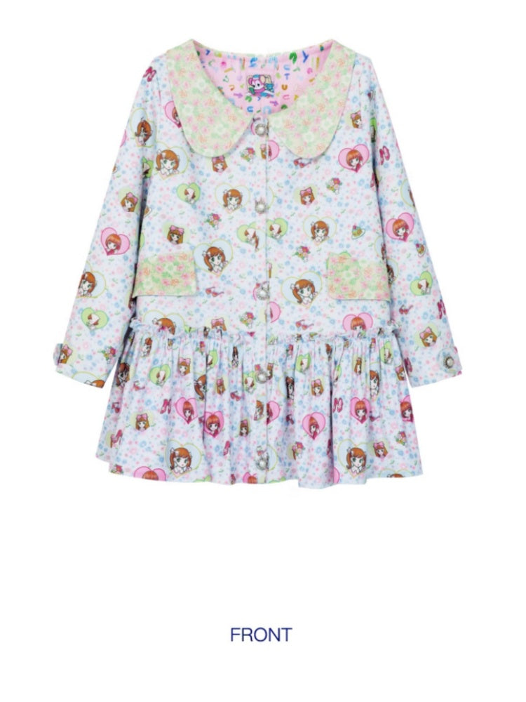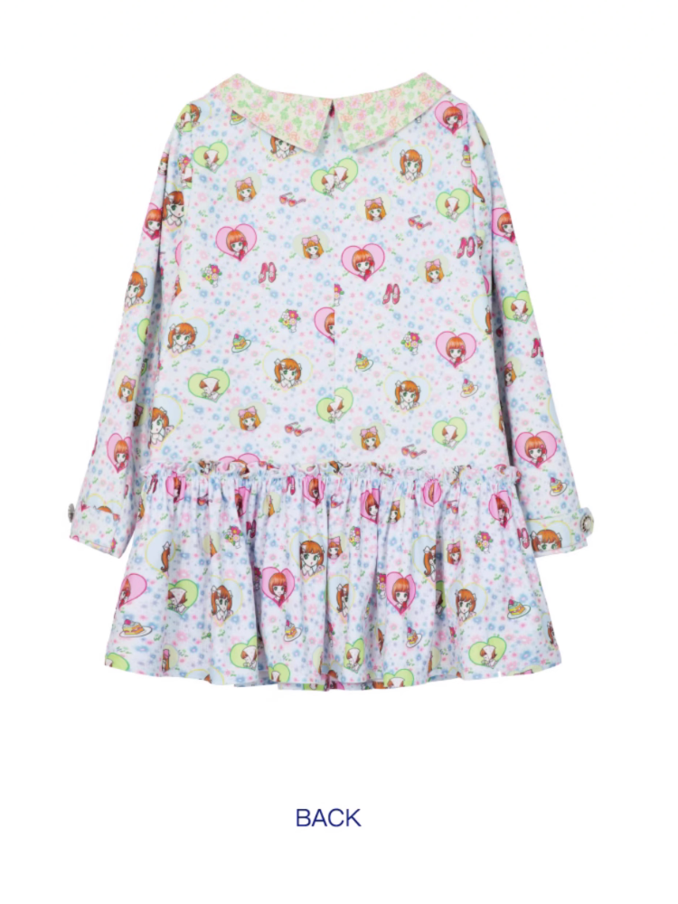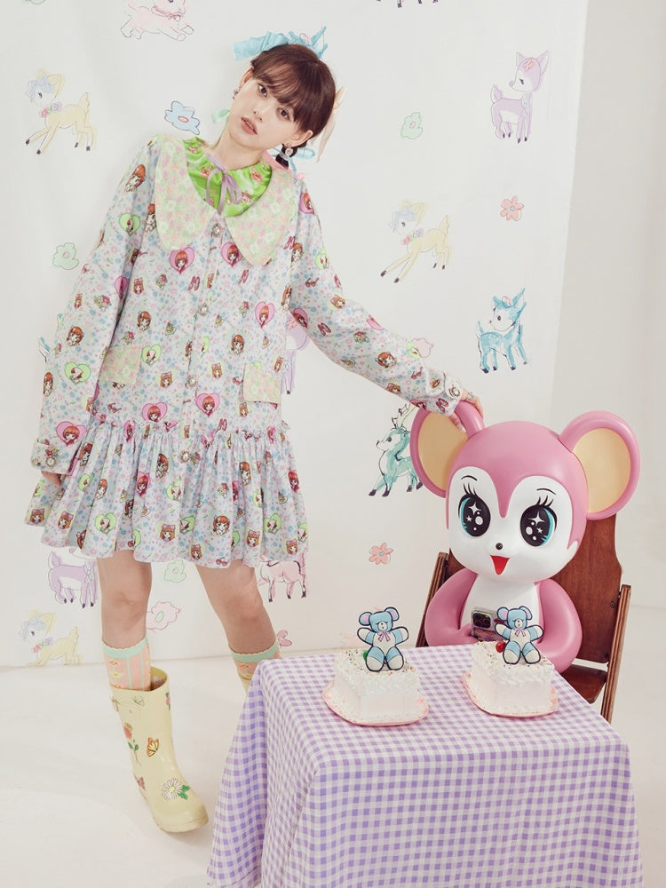 Shimizu Illustration Cute Girl Print Pleated Skirt Dress【s0000003651】