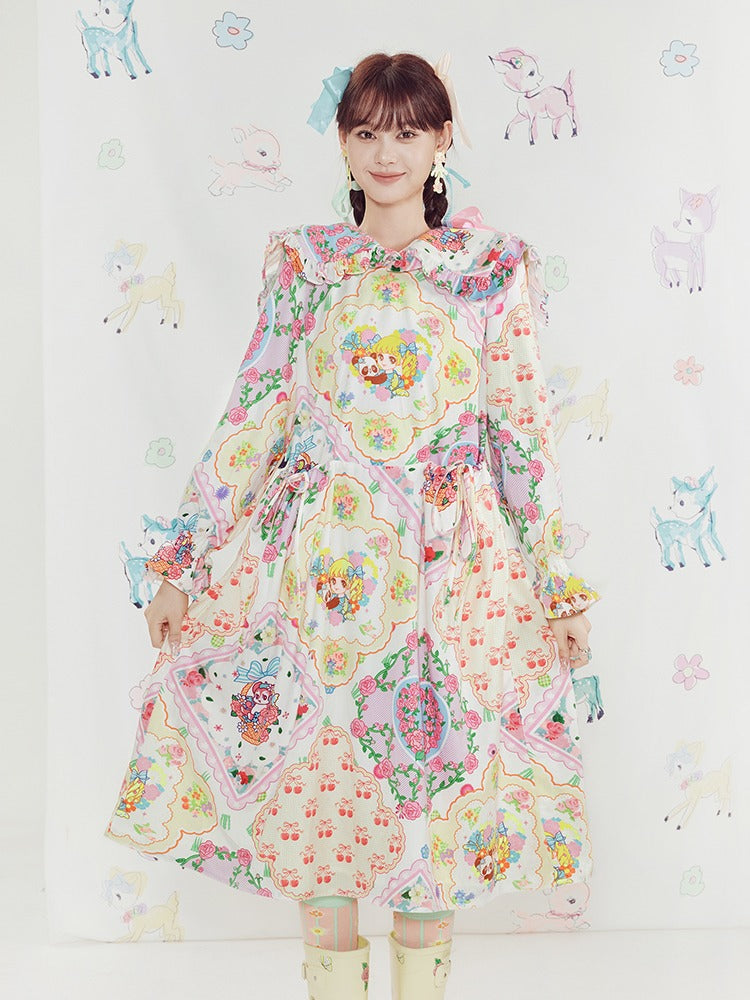Shimizu Illustration Bear & Girl Print Princess A-line Dress【s0000003658】