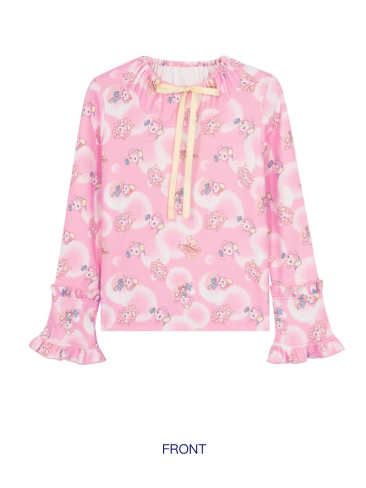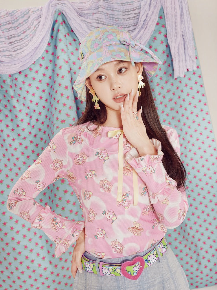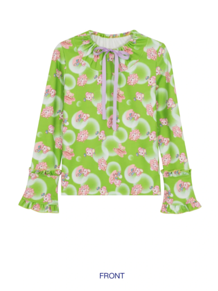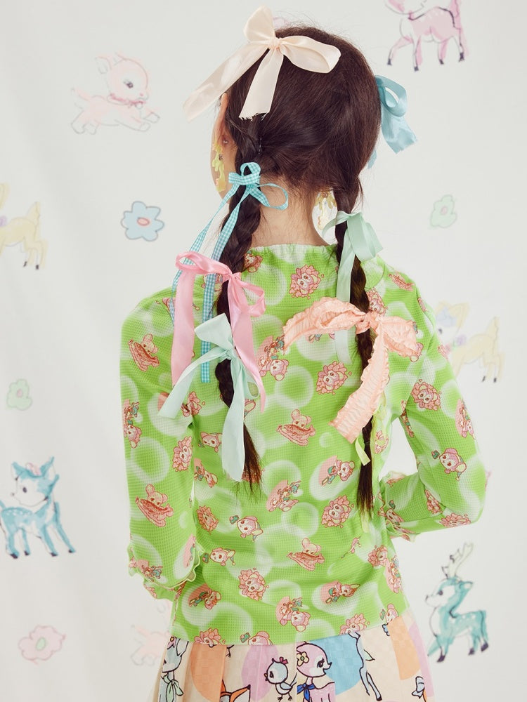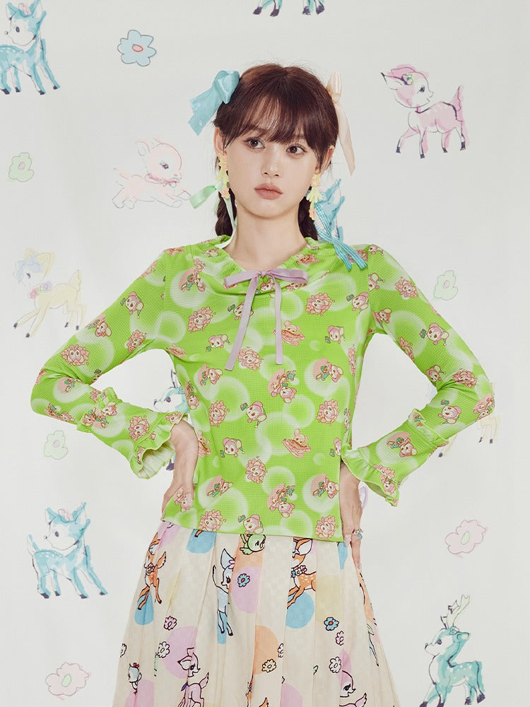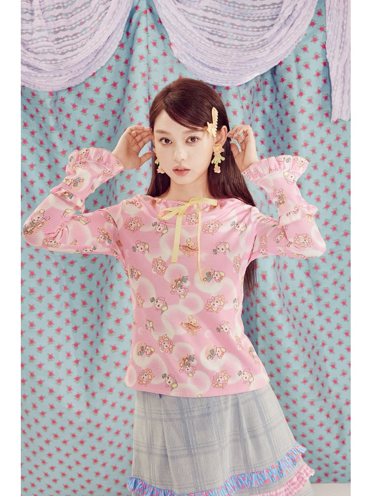 Shimizu Illustration Cute Bear Geometric Pattern Bell Sleeve Knit Tops【s0000003660】