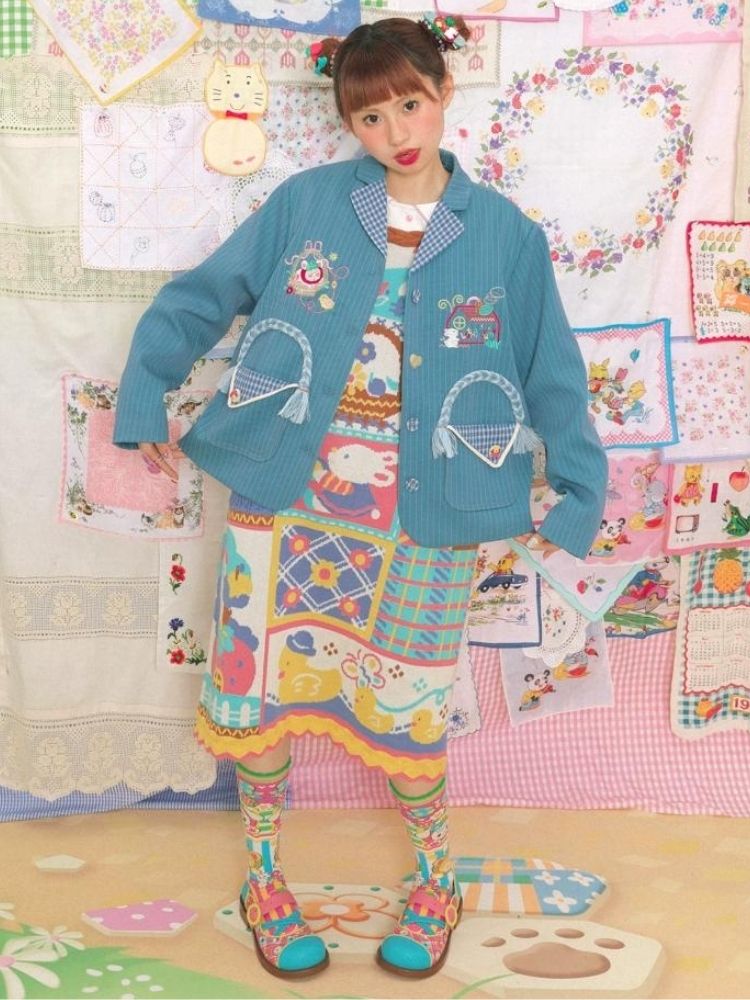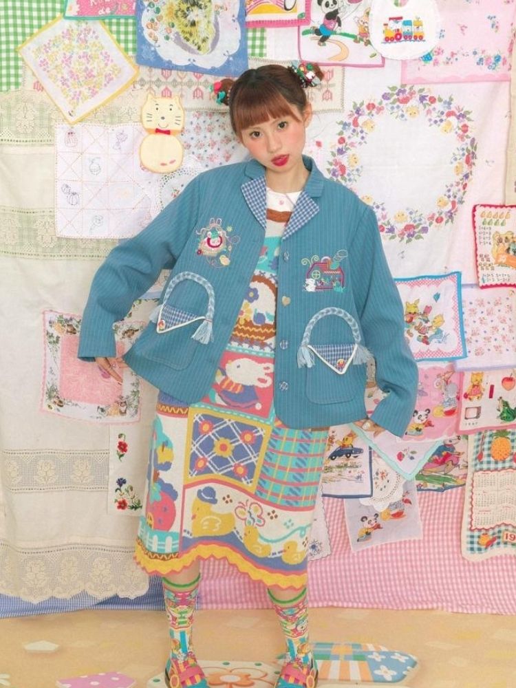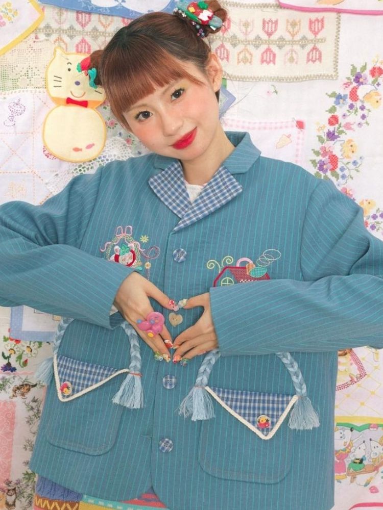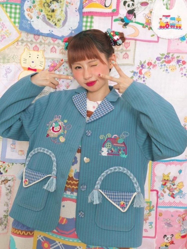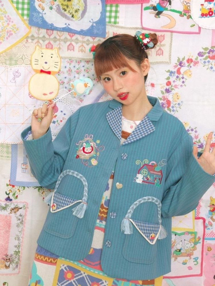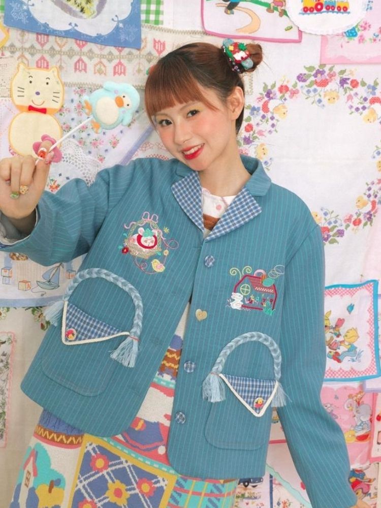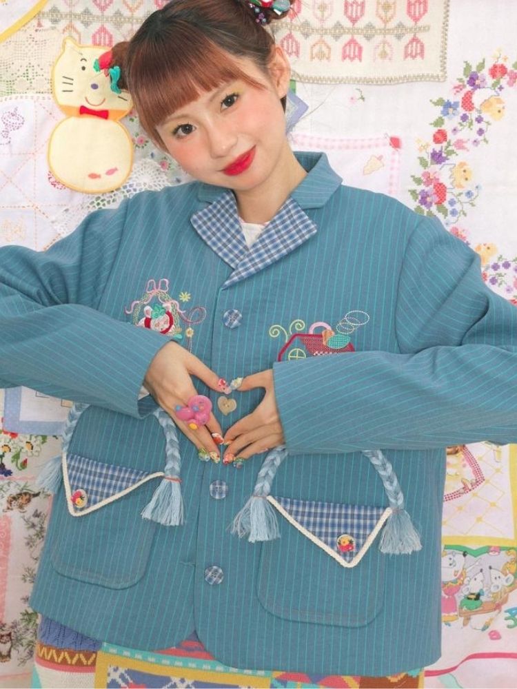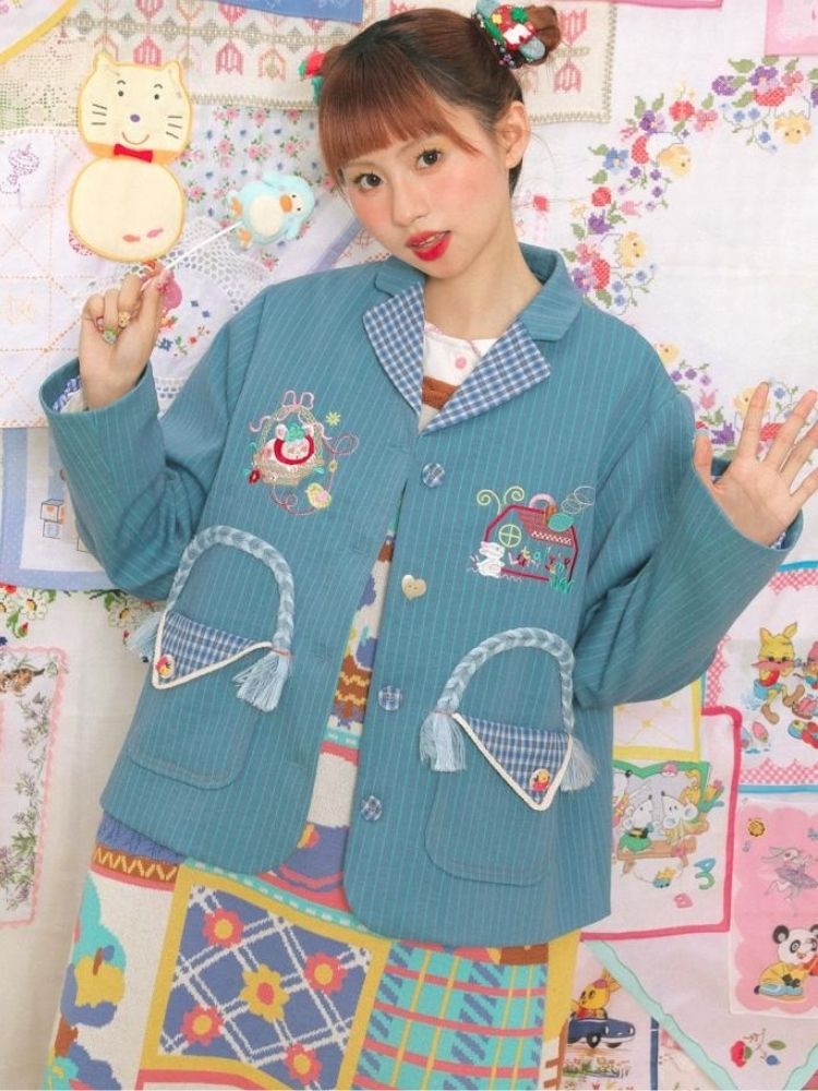 Blue striped stitch retro jacket【s0000003724】