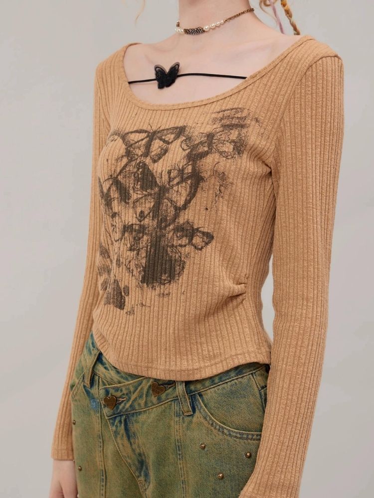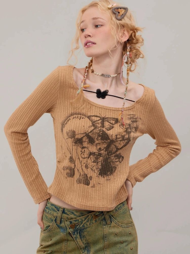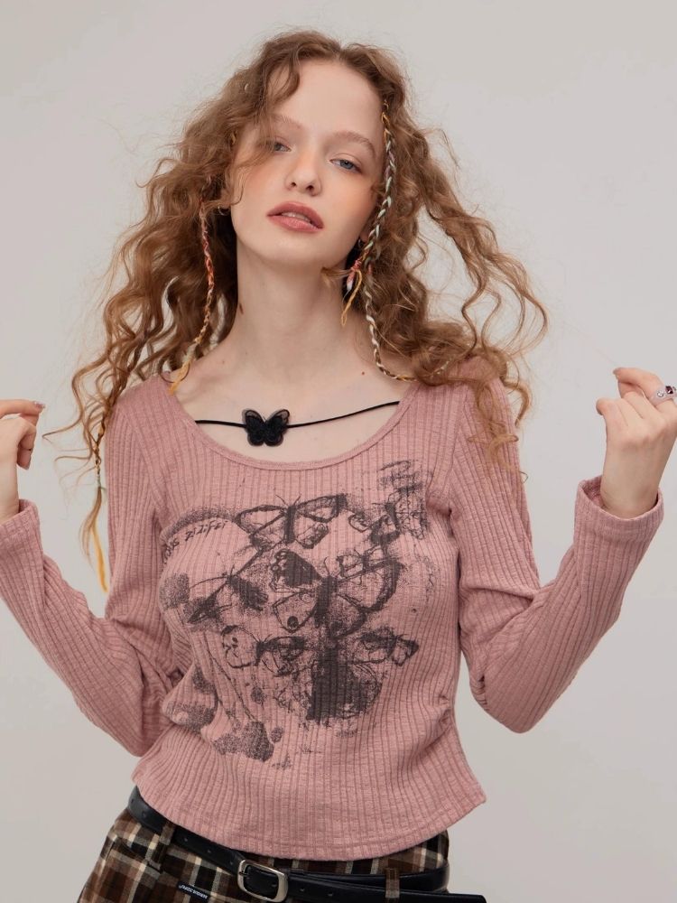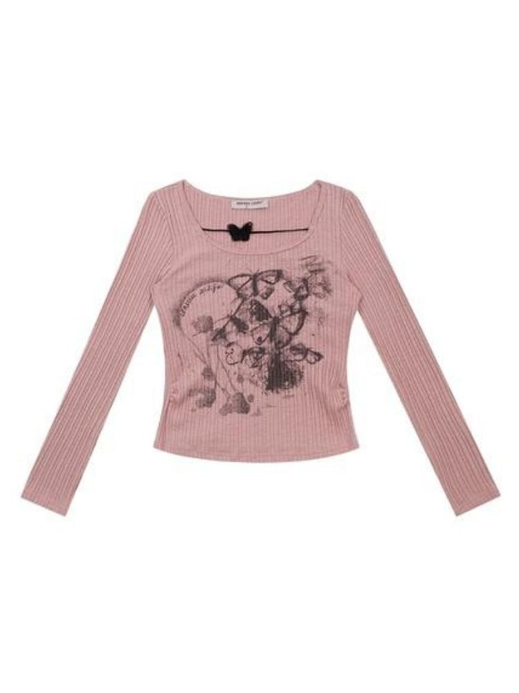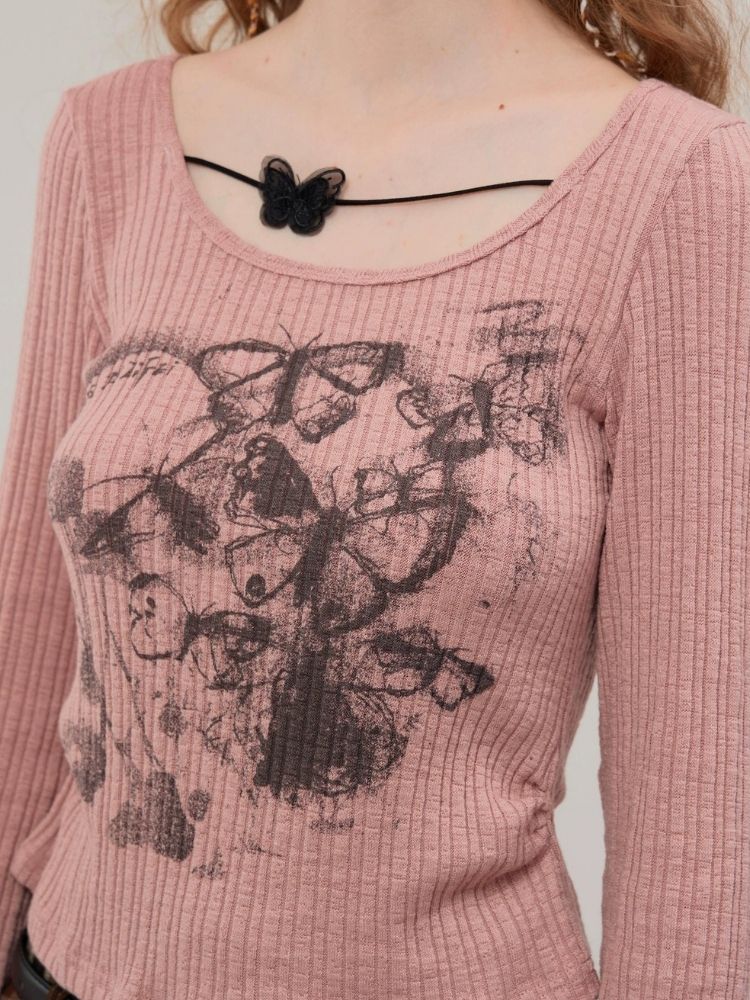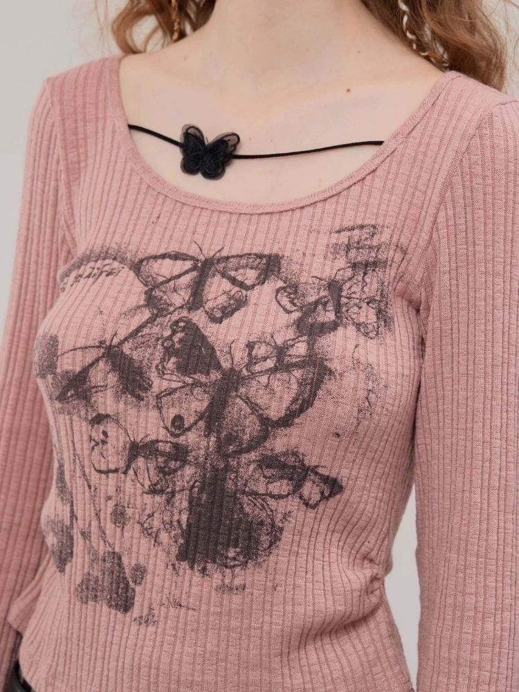 Butterfly print long sleeve T-shirt【s0000003747】