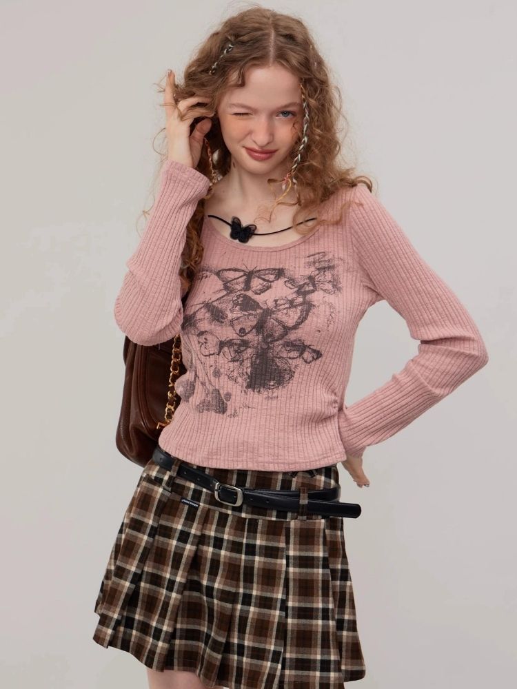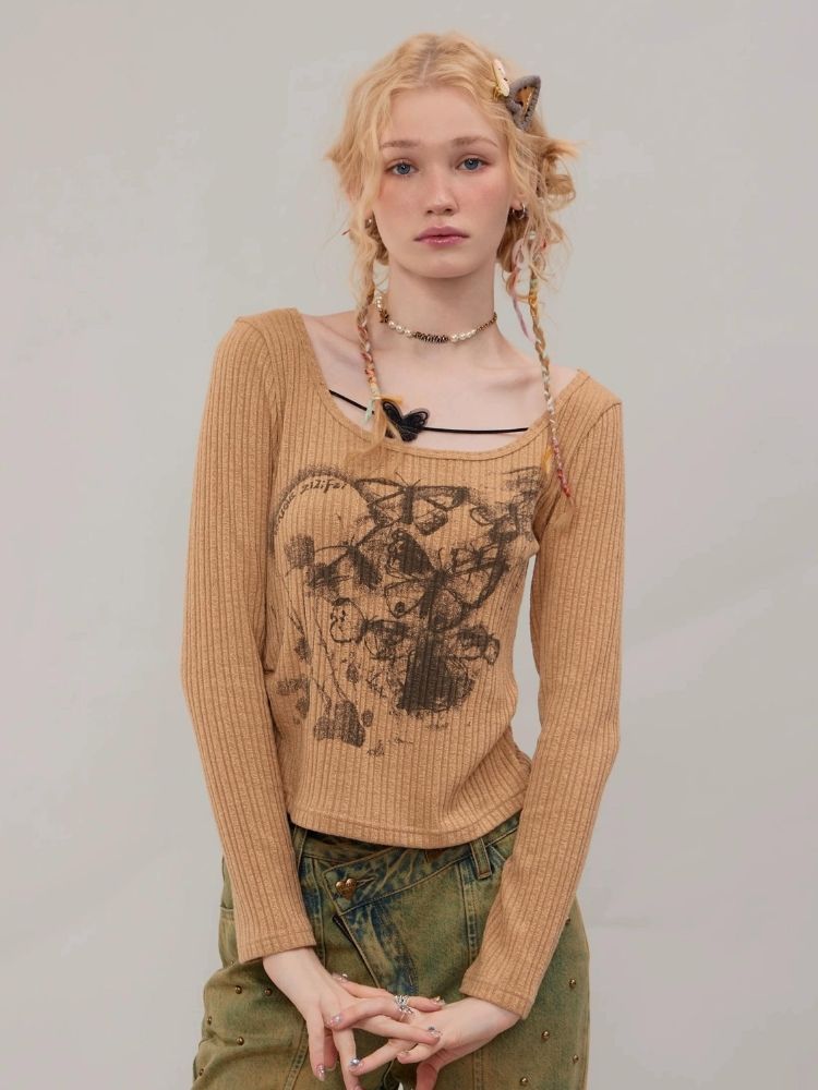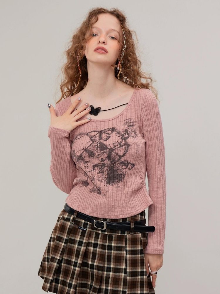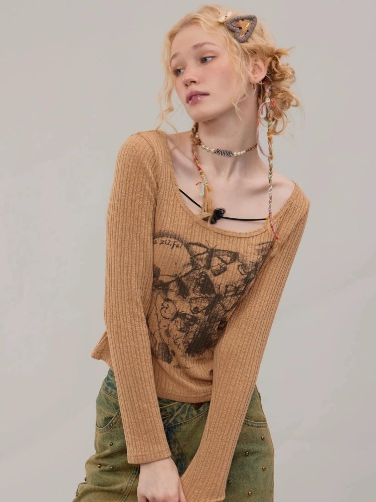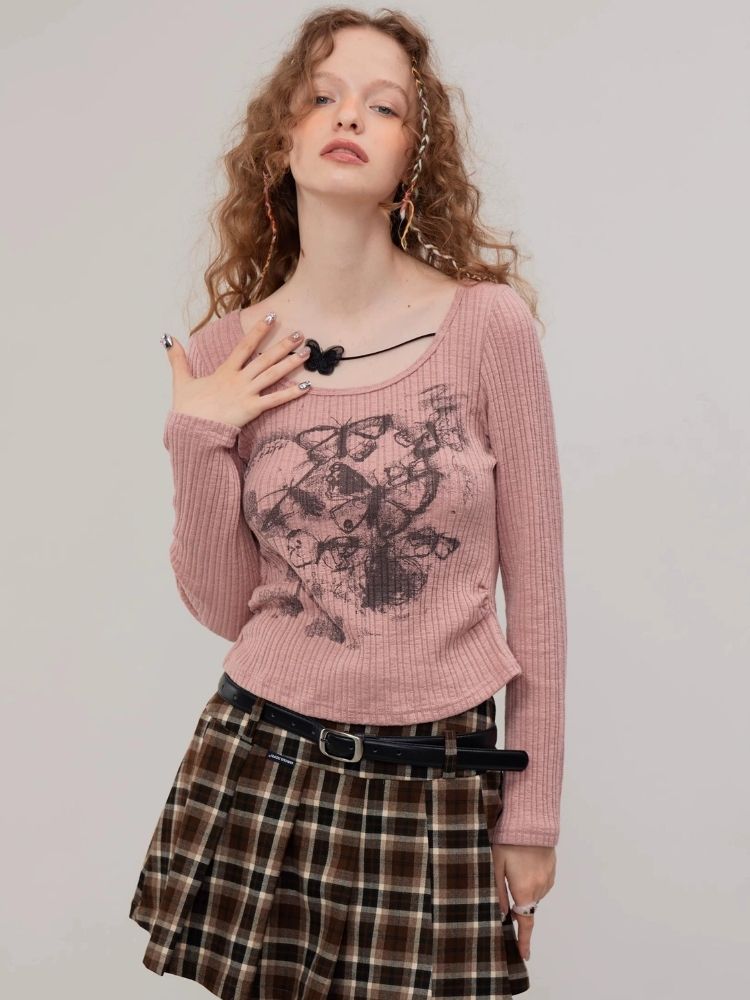 Butterfly print long sleeve T-shirt【s0000003747】